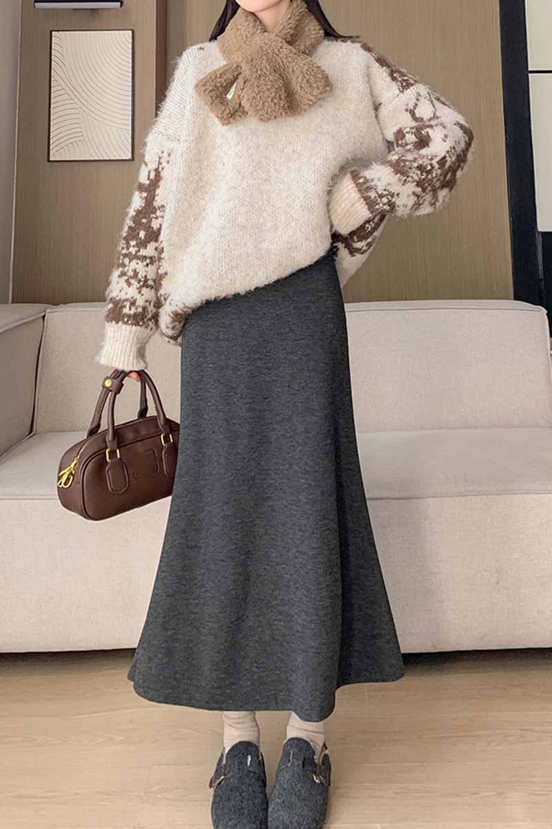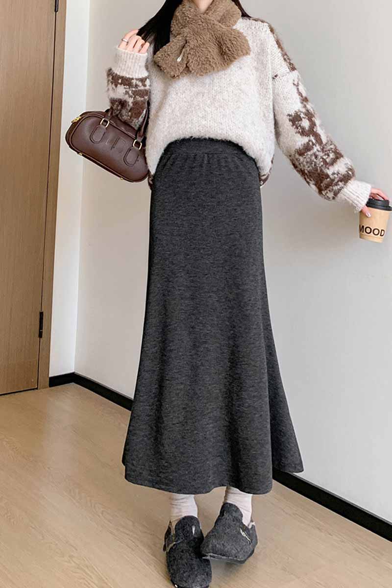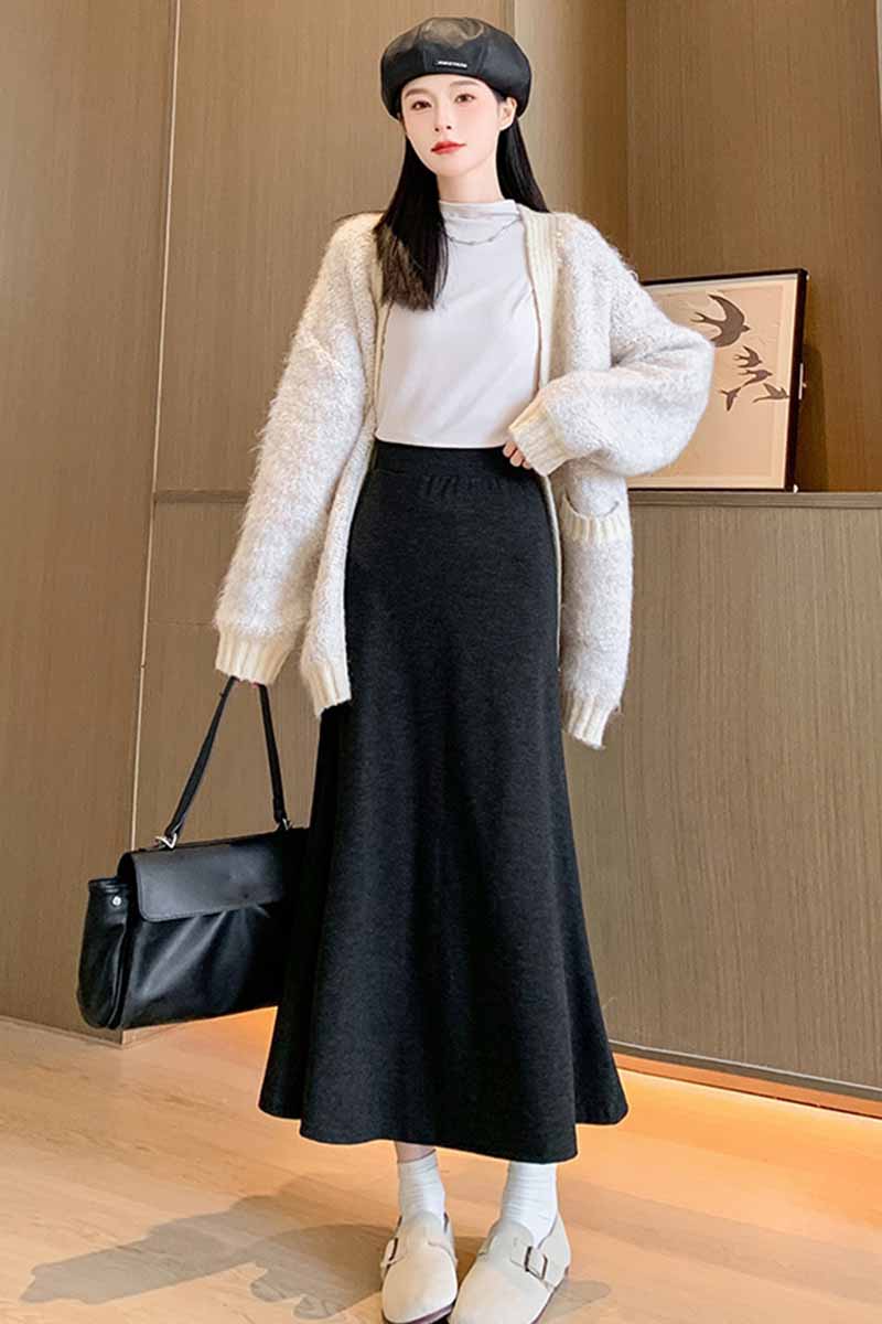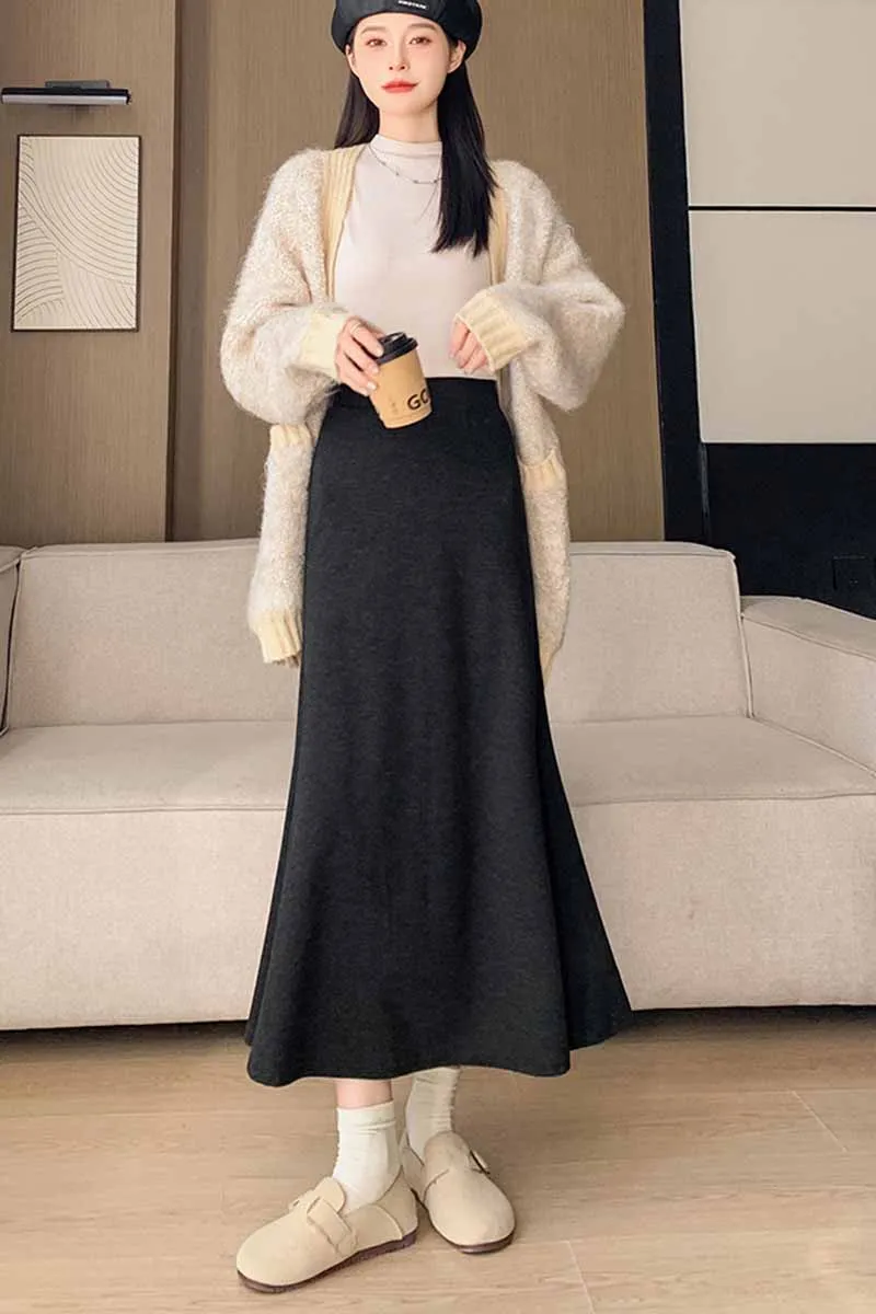 Gonne lunghe con temperamento Senior Sense per donna Elegante gonna di lana autunno inverno a vita alta Gonna lunga da donna per feste di strada alla moda