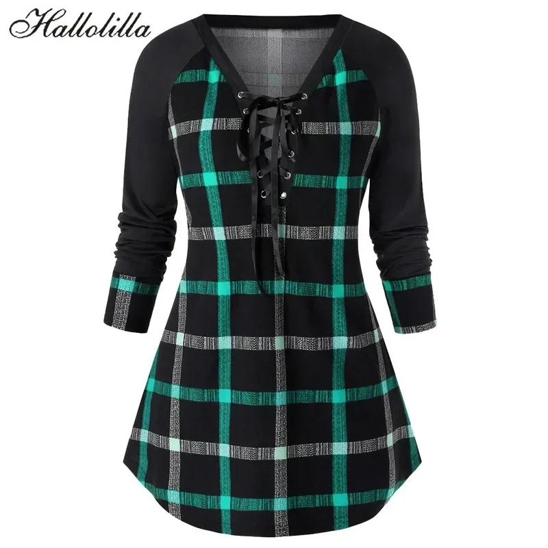 Grande sconto T-Shirt lunga donna allentata Casual T-Shirt scozzese femminile Blusa Feminina Tshirt abbigliamento donna top Tee Camisas Mujer