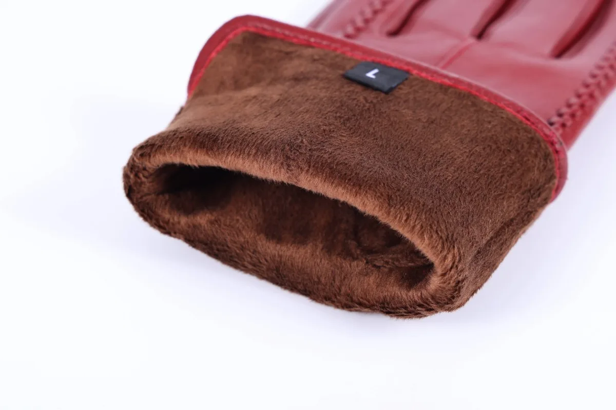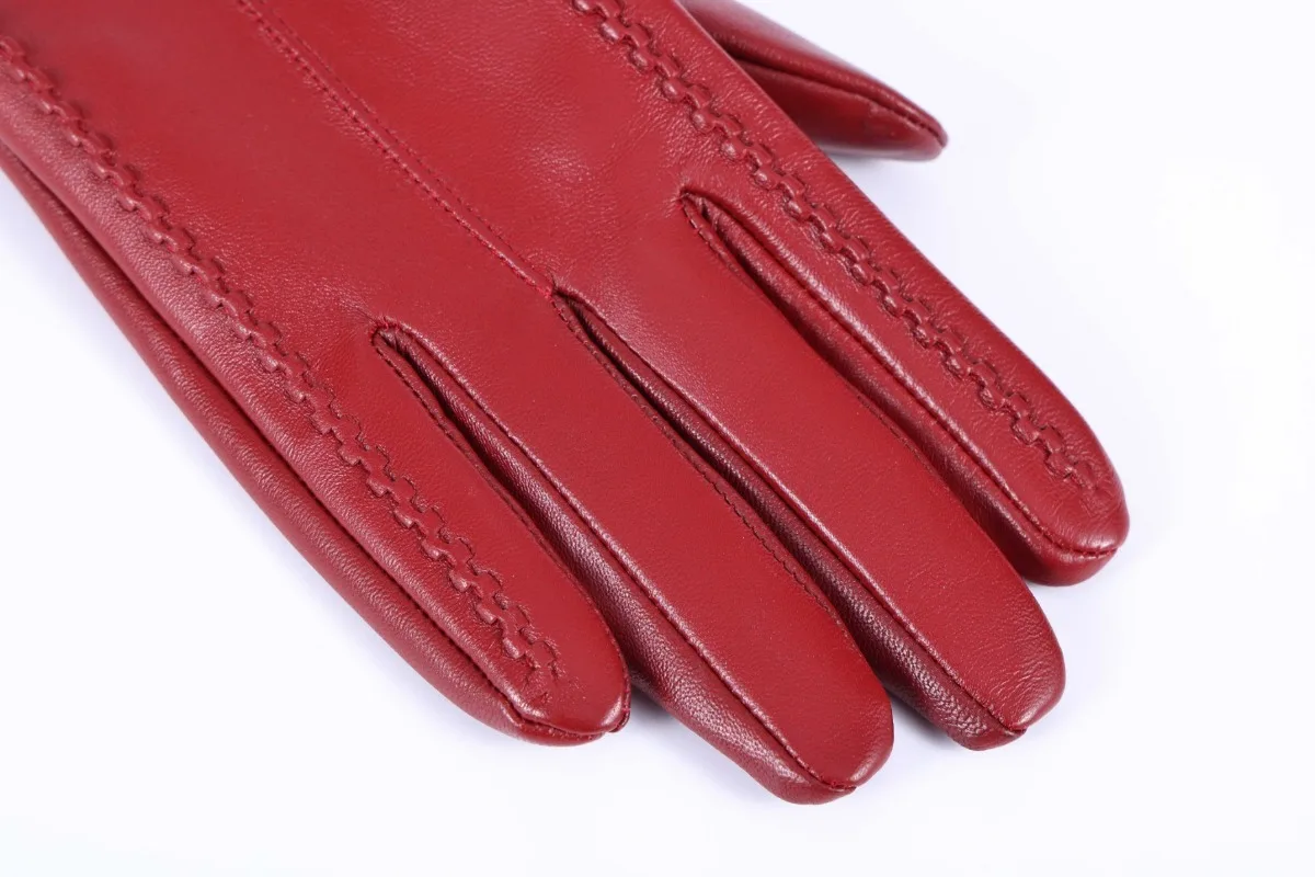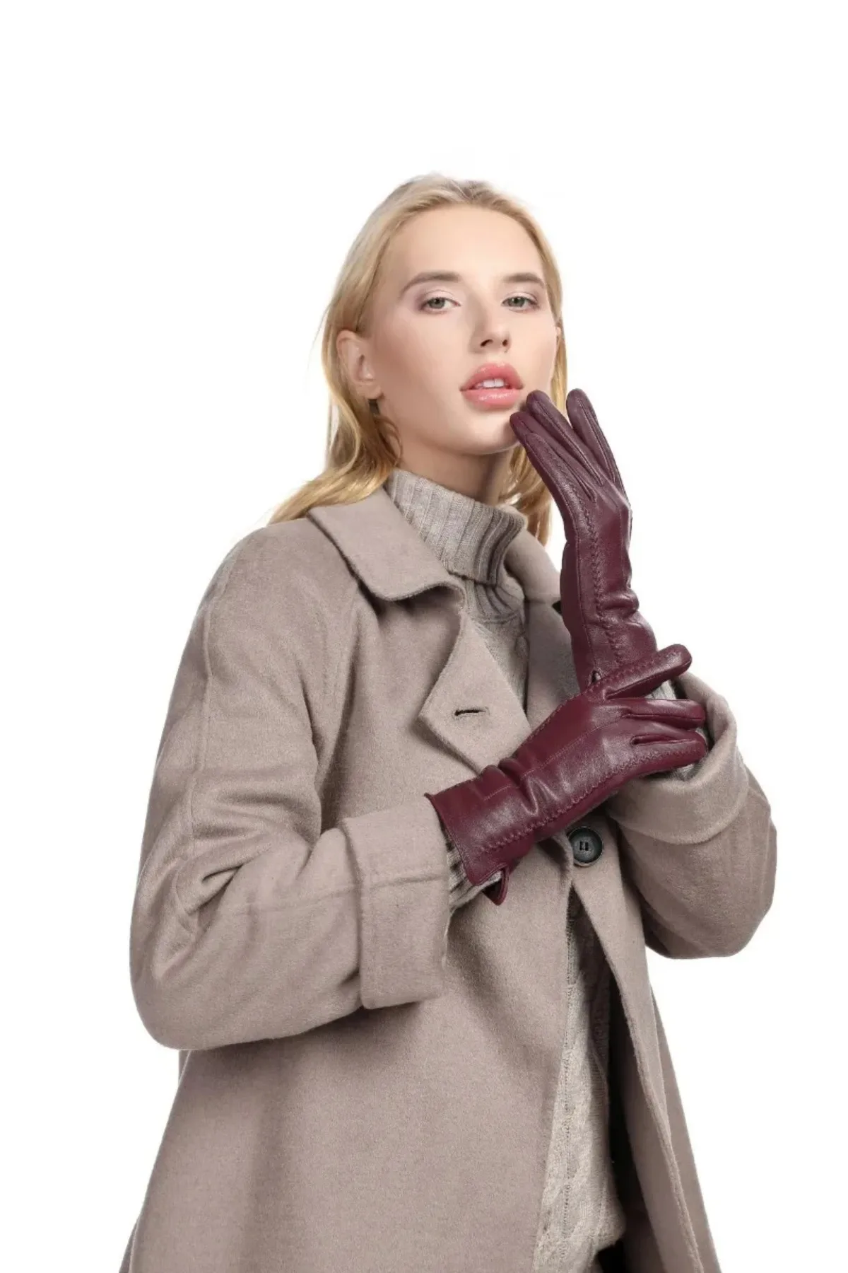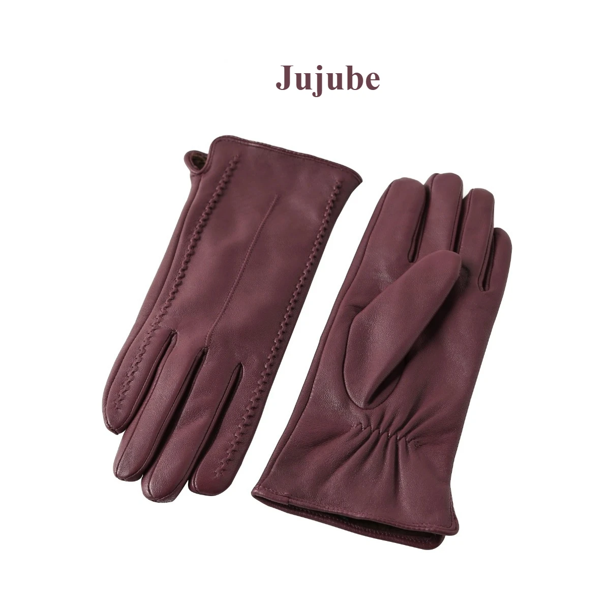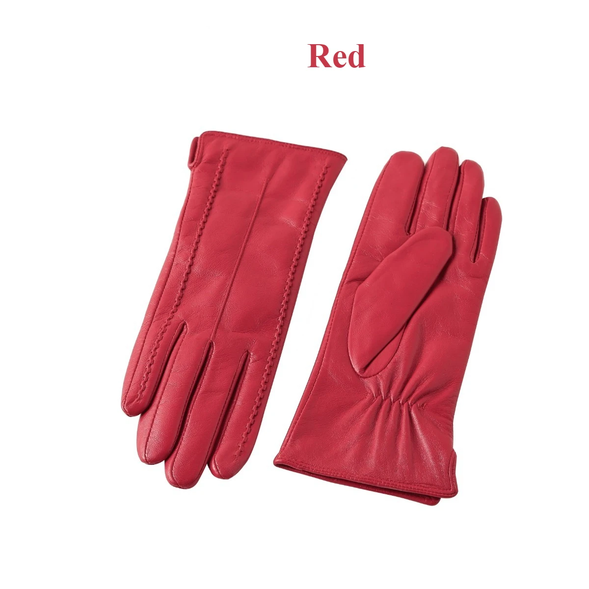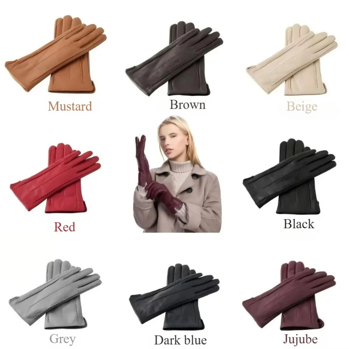 Guanti da donna in pelle di pecora di buona qualità, caldi invernali, più velluto, corti e sottili, touch screen, colore guida, guanti in pelle da donna