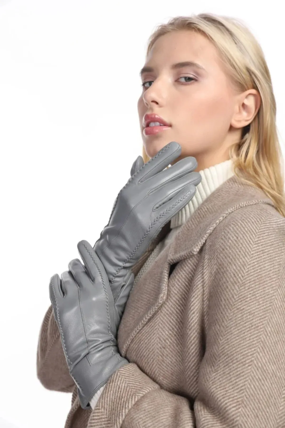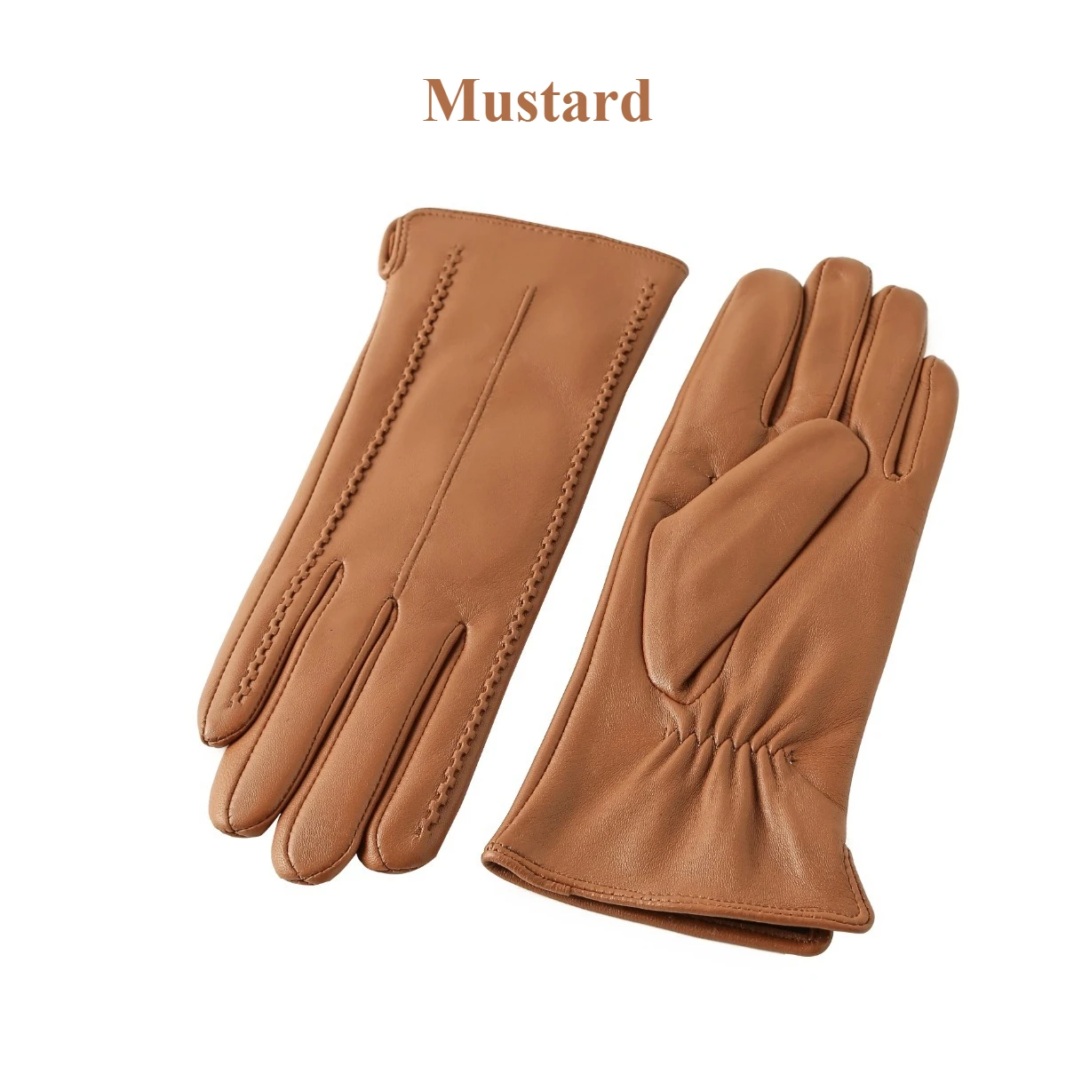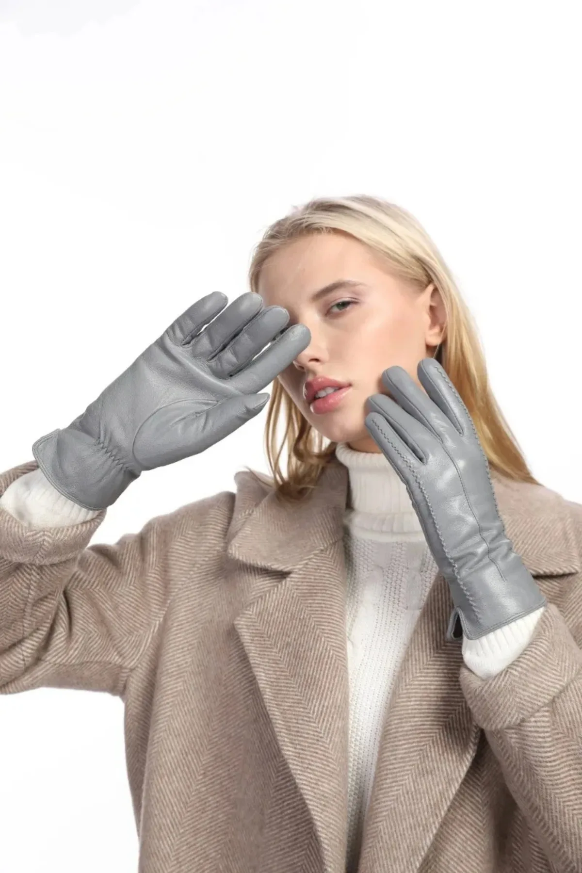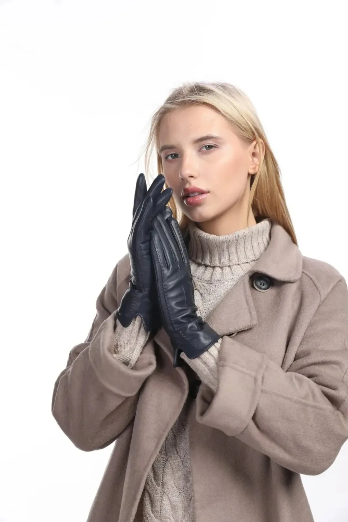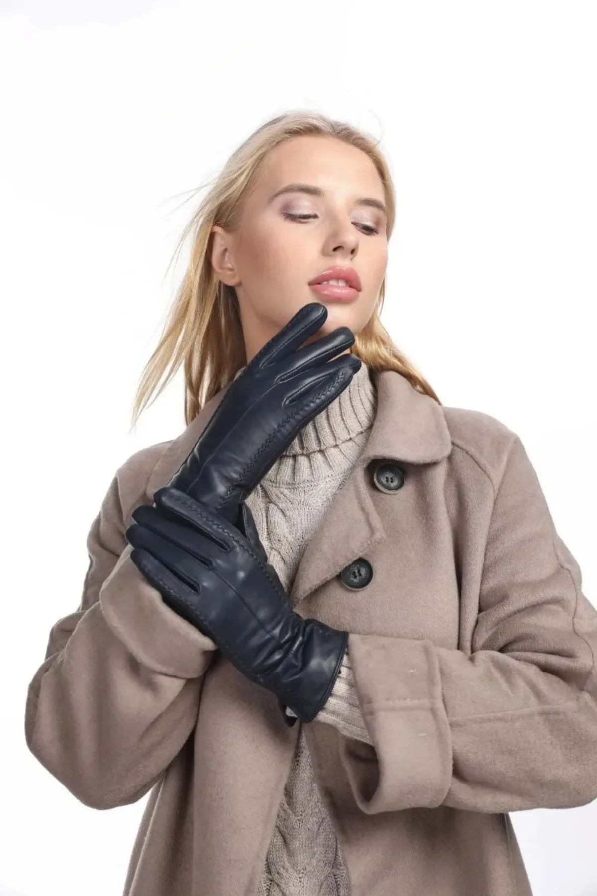 Guanti da donna in pelle di pecora di buona qualità, caldi invernali, più velluto, corti e sottili, touch screen, colore guida, guanti in pelle da donna