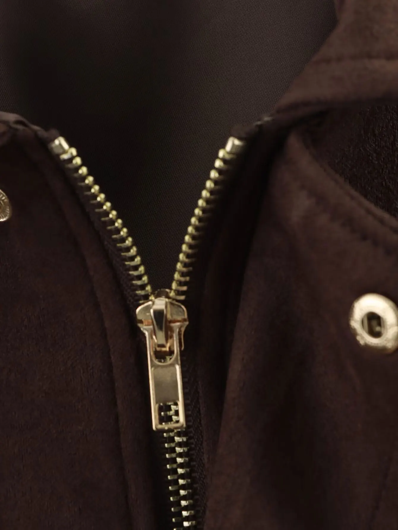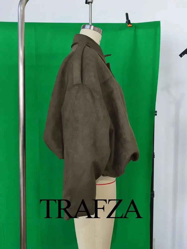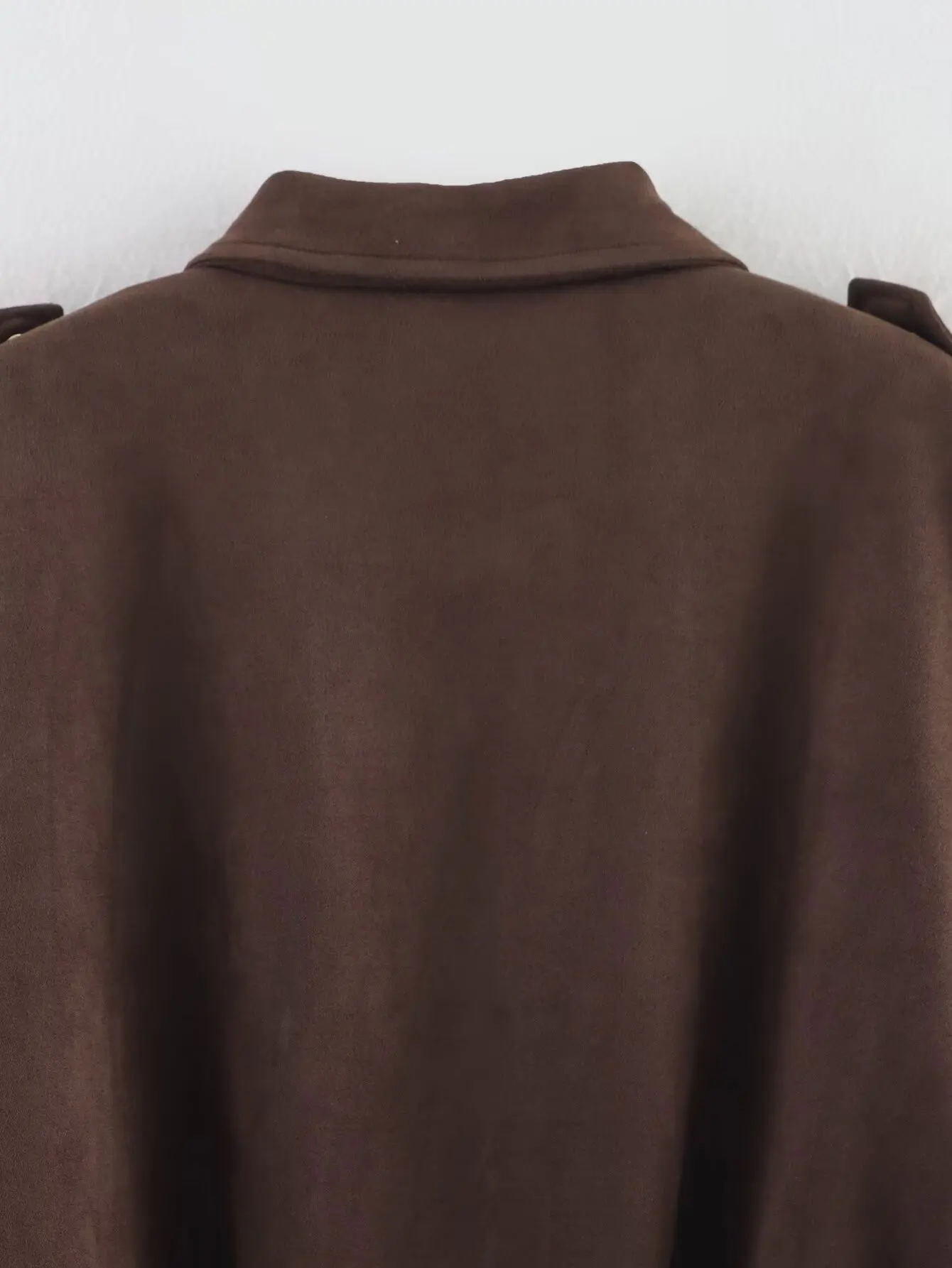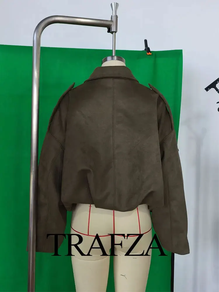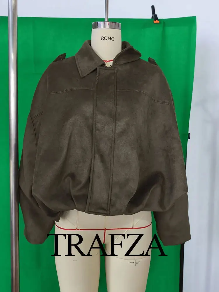 HH Cappotti da donna con trama in pelle scamosciata allentata solida moda di strada causale maniche lunghe a pipistrello bavero cerniera volare giacche vintage invernali