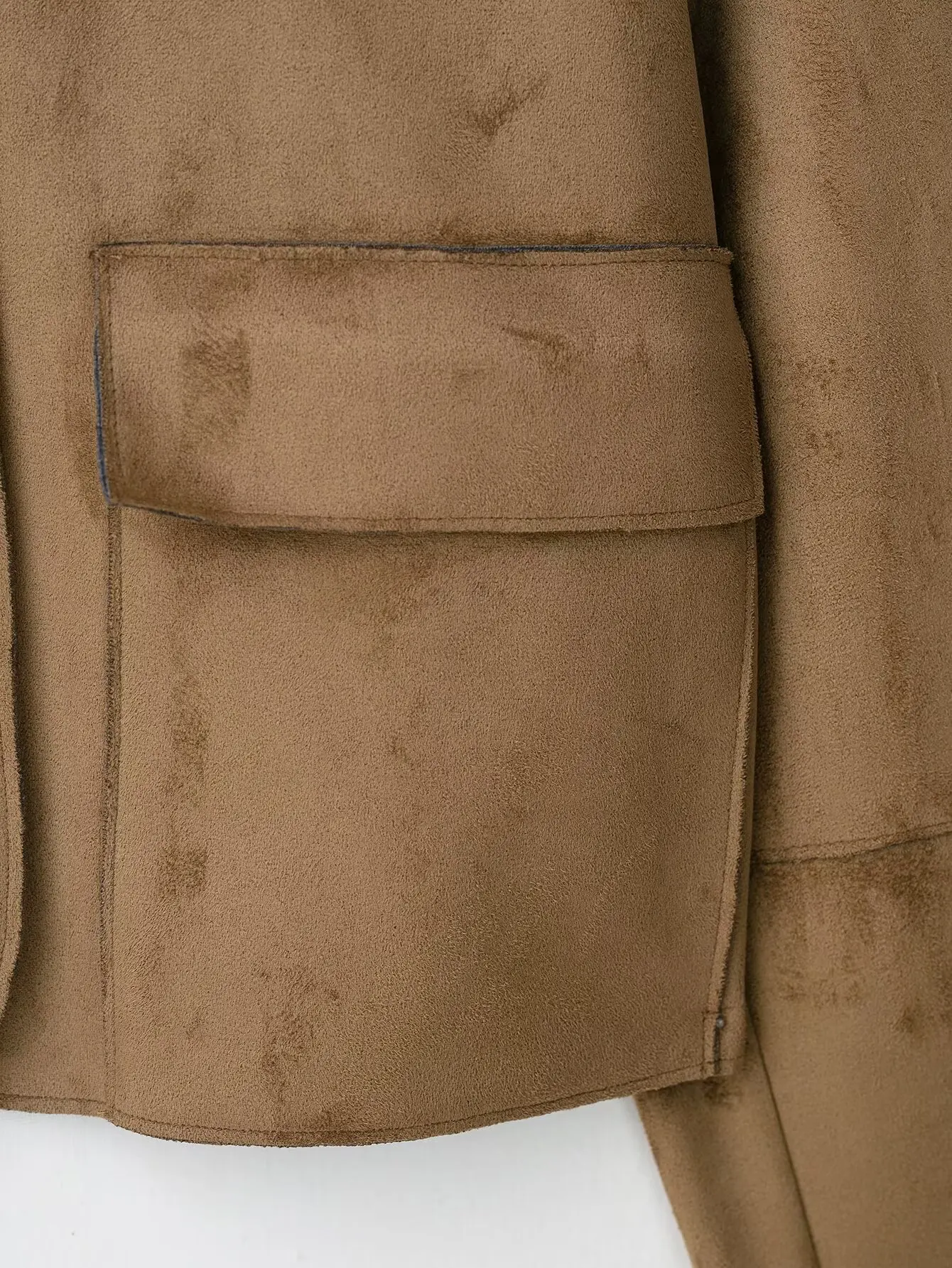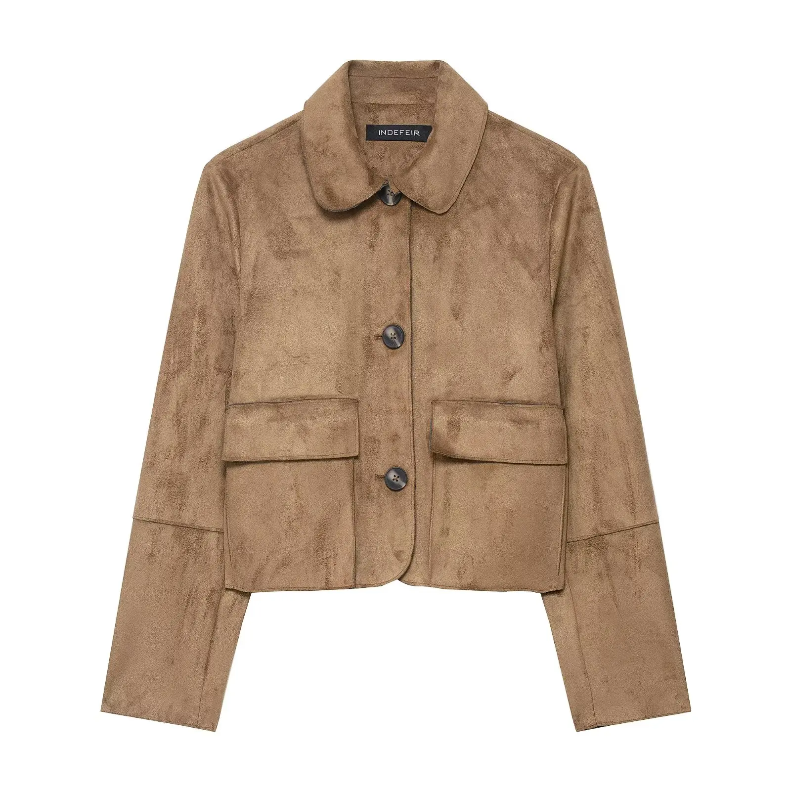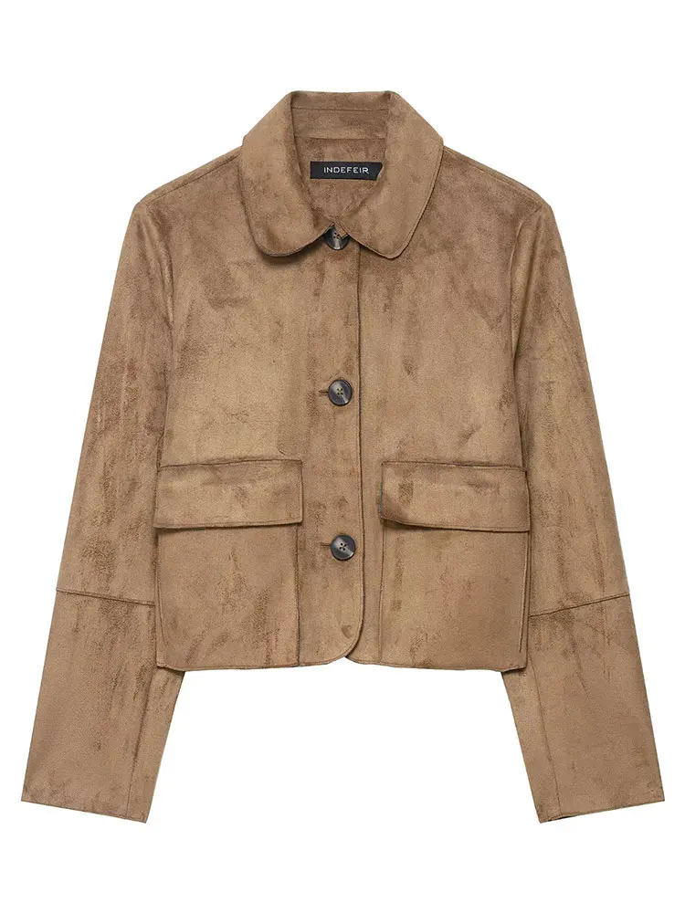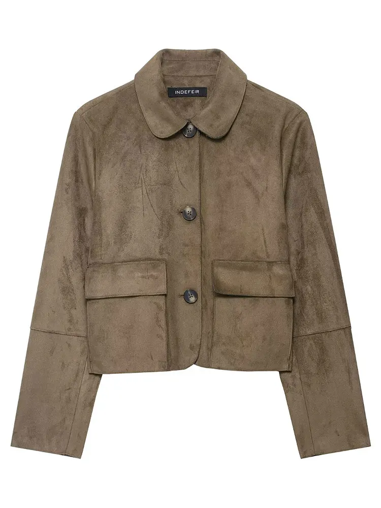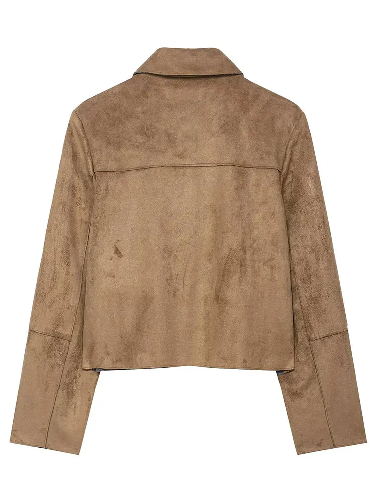 HH Giacca autunnale da donna Cappotto vintage in pelle scamosciata solida Manica lunga Colletto rovesciato Giacche corte Capispalla da strada alla moda