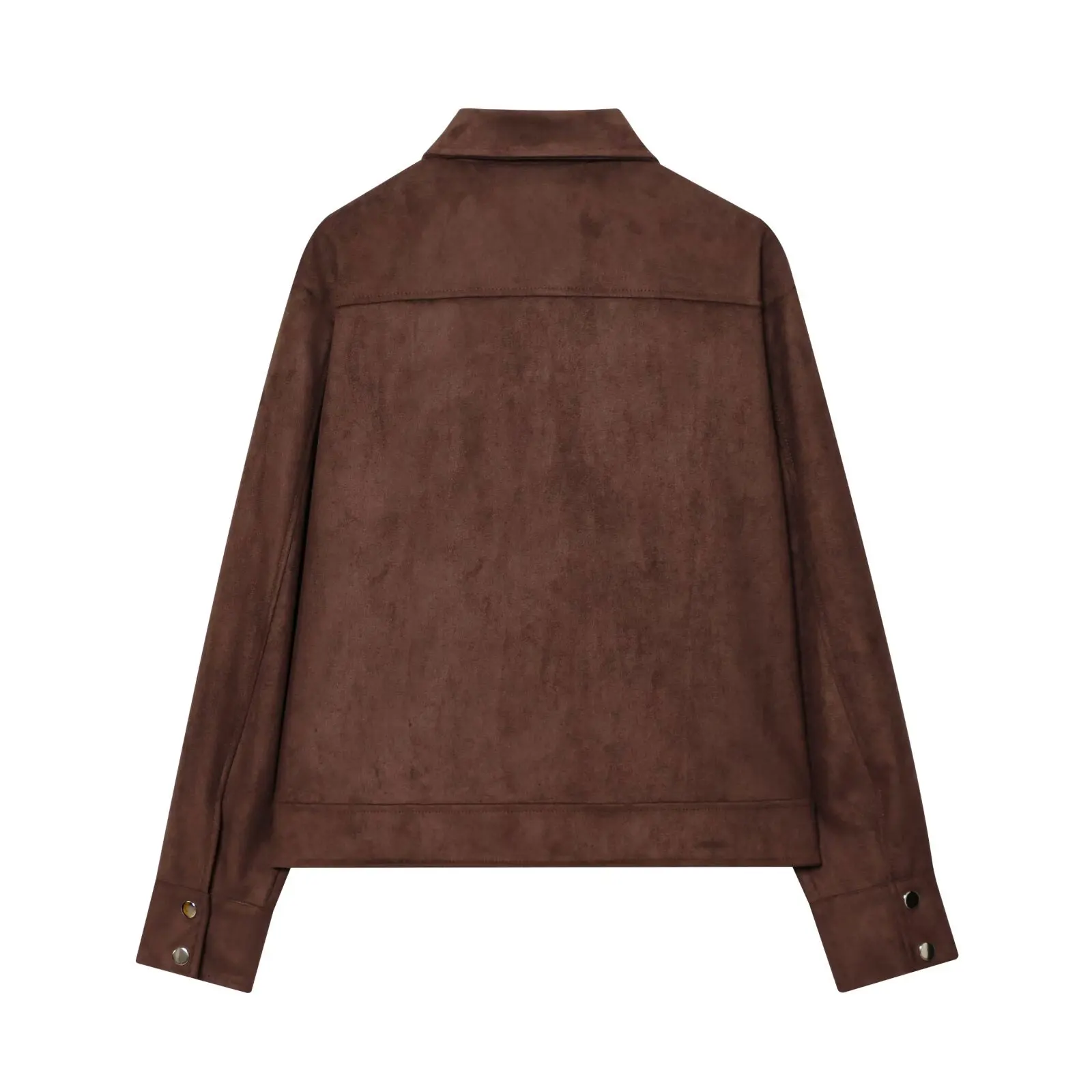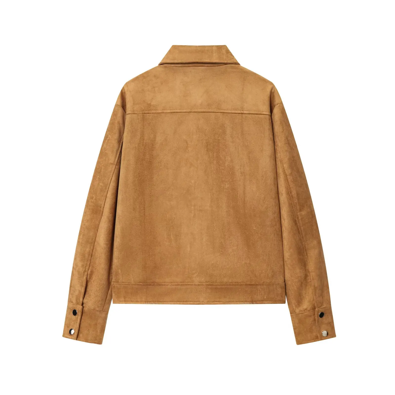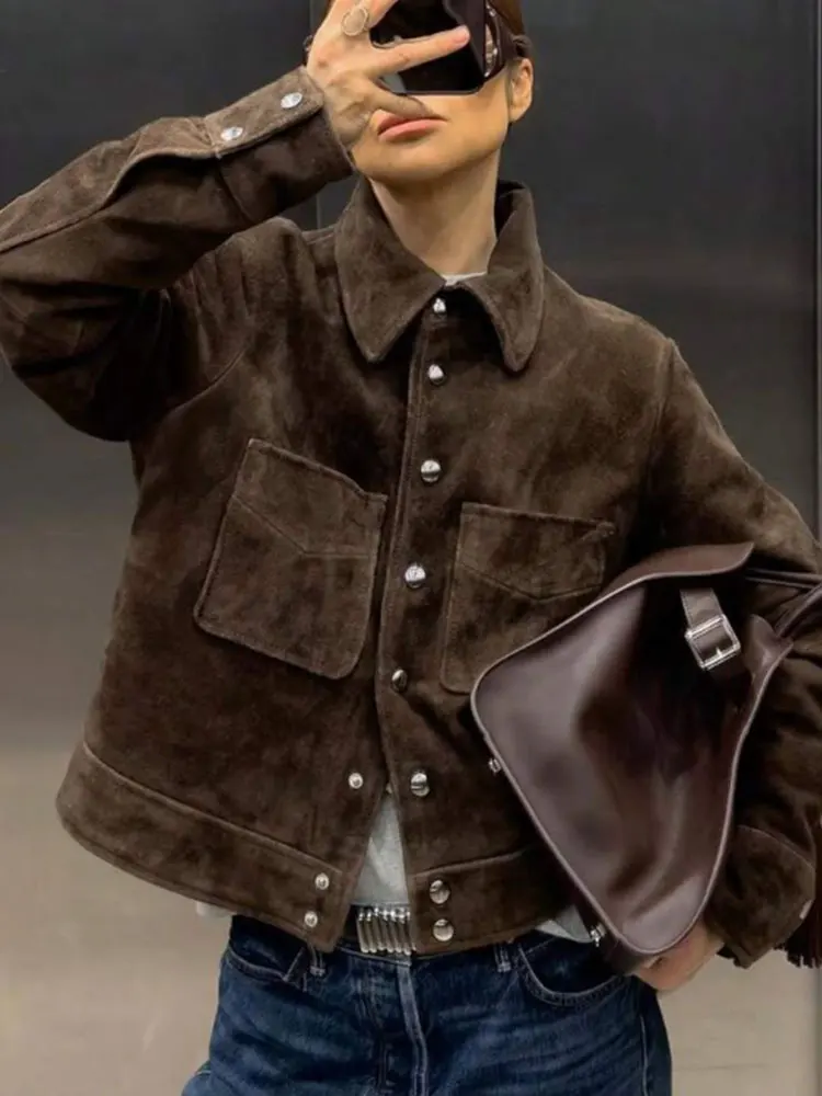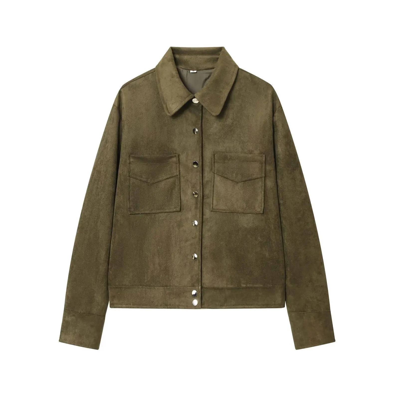 HH Street Fashion Giacca in pelle scamosciata da donna Maniche lunghe tinta unita Tasca con risvolto Decorata Cappotti vintage autunnali per colazione singola
