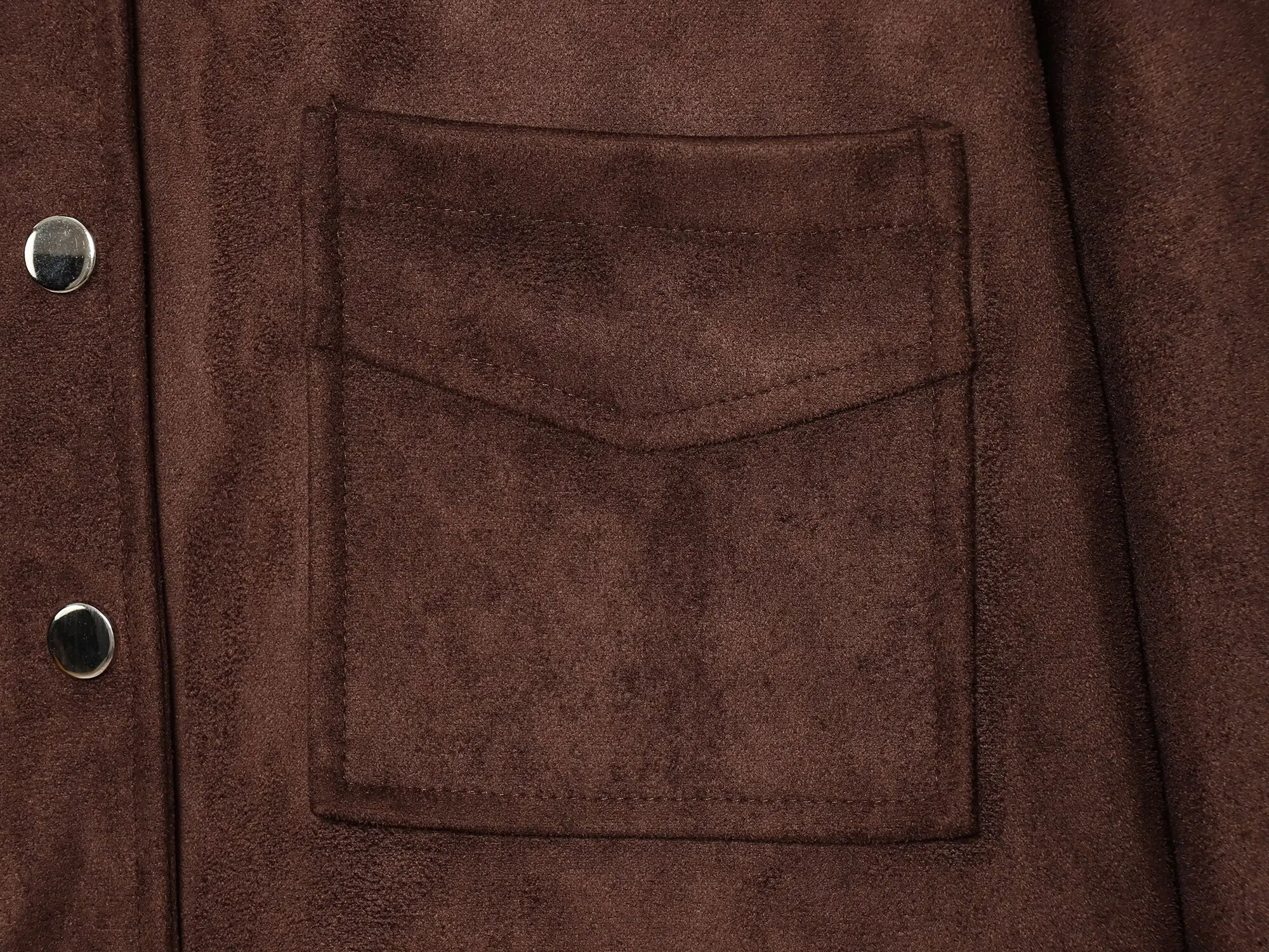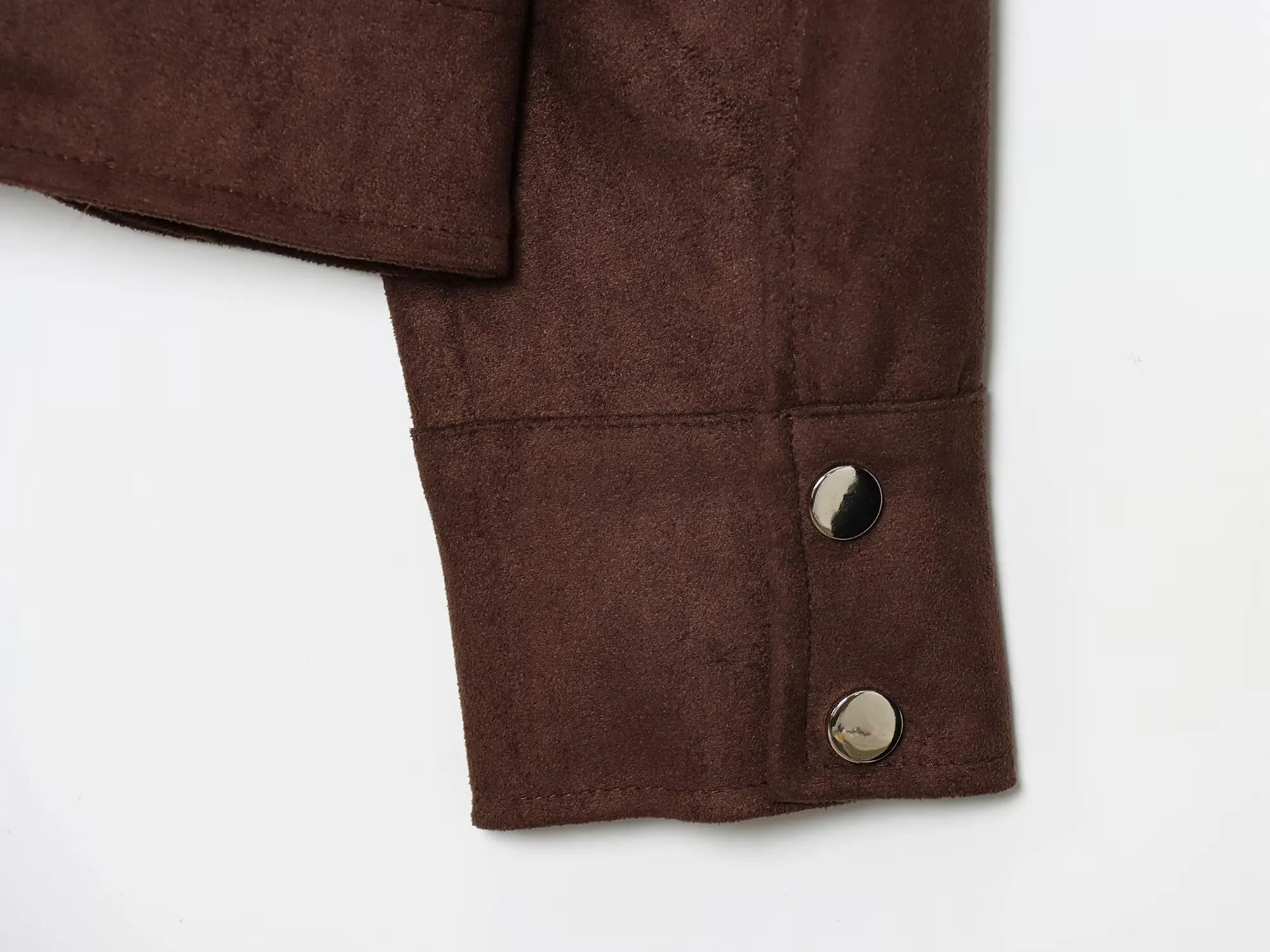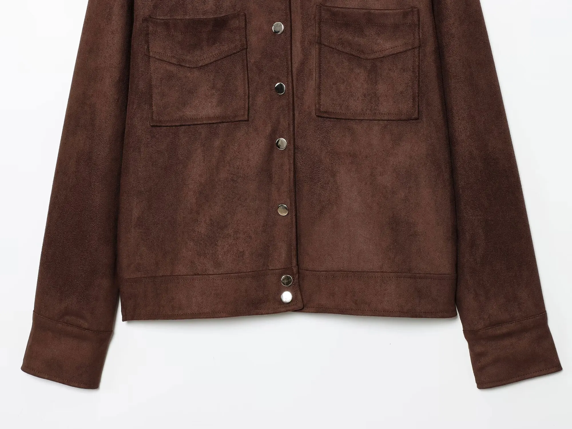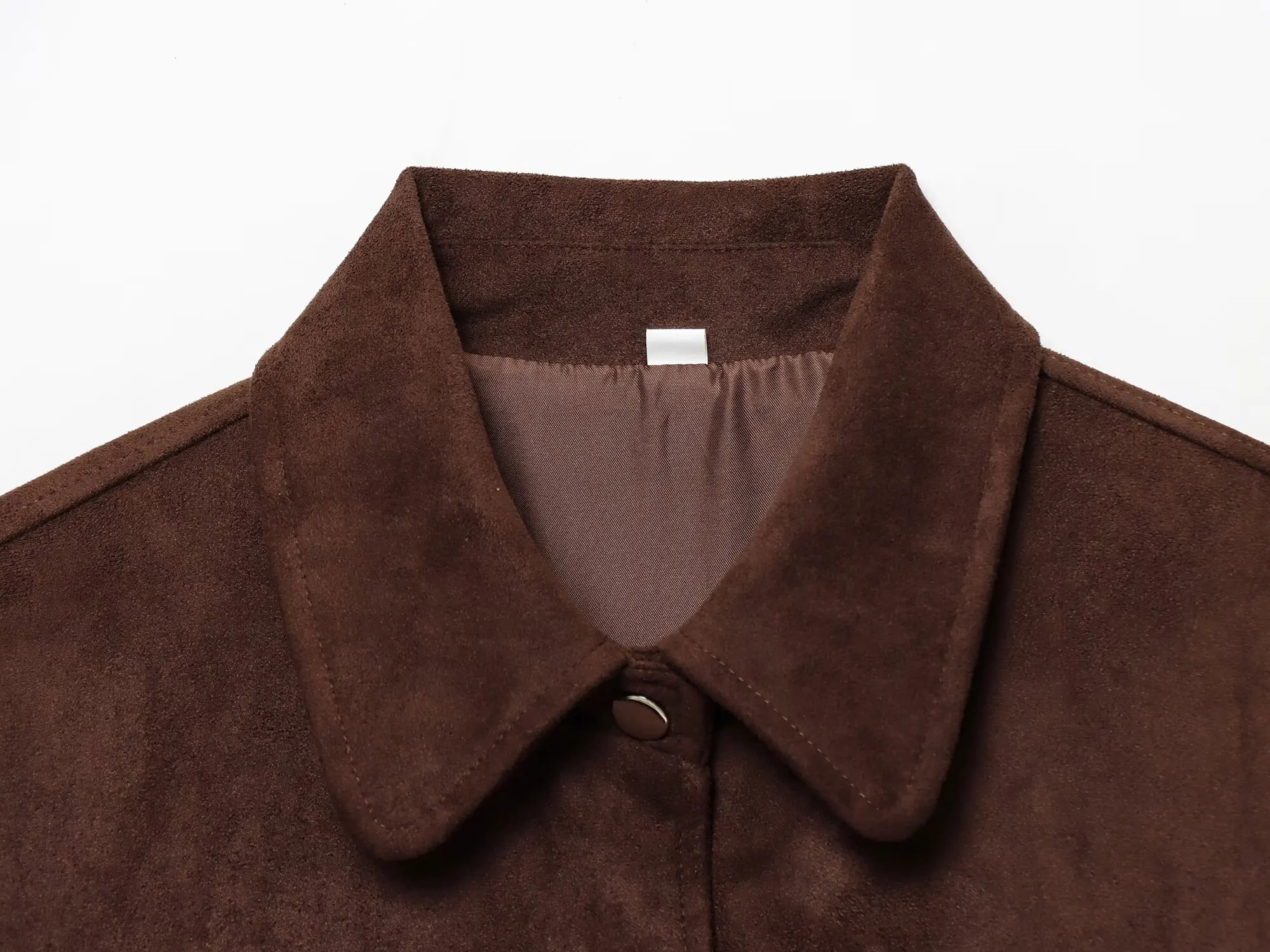 HH Street Fashion Giacca in pelle scamosciata da donna Maniche lunghe tinta unita Tasca con risvolto Decorata Cappotti vintage autunnali per colazione singola