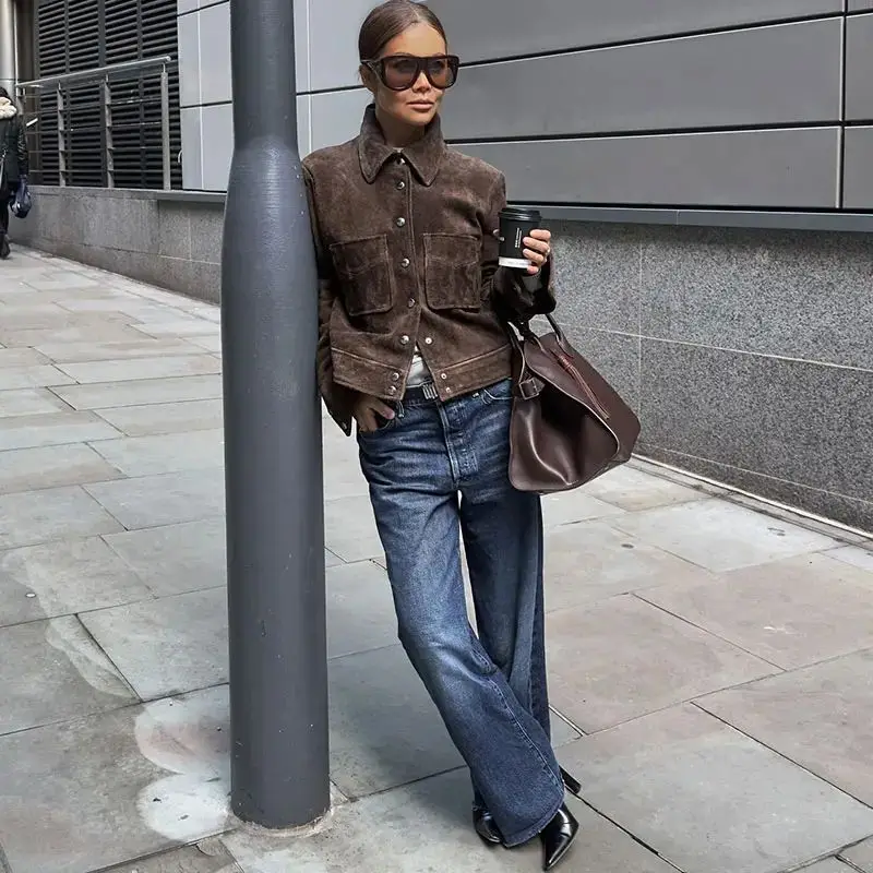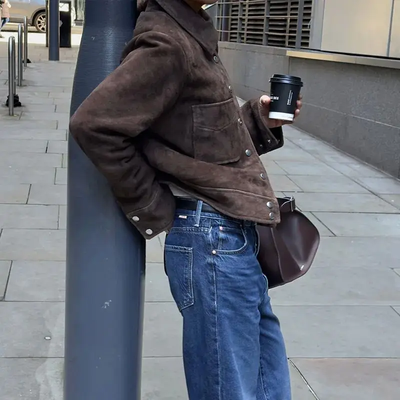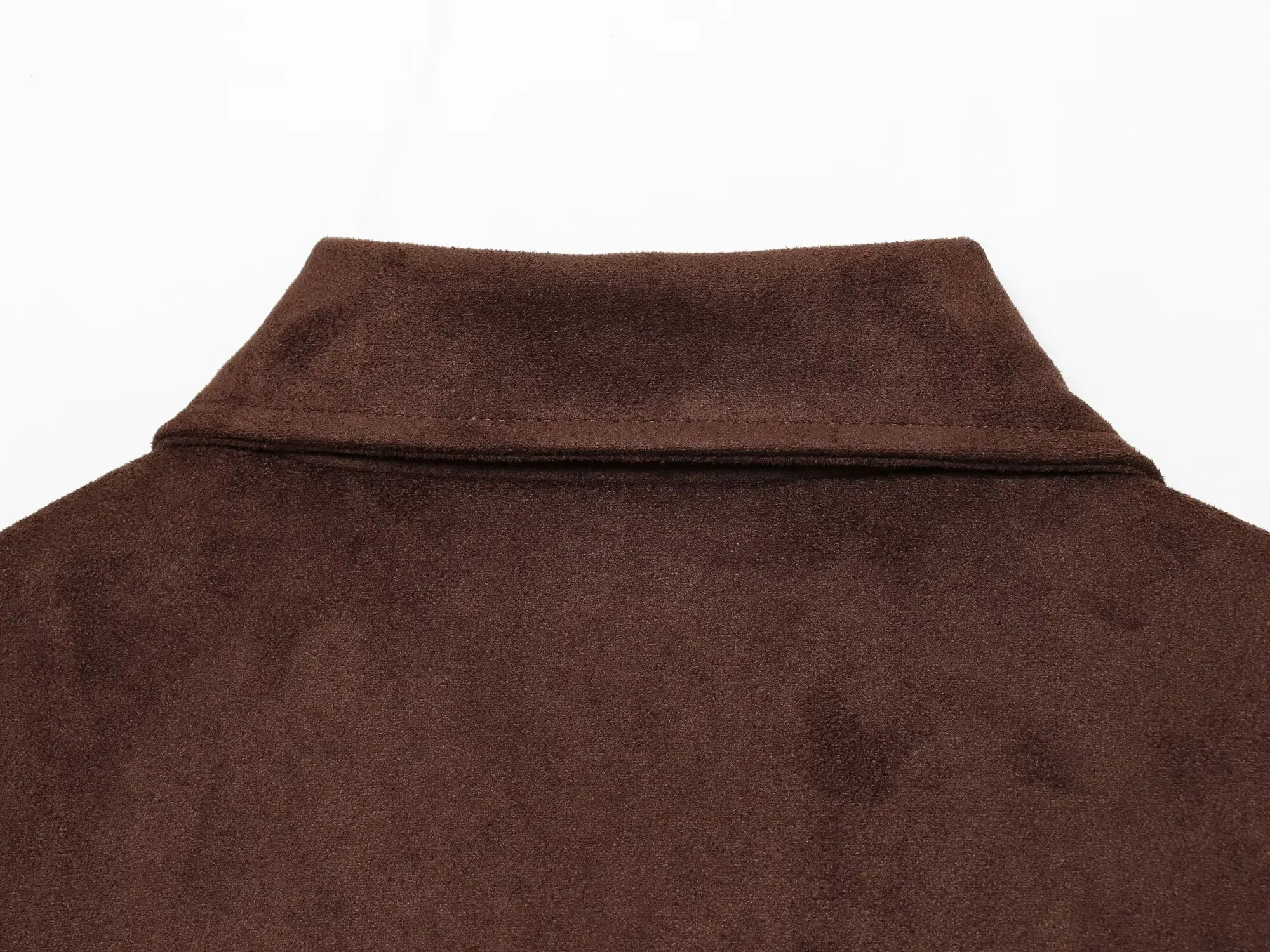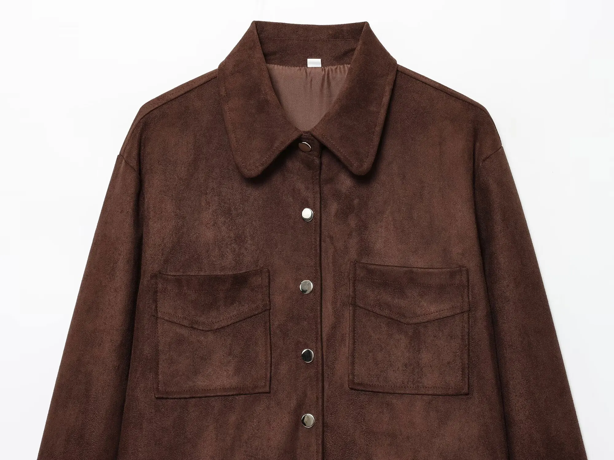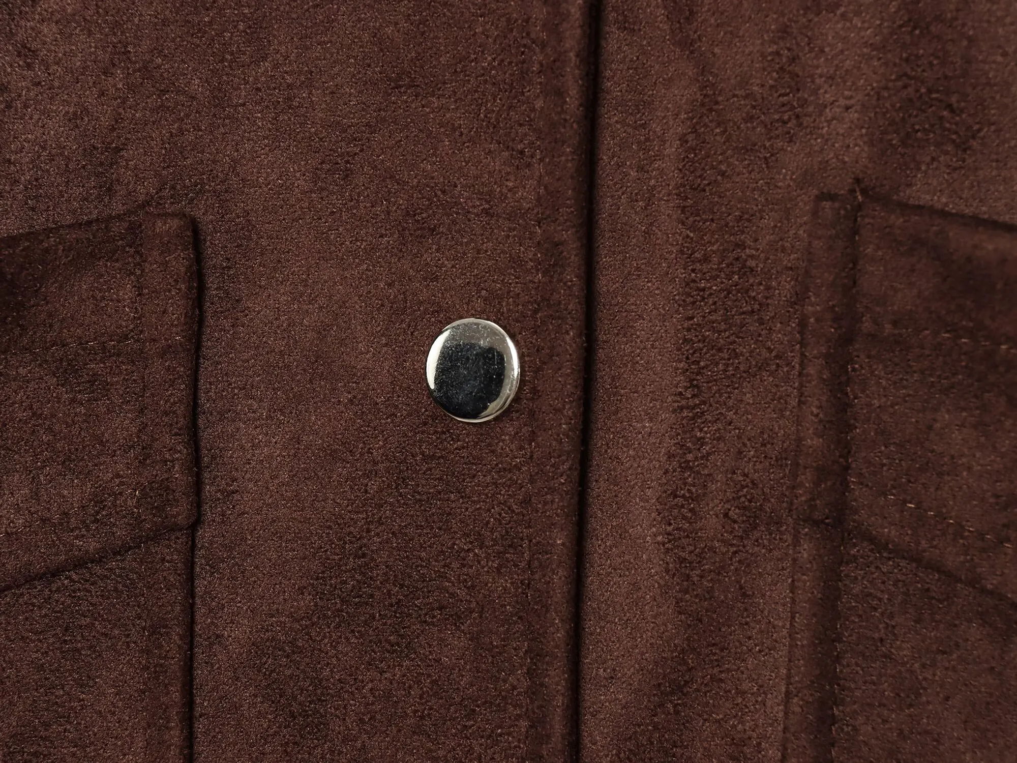 HH Street Fashion Giacca in pelle scamosciata da donna Maniche lunghe tinta unita Tasca con risvolto Decorata Cappotti vintage autunnali per colazione singola