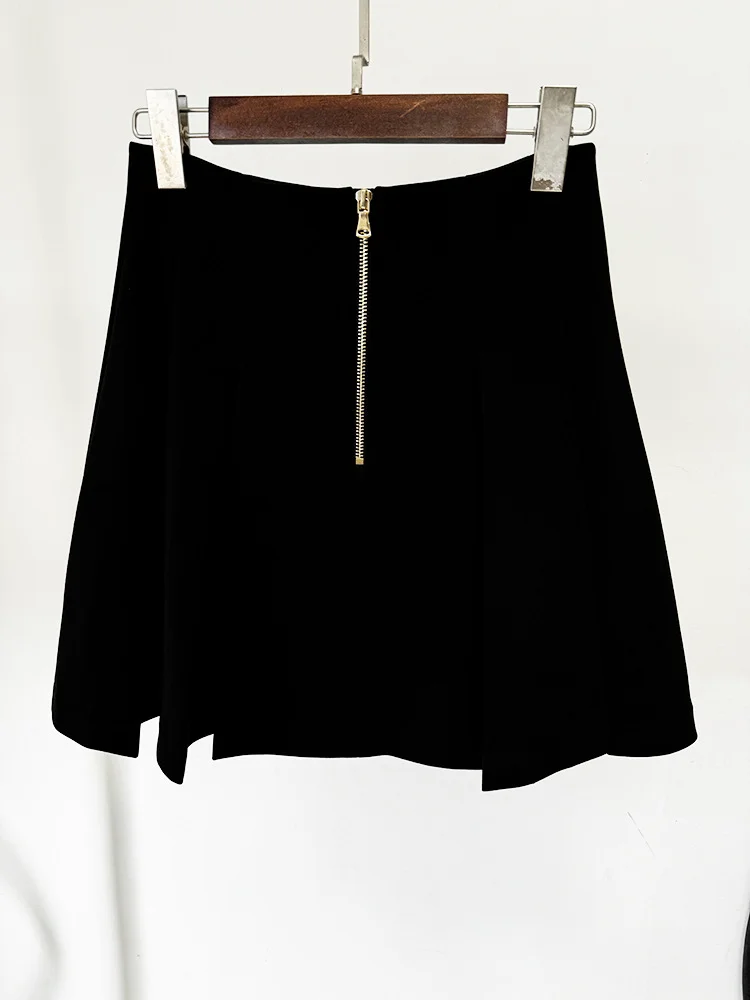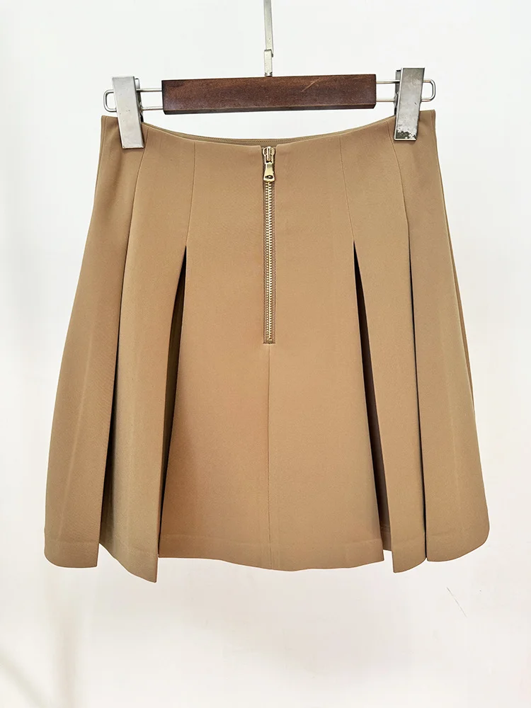 4 recensioni per HIGH STREET 2024 Minigonna a pieghe con decorazione grande fibbia in metallo da donna di design alla moda più nuova