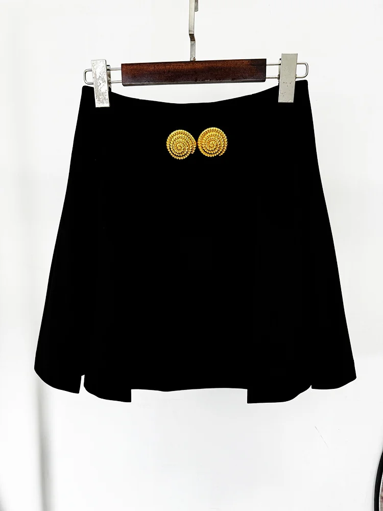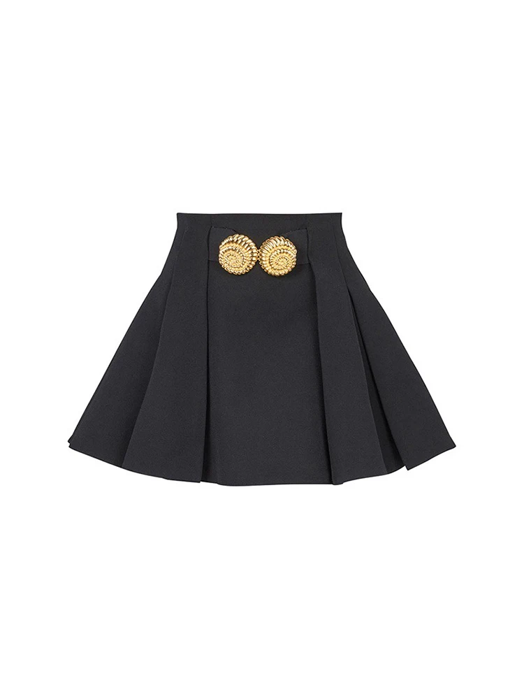 HIGH STREET 2024 Minigonna a pieghe con decorazione grande fibbia in metallo da donna di design alla moda più nuova