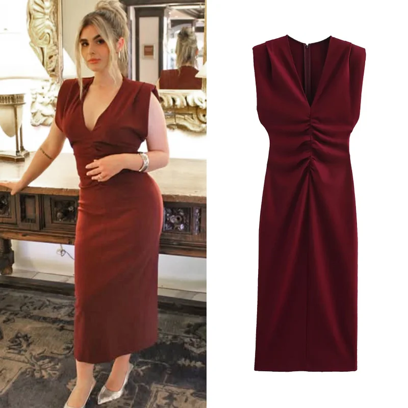 1 recensione per HXAO Abiti longuette eleganti bordeaux 2025 Abiti lunghi senza maniche primaverili da donna Moda Y2k Abito da sera vintage per feste Vestidos