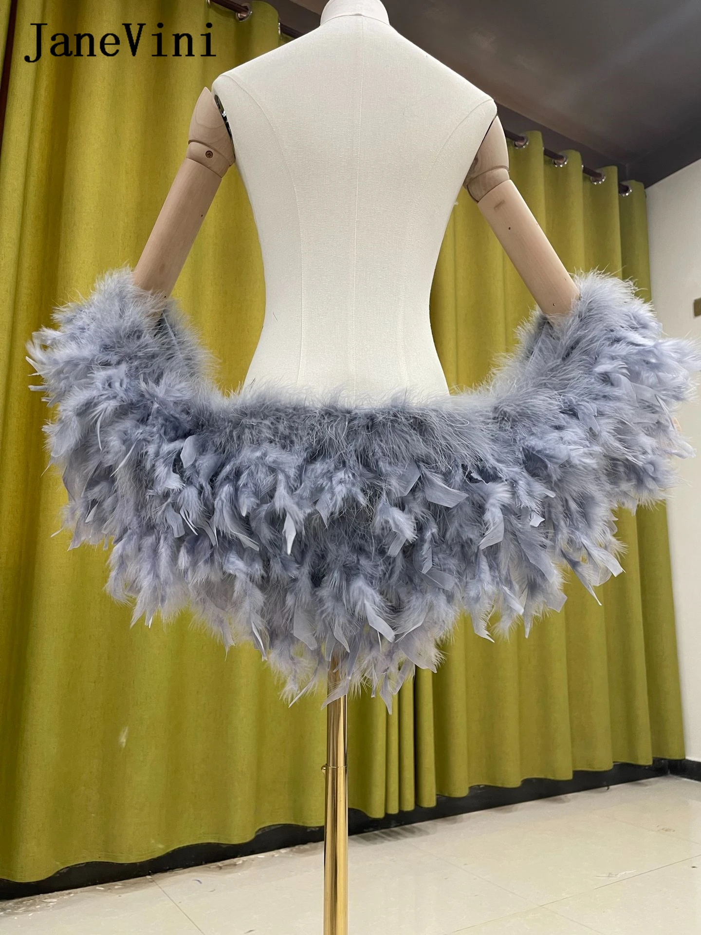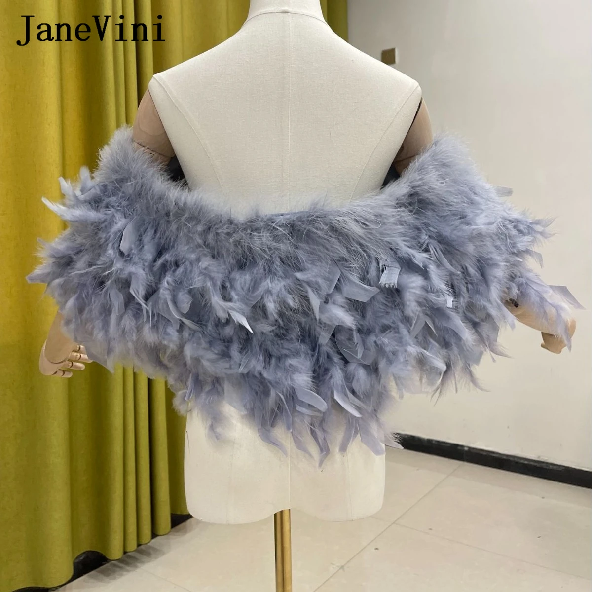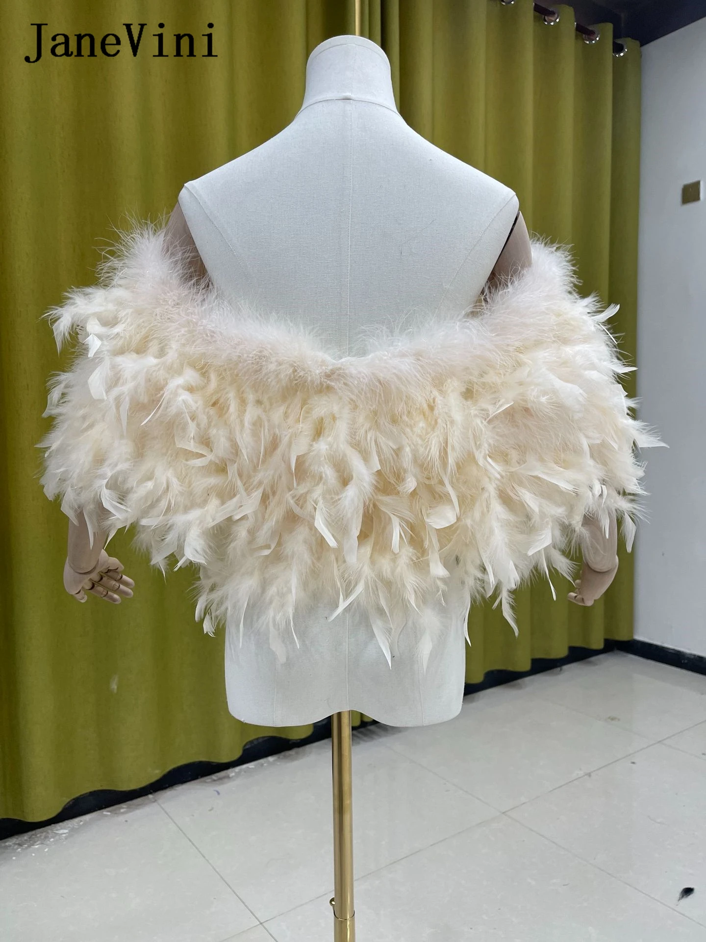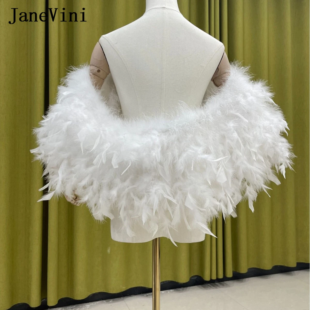 JaneVini Bianco Vere Piume di struzzo Scialle da sposa Donna Matrimonio Bolero Mariée Pelliccia invernale Mantelle da sposa Avvolge Coprispalle Coprispalle
