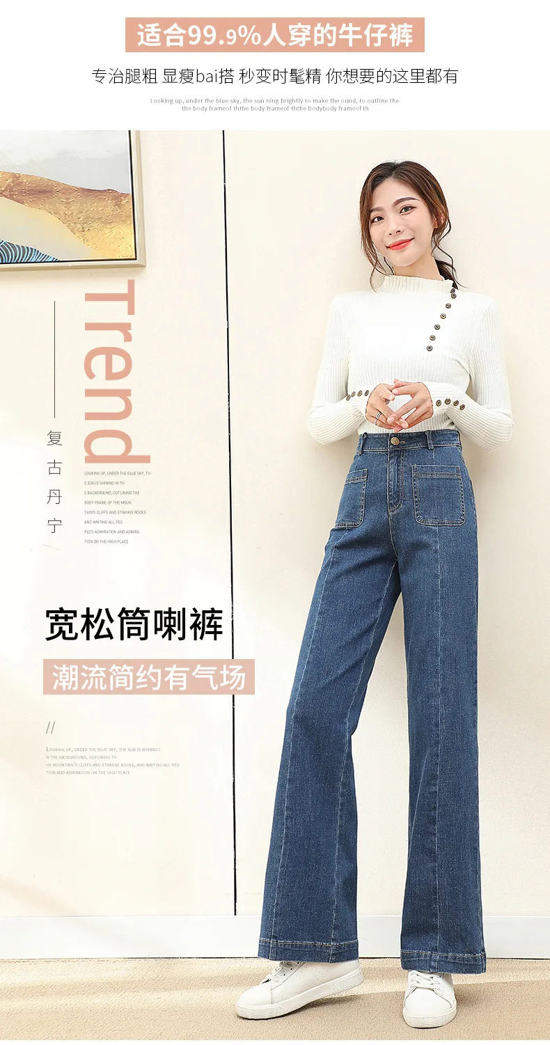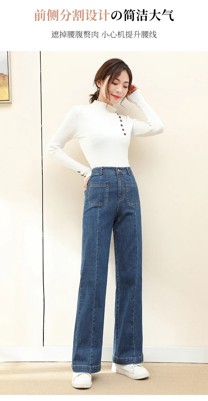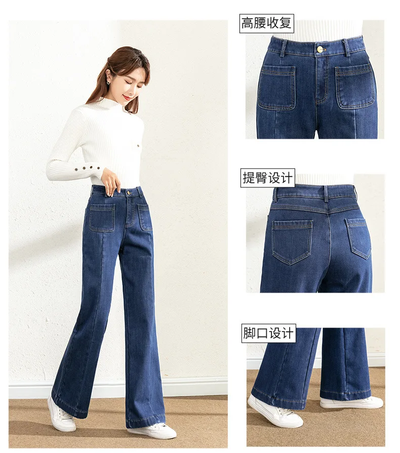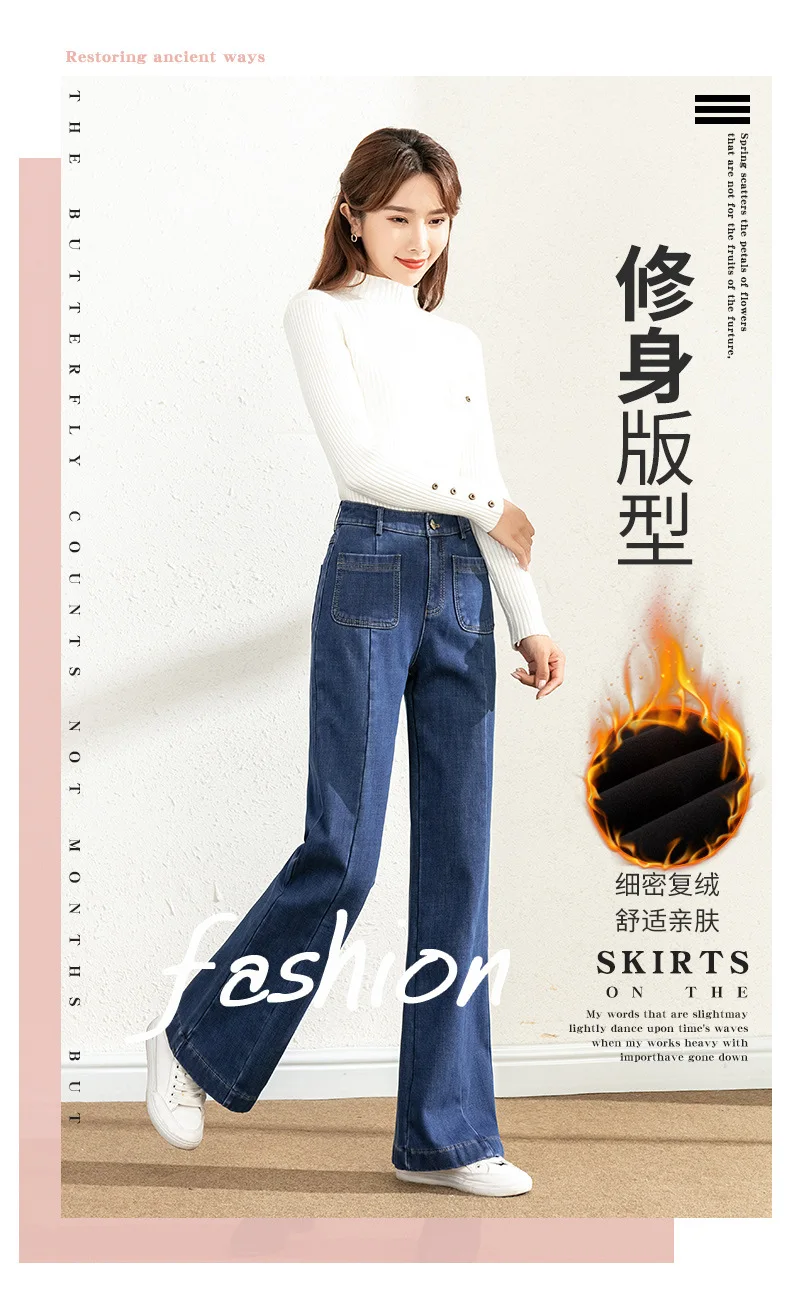 Recensisci per primo “Jeans in Denim a gamba larga in velluto da donna, elasticizzato caldo addensato, tasche grandi, vita alta, moda, Jeans in pile invernale, primavera autunno”
