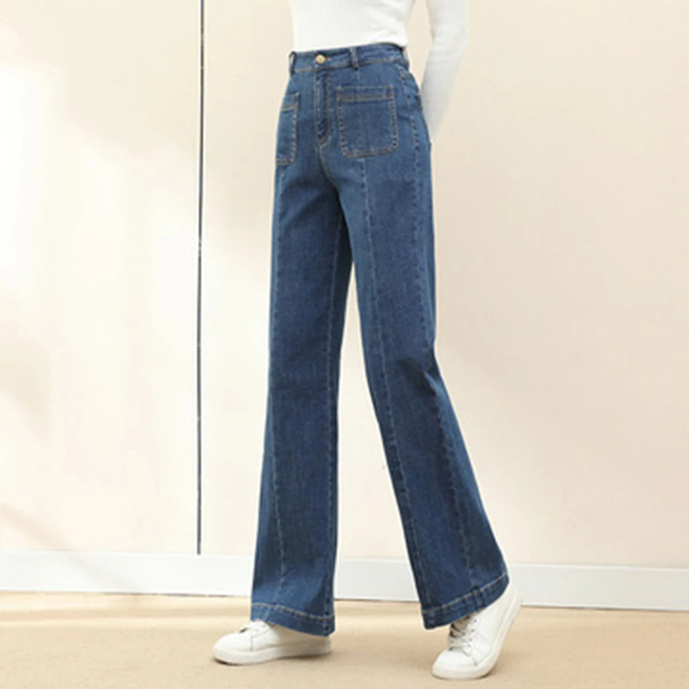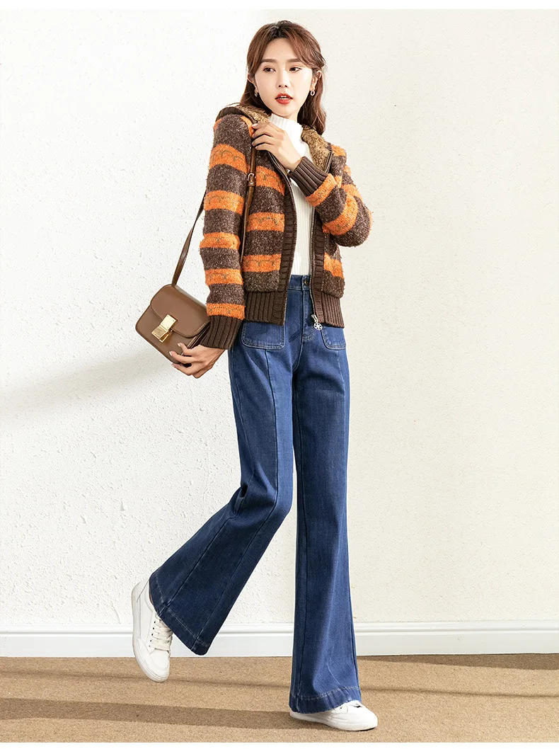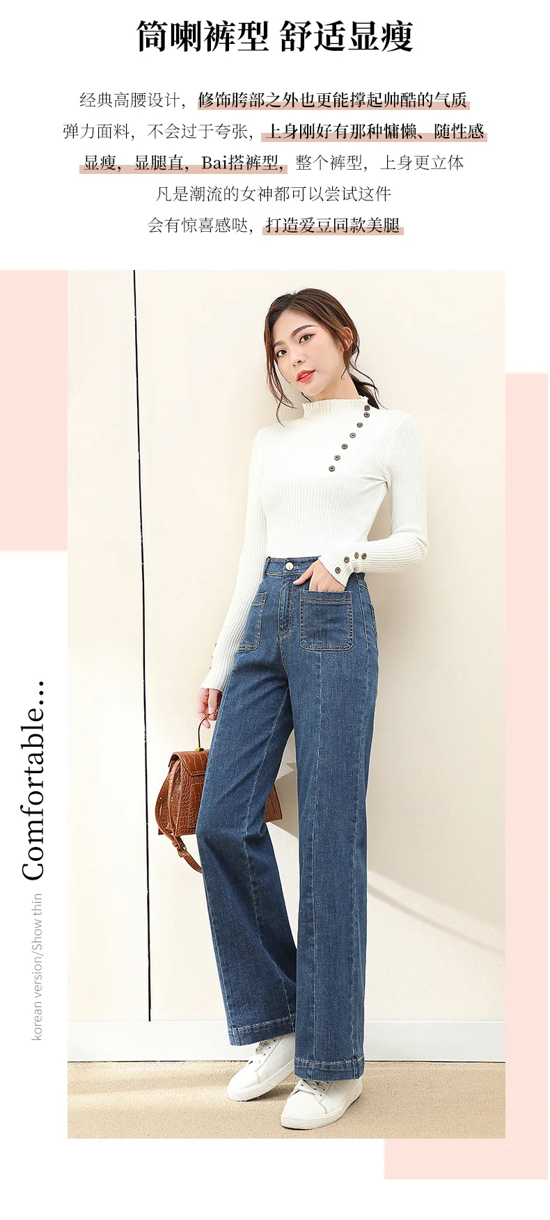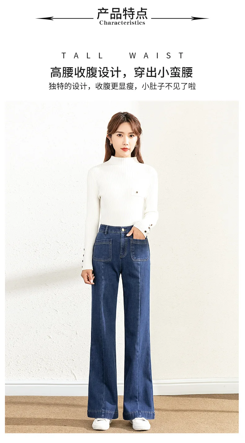 Recensisci per primo “Jeans in Denim a gamba larga in velluto da donna, elasticizzato caldo addensato, tasche grandi, vita alta, moda, Jeans in pile invernale, primavera autunno”