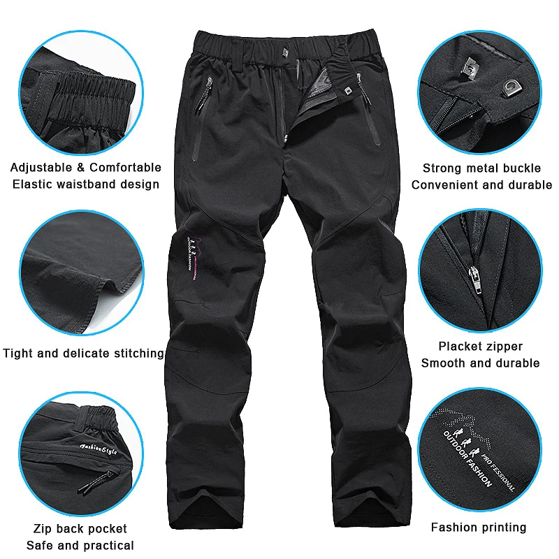 Pantaloni da esterno leggeri ed elastici, liberi e non vincolati quando si esercita, il tessuto ad asciugatura rapida di 90% nylon + 10% spandex possono rapidamente traspirare e asciugare, e se sentono comodamente. Tessuto morbido e traspirante, sensazione del corpo confortevole