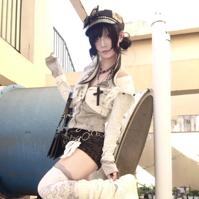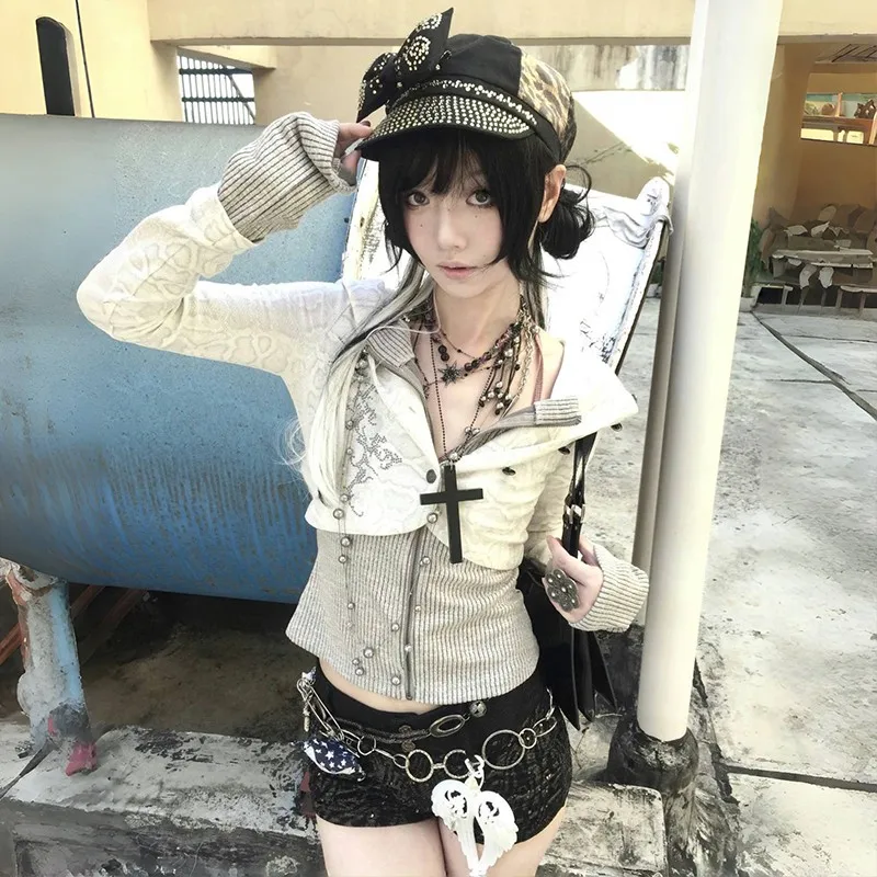 Karrram giapponese Y2k falso in due pezzi lavorato a maglia top Trashy anni 2000 giacca con cappuccio vintage Harajuku maglieria estetica grunge americana