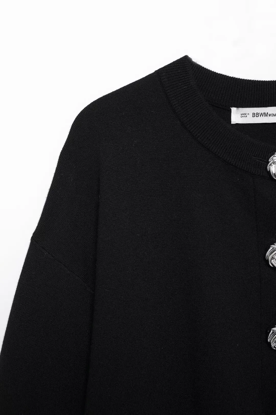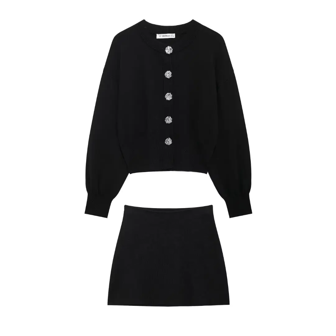 KONDALA 2024 Inverno Solido Nero Vintage Abito in maglia da donna Casual Bottone rosa Manica lunga Elegante Cardigan Mini Guaina Gonna sexy