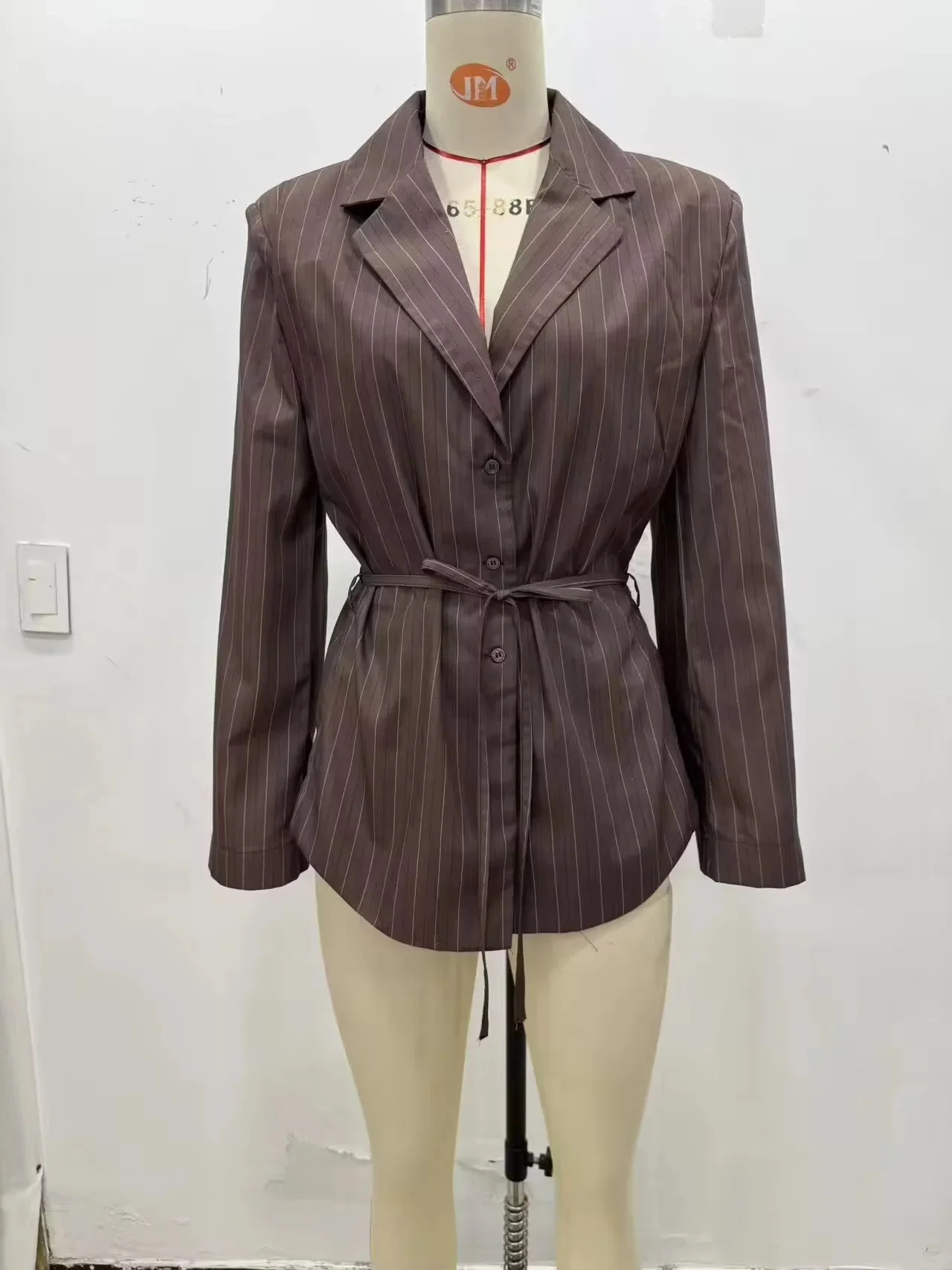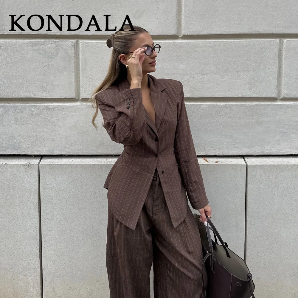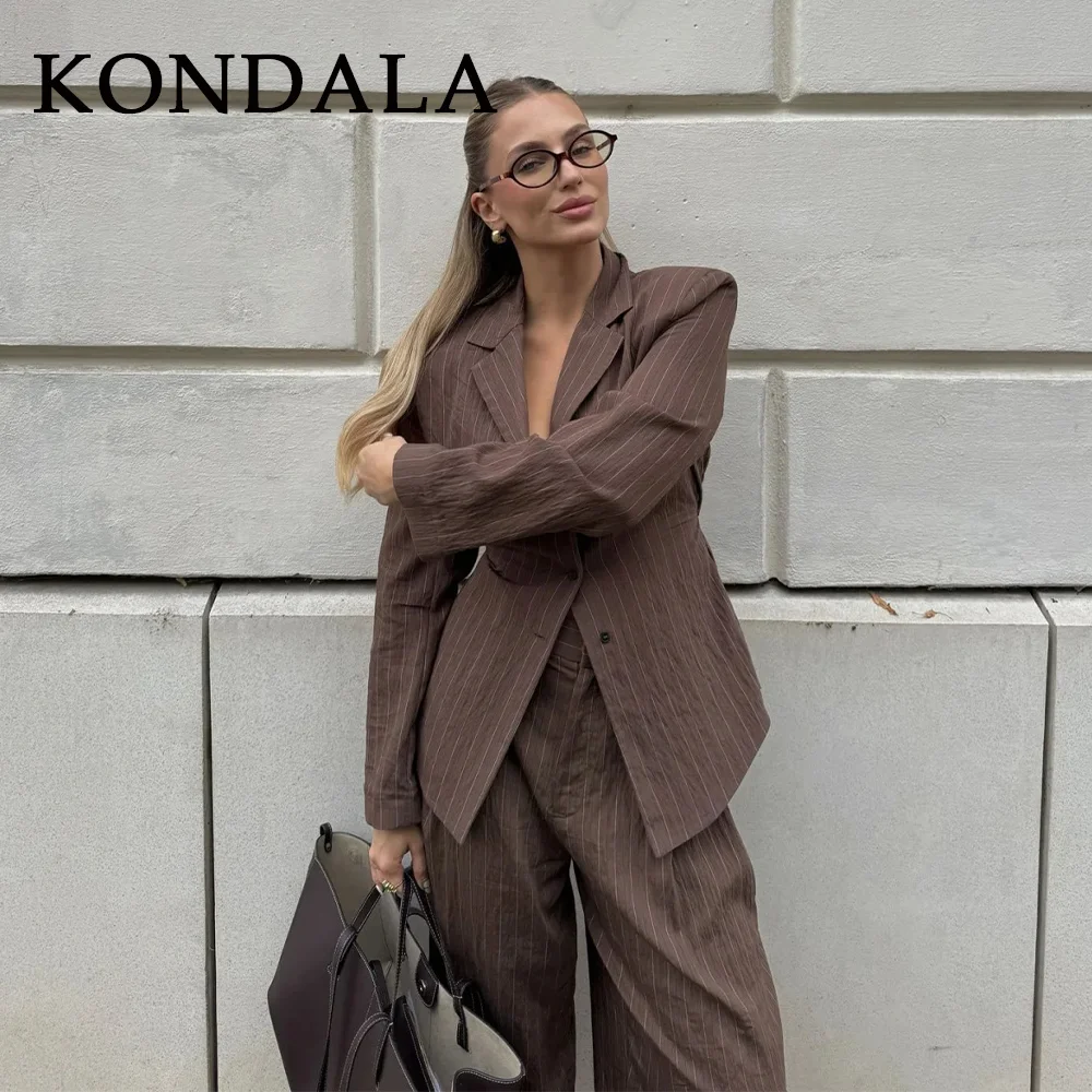 KONDALA 2025 Autunno Inverno A righe Office Lady Abiti Moda Elegante Marrone Telai Allentati monopetto Blazer Chic Pantaloni a gamba larga