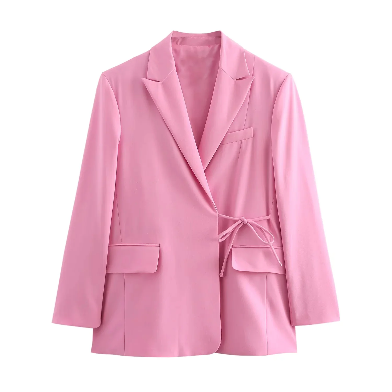 KONDALA 2025 Autunno Inverno Office Lady Blazer eleganti Moda Casual Solid Pink Lace Up Coprispalle Dritto Chic Blazer da donna
