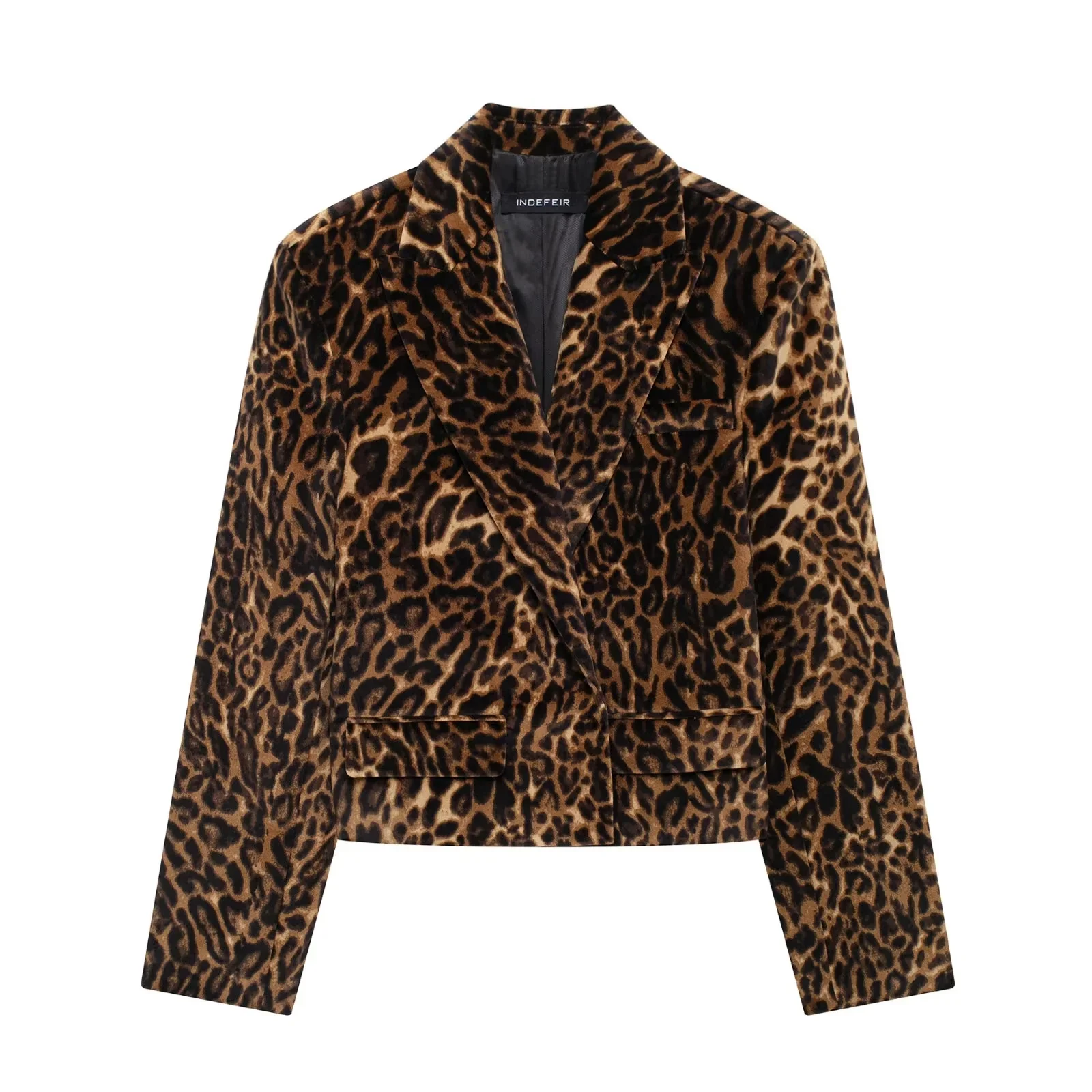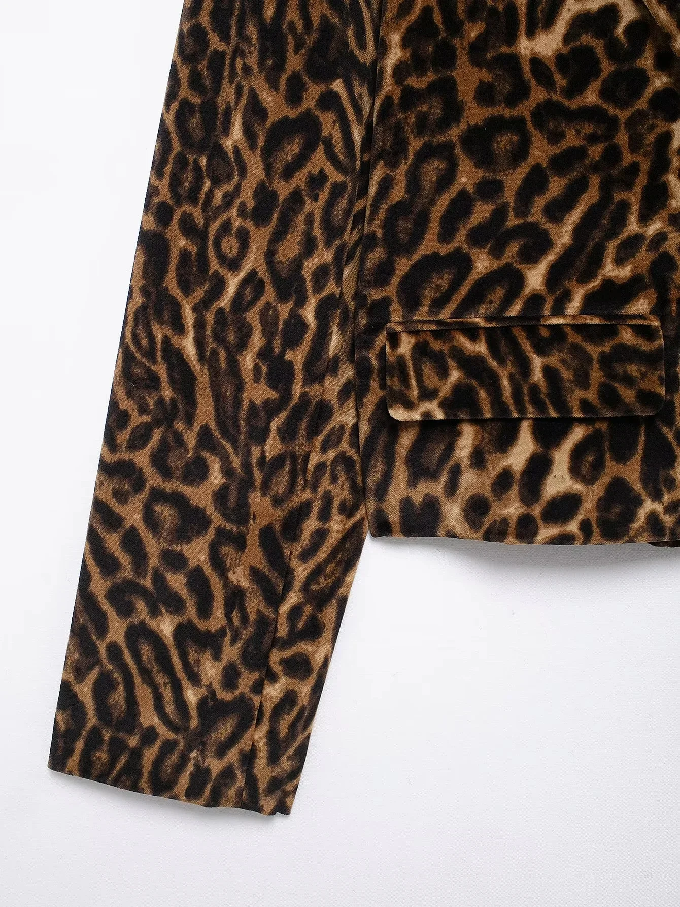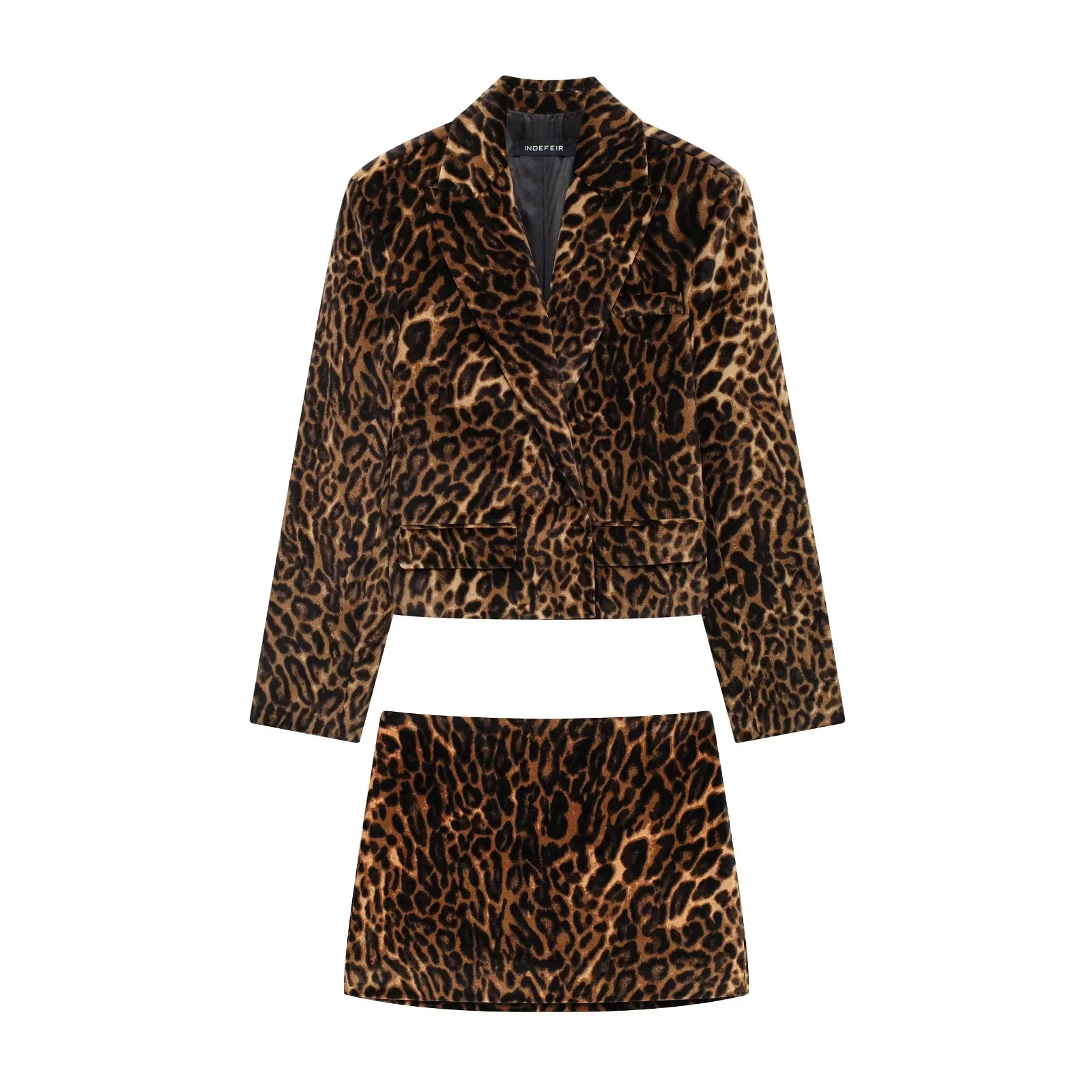 KONDALA 2025 Autunno Inverno Office Lady Stampa Abiti leopardati Moda Vintage Bottone singolo Blazer corti Chic Minigonne da donna