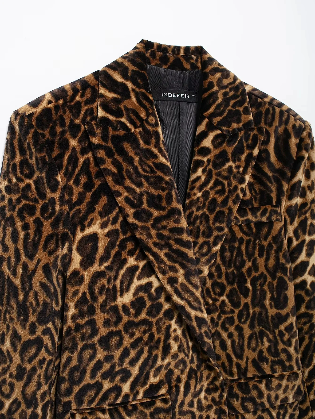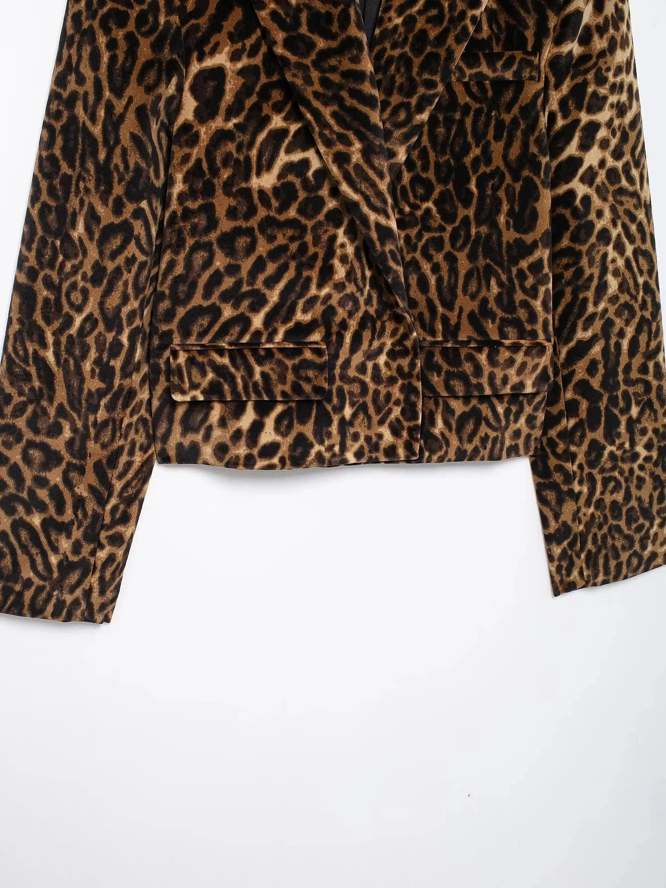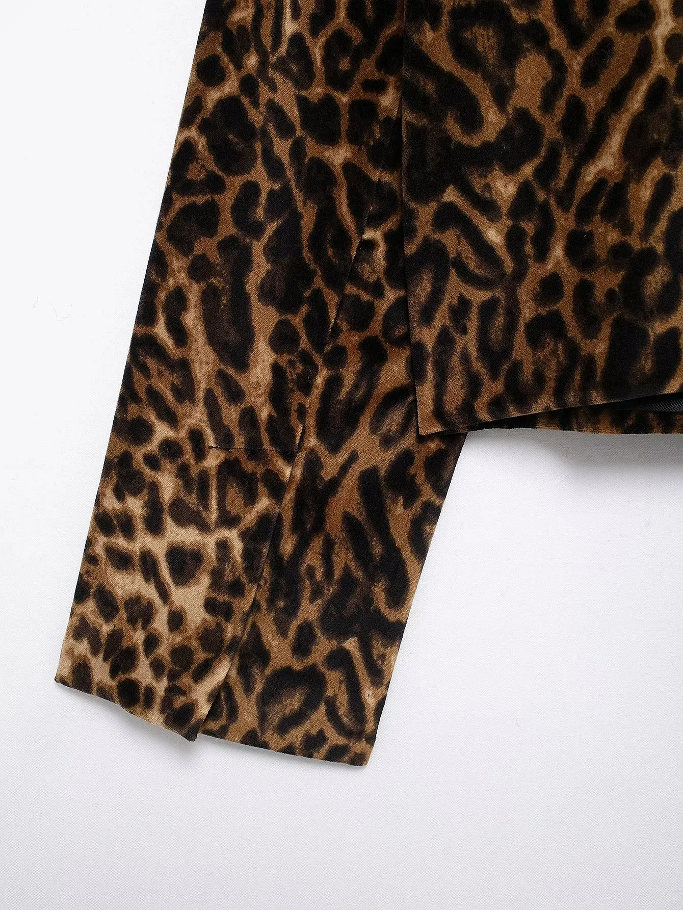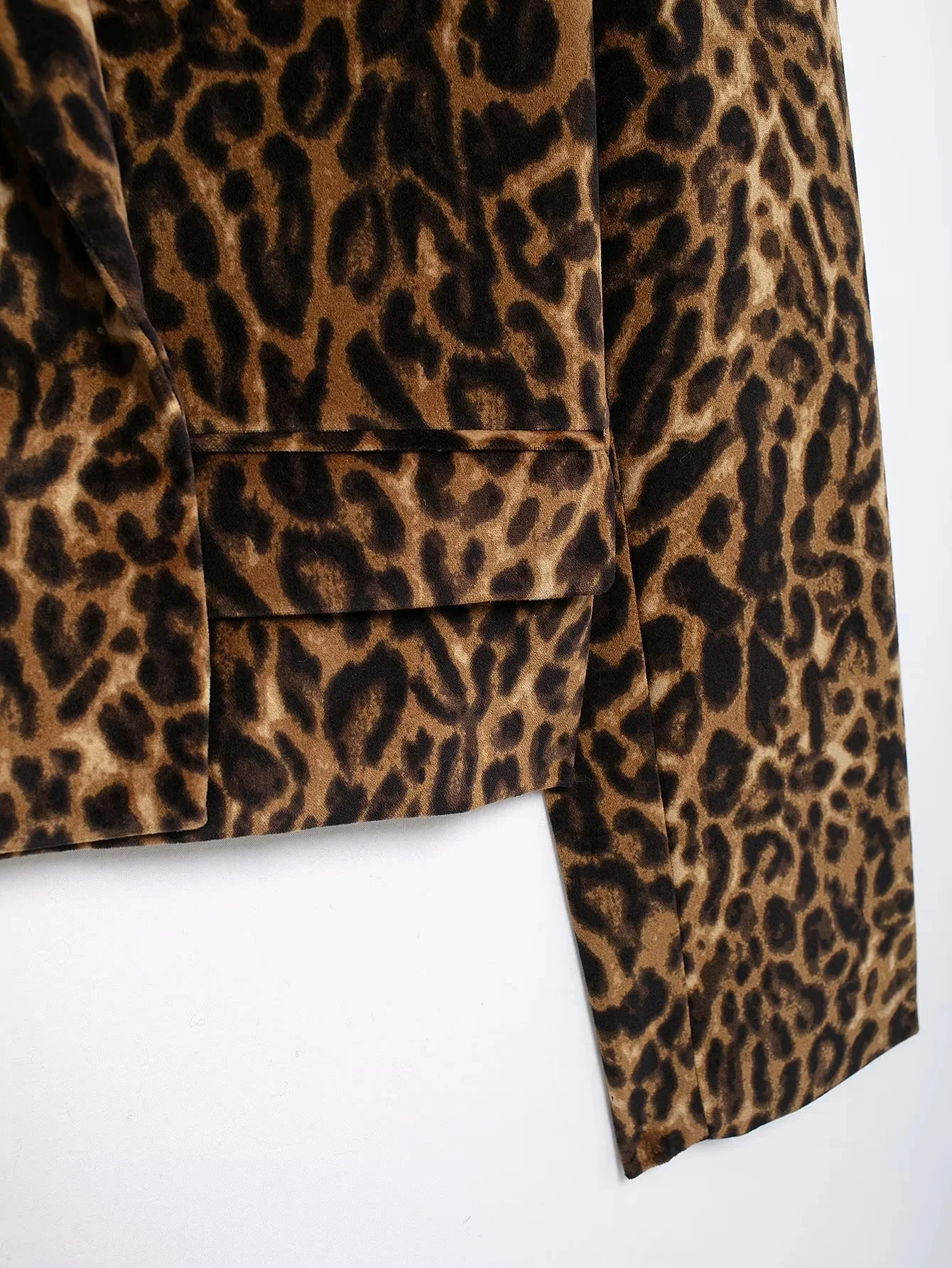 KONDALA 2025 Autunno Inverno Office Lady Stampa Abiti leopardati Moda Vintage Bottone singolo Blazer corti Chic Minigonne da donna