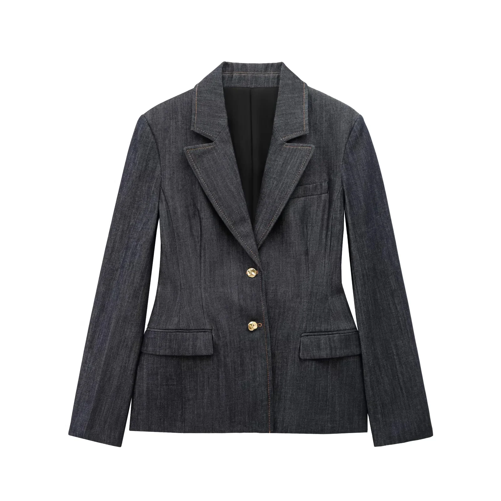 Recensisci per primo “KONDALA 2025 Autunno Inverno Streetwear Denim Donna Blazer Moda Office Lady Solid monopetto Coprispalle Eleganti ragazze Giacche”