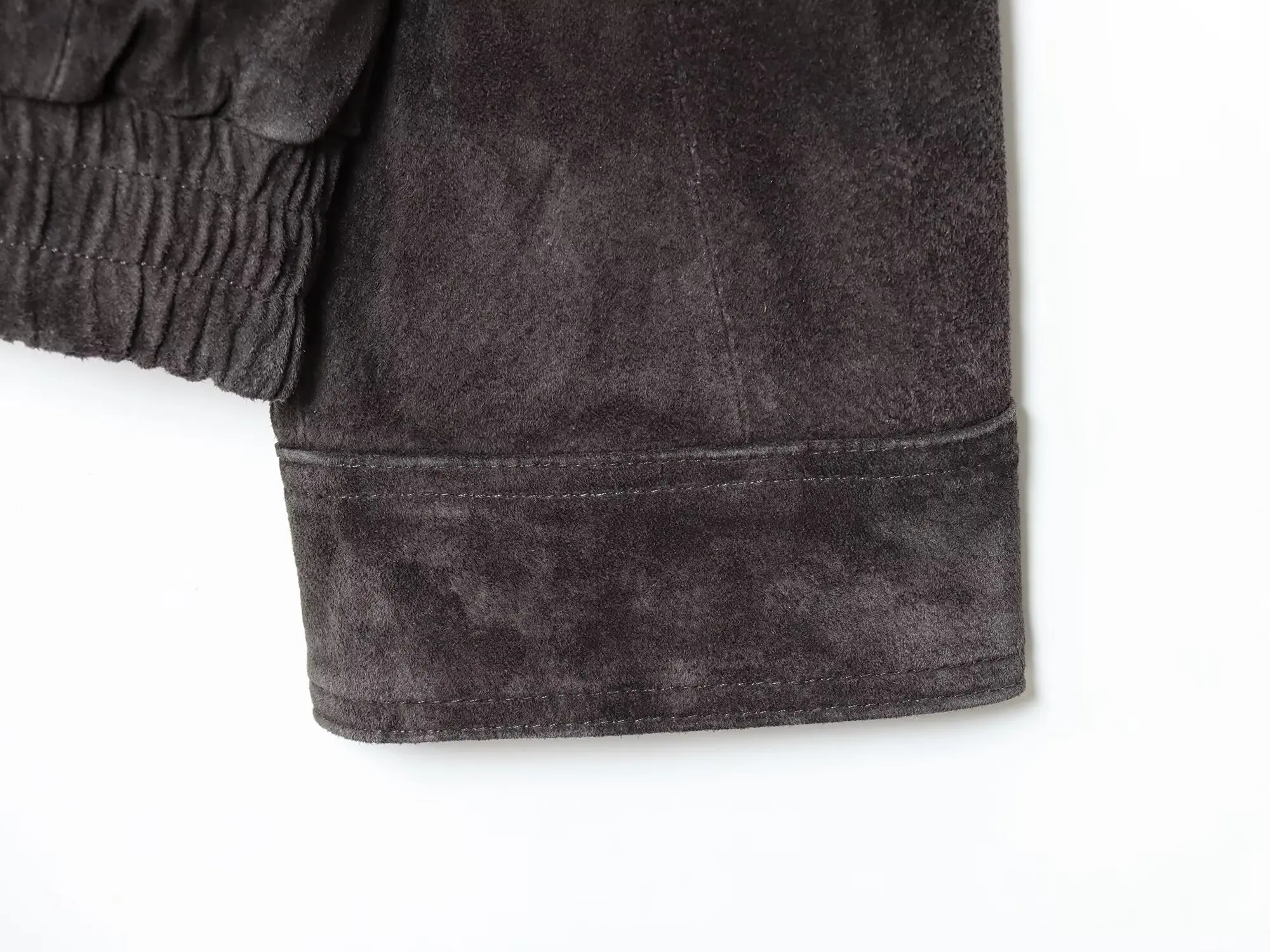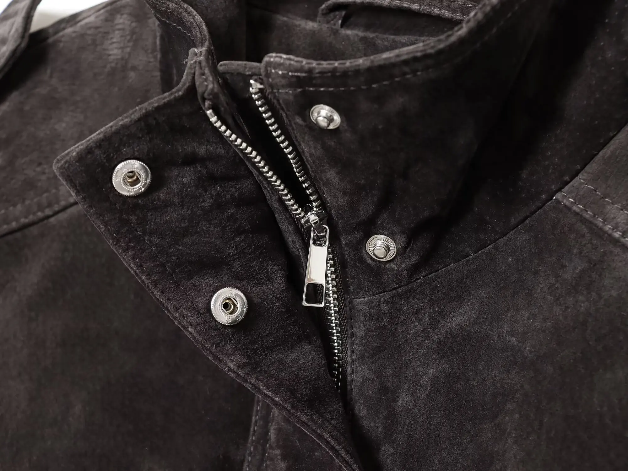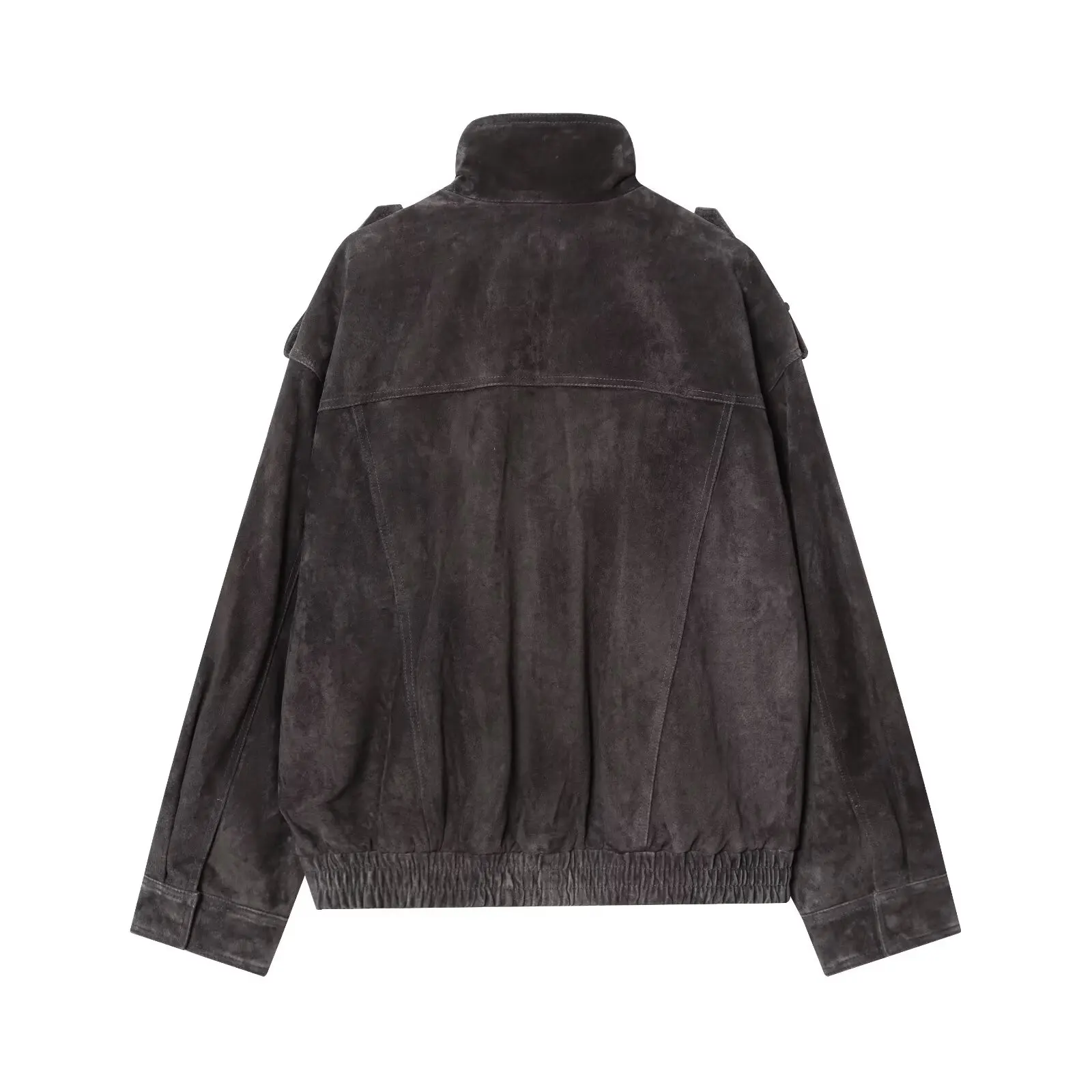KONDALA Autunno Donna Elegante Giacca in pelle scamosciata Colletto rialzato Giacca ampia con cerniera grigia 2025 Giacca da donna streetwear autunno inverno