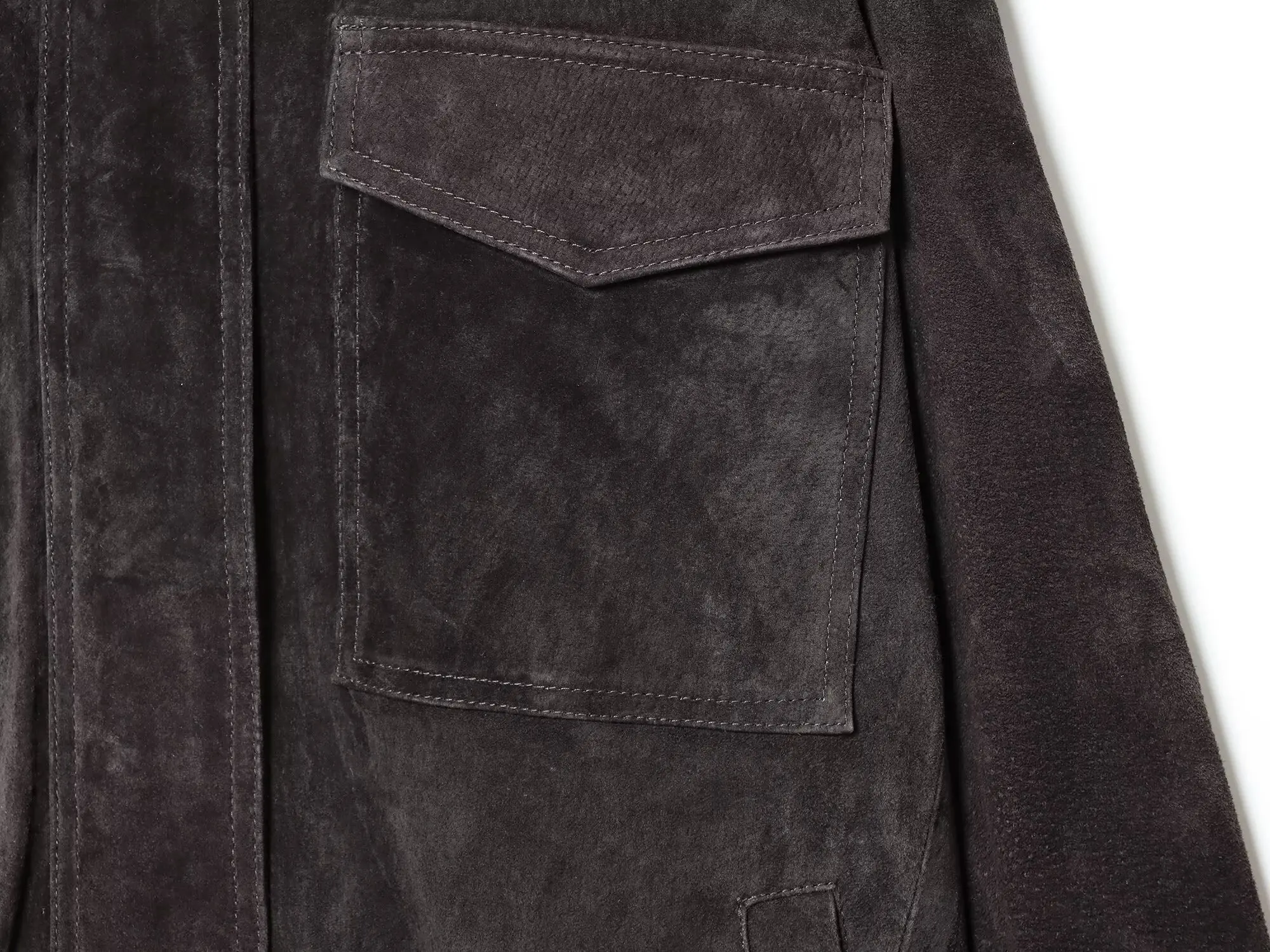 La giacca è bellissima, mi è piaciuta tantissimo. È di un grigio scuro e il tessuto è molto simile alla pelle scamosciata. È di ottima qualità, sono davvero soddisfatto.
