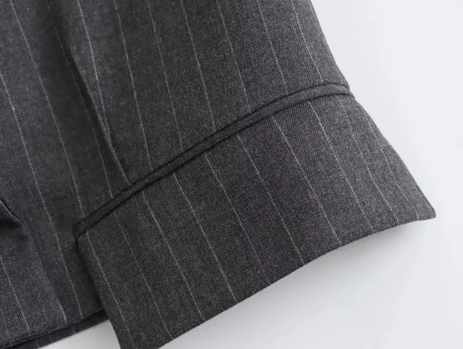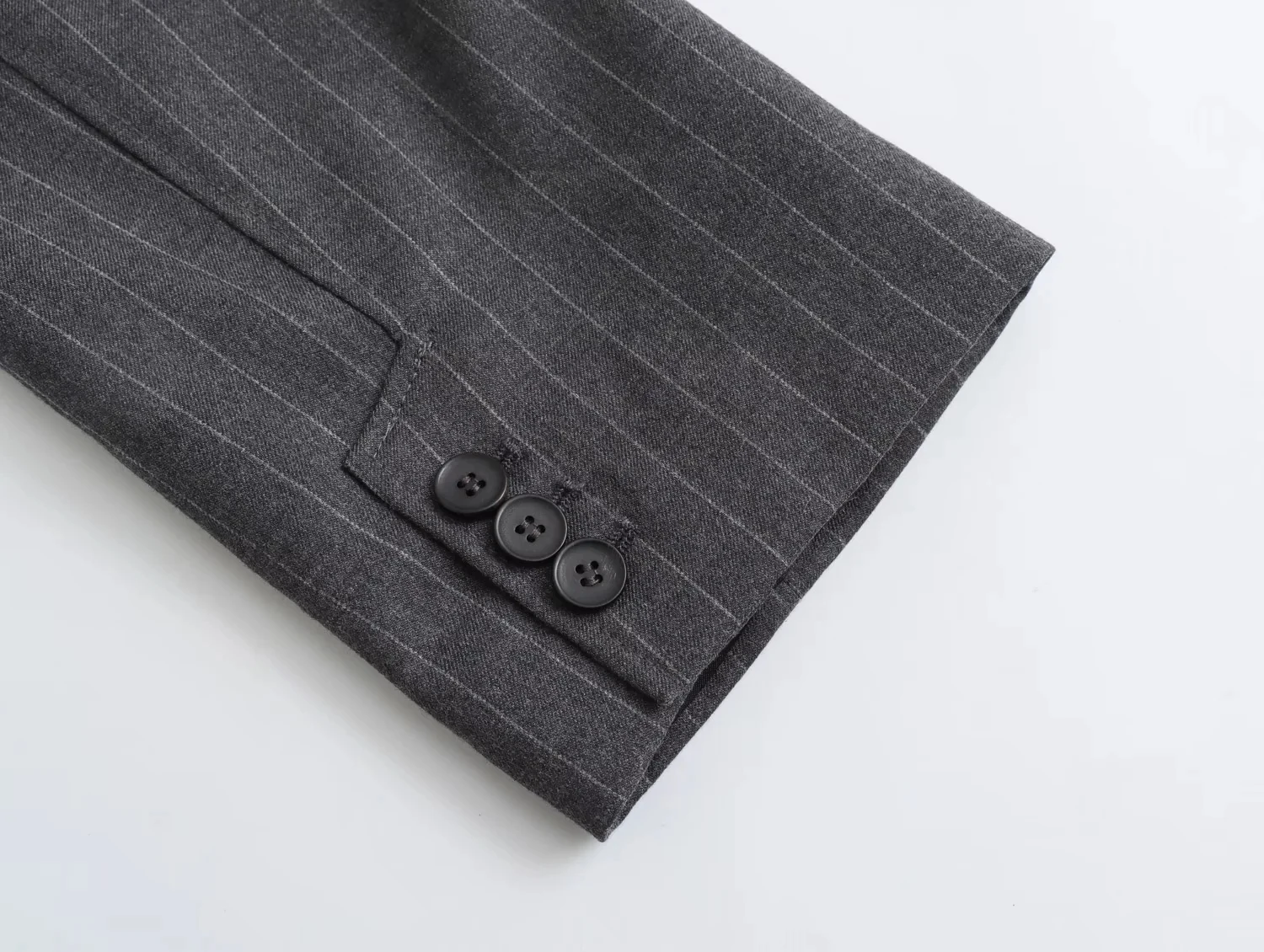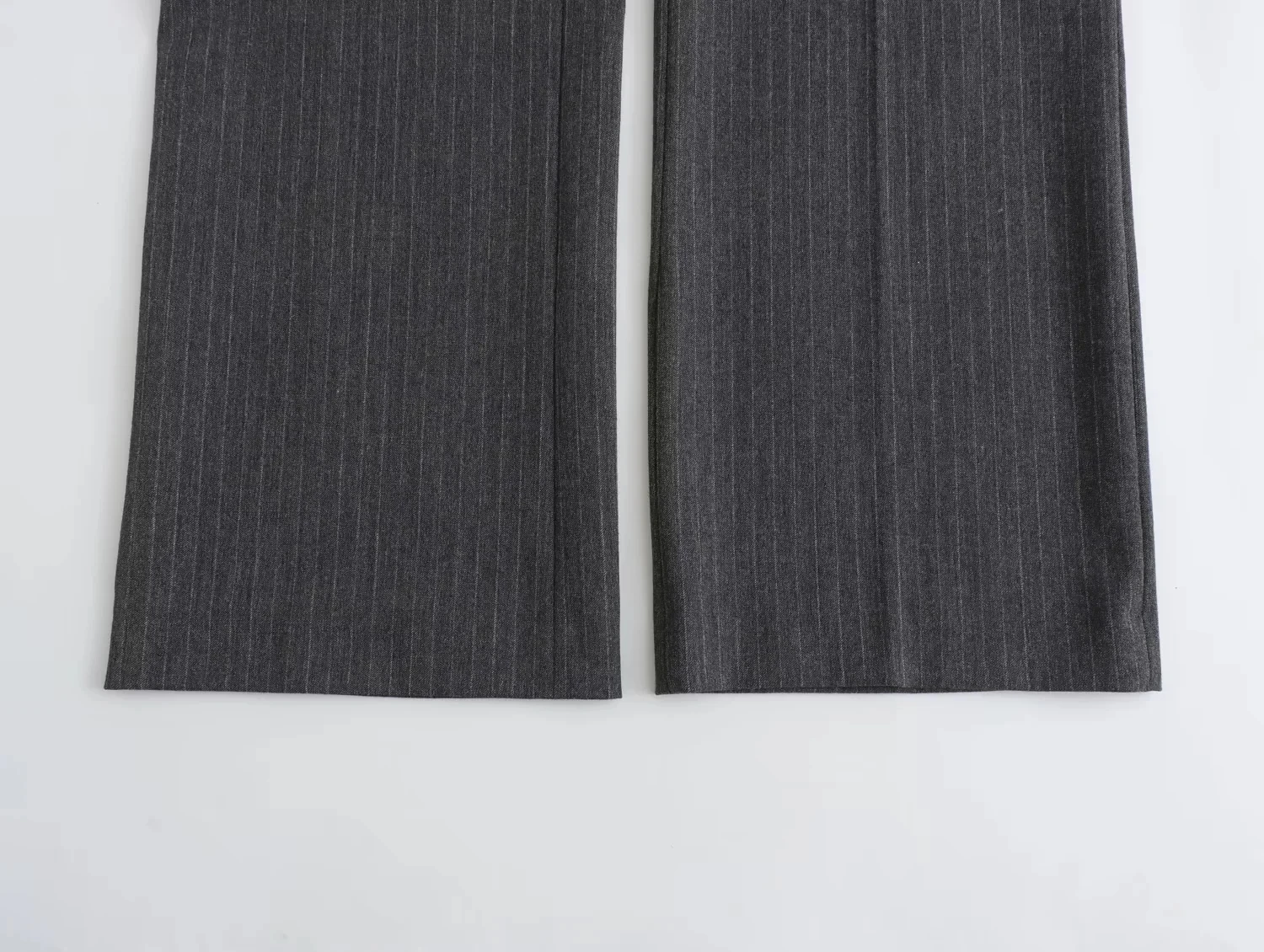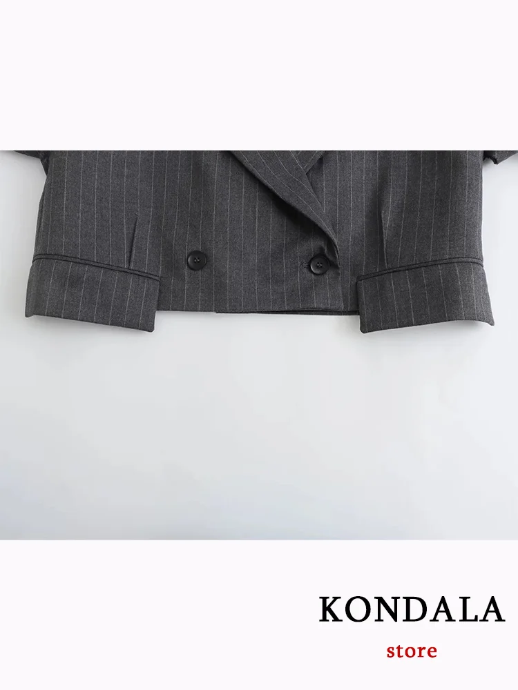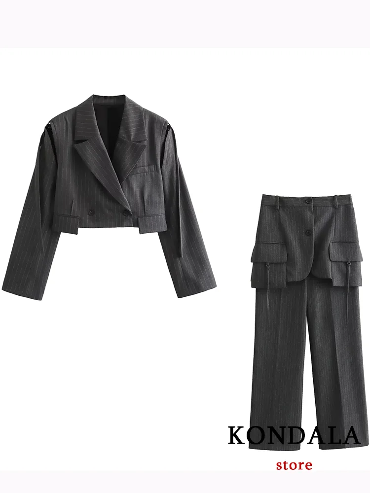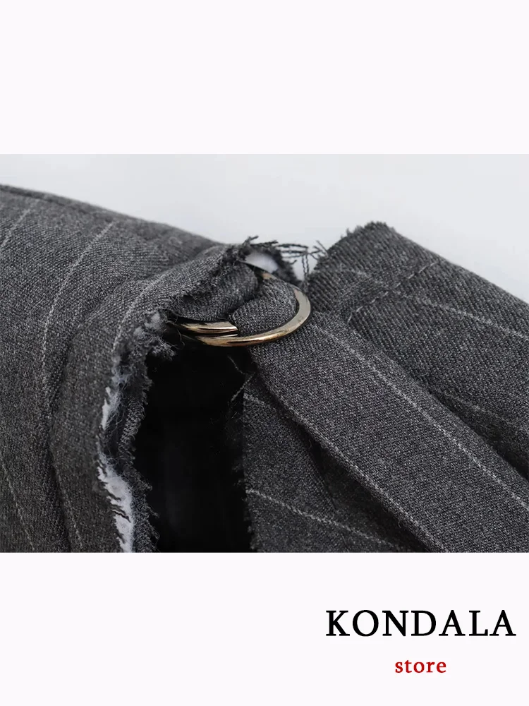 KONDALA Casual nero a righe vestito da donna con scollo a V Blazer con bottone singolo pantaloni larghi dritti moda 2023 autunno Office Lady Set