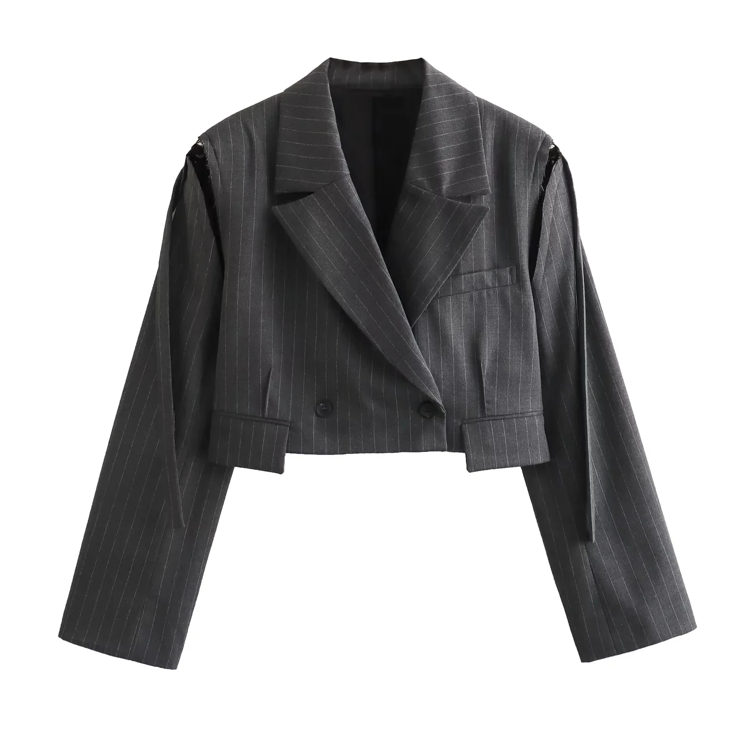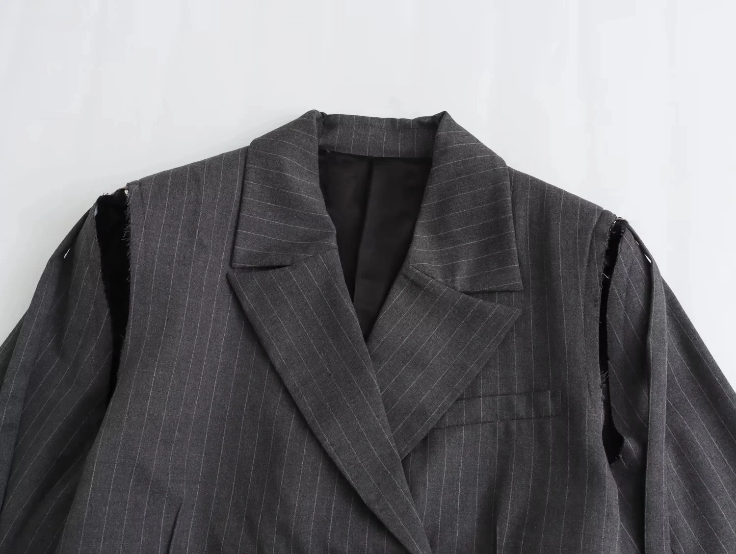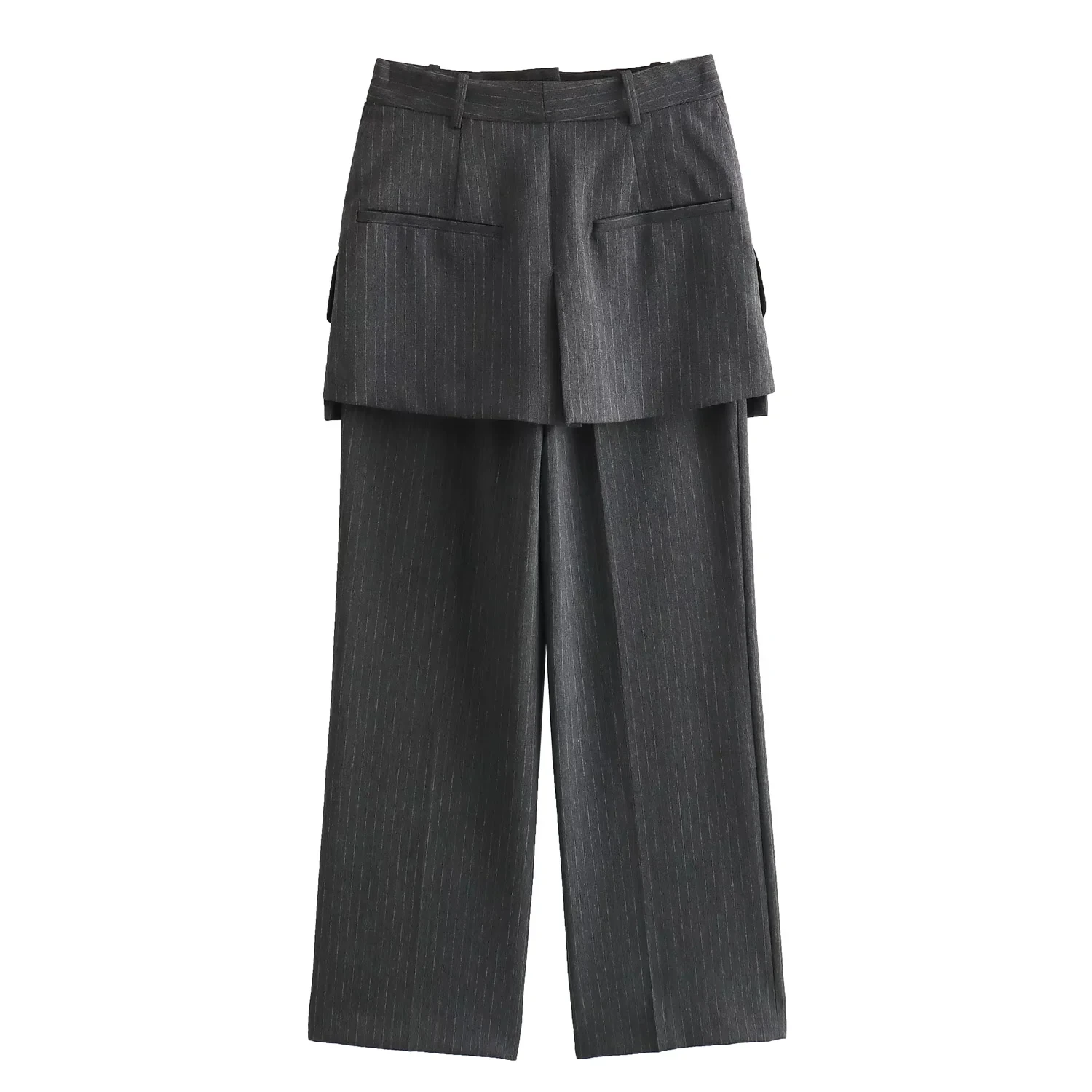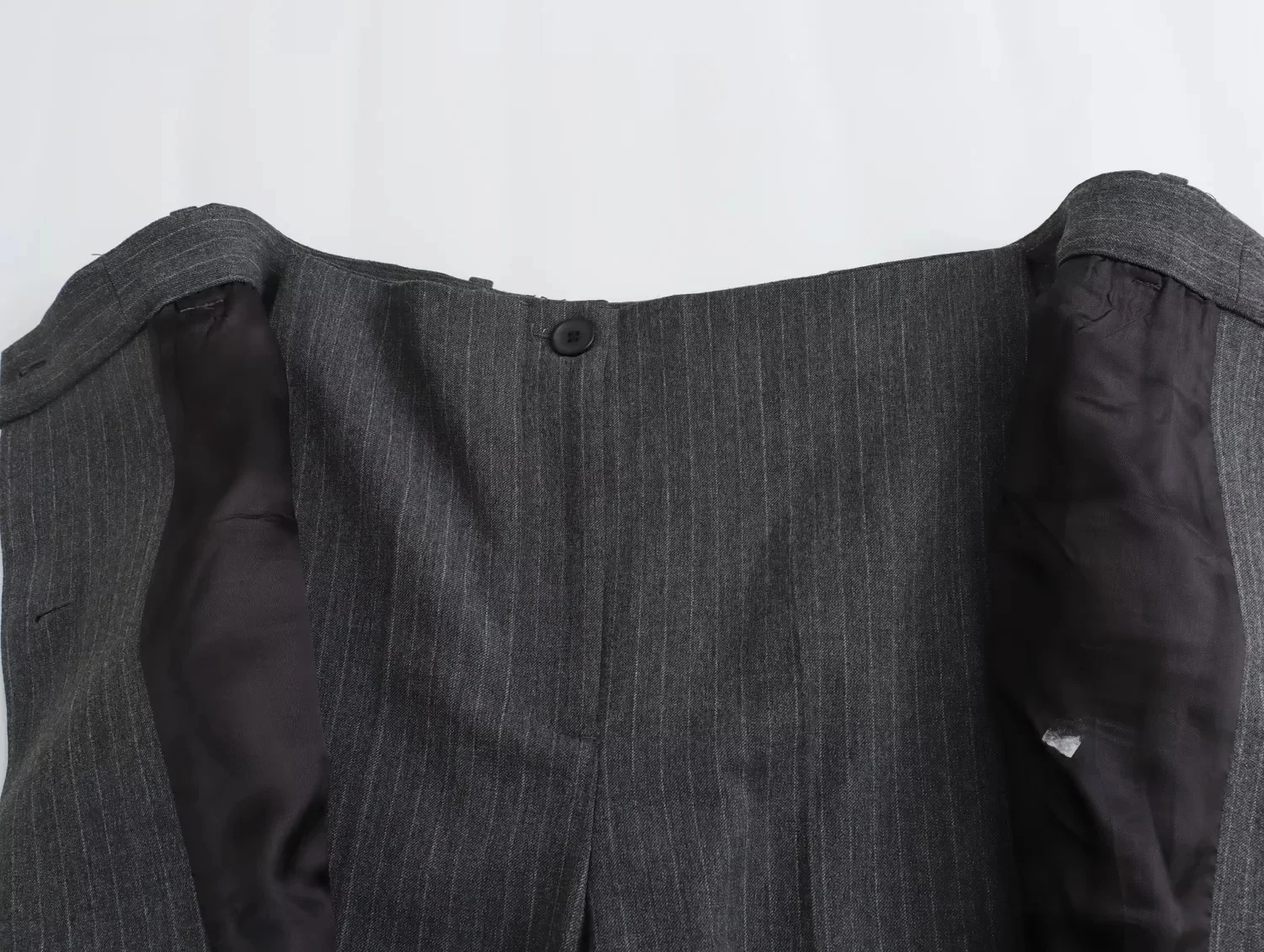 KONDALA Casual nero a righe vestito da donna con scollo a V Blazer con bottone singolo pantaloni larghi dritti moda 2023 autunno Office Lady Set