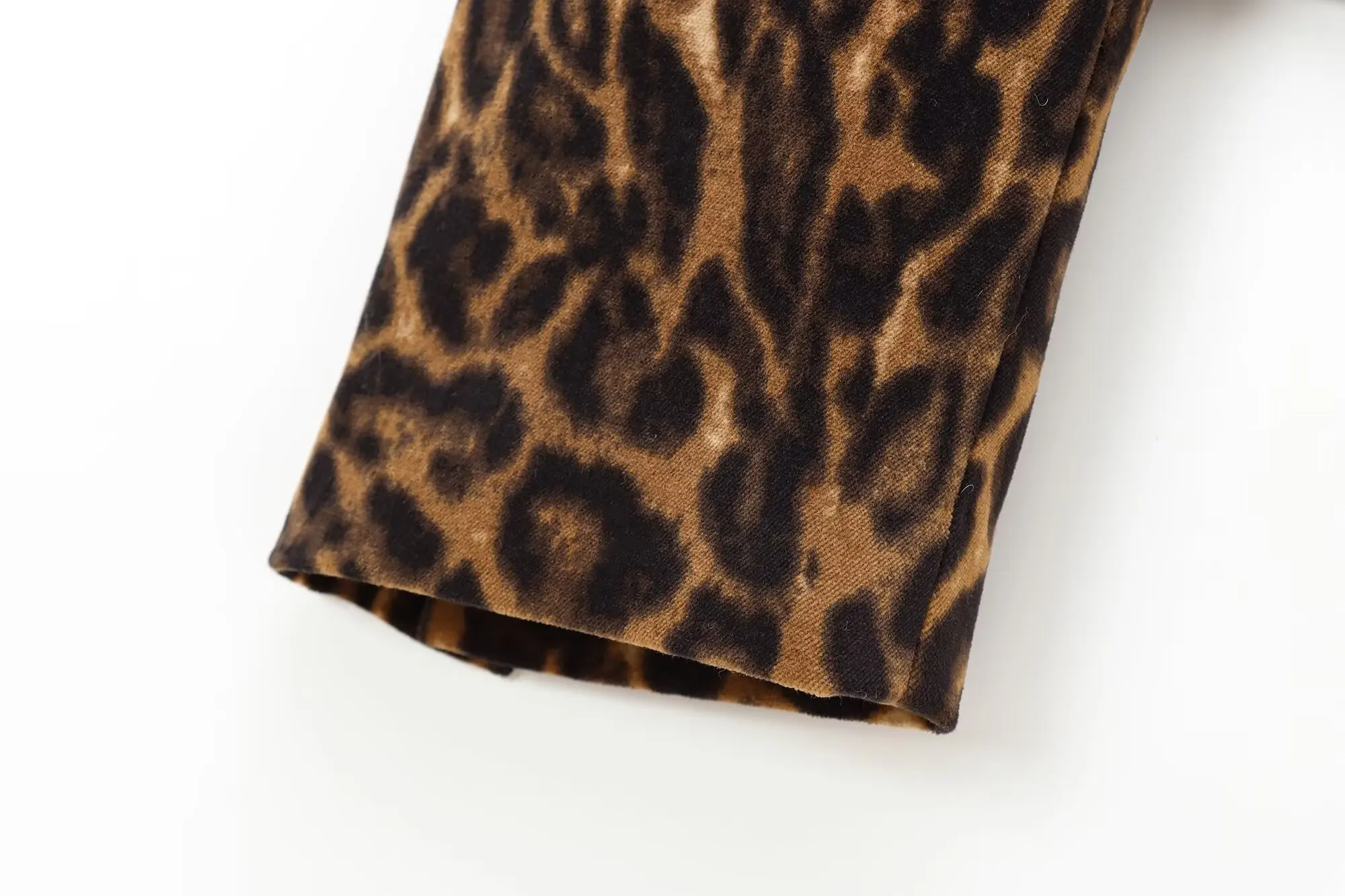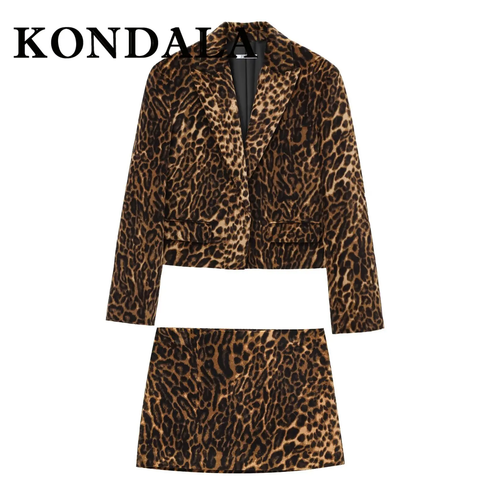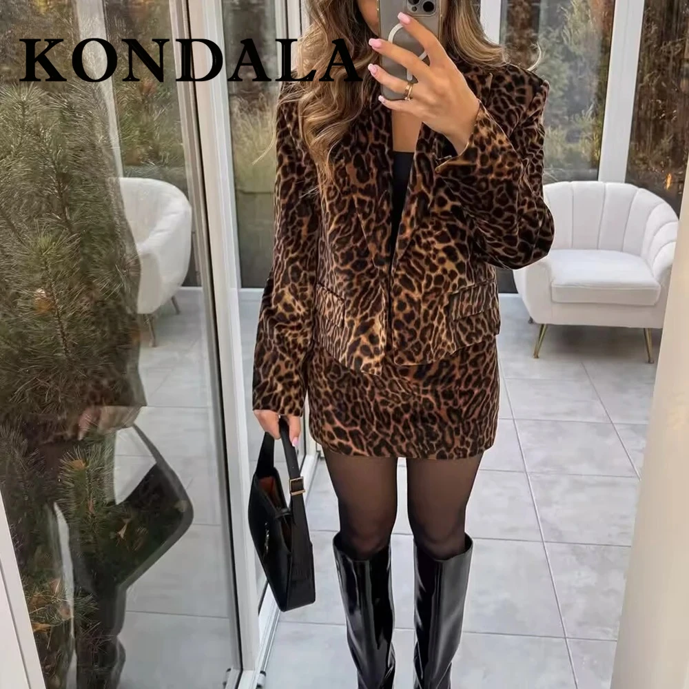 KONDALA Leopardo 2025 Autunno Stampa Animale Vintage Donna Abiti di Velluto Giacca Monopetto + Mini Gonna Tubino Moda Abiti Sexy