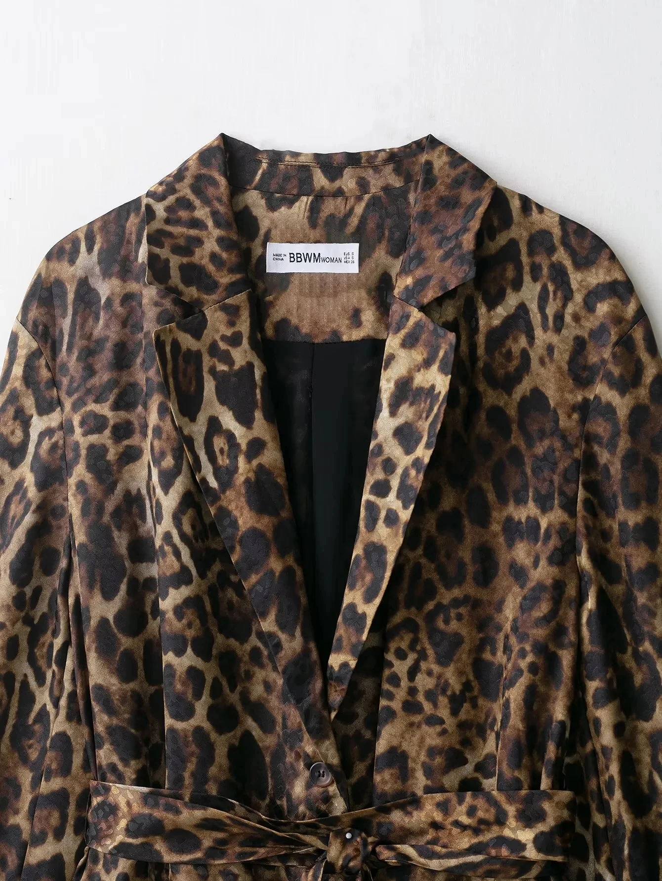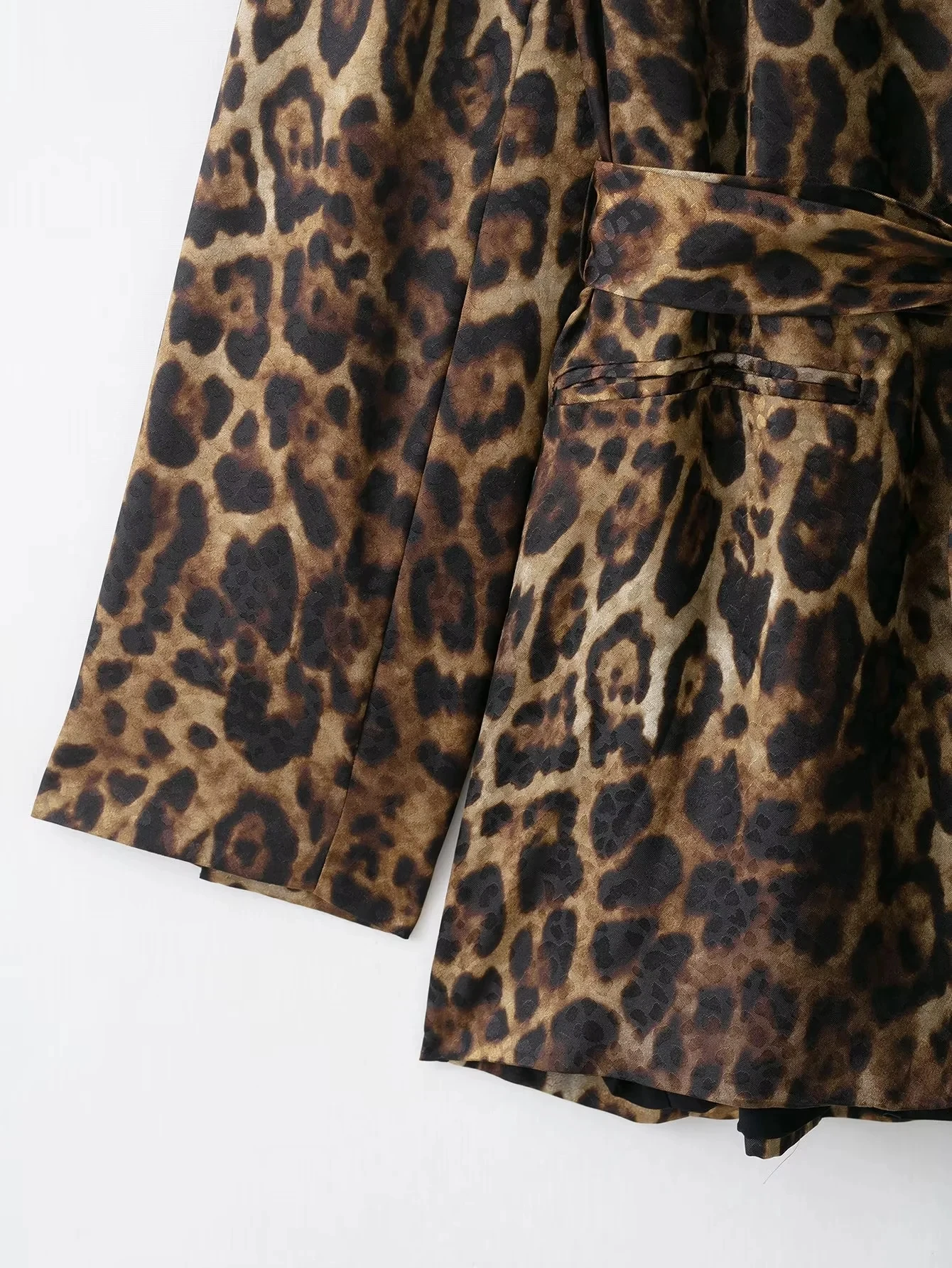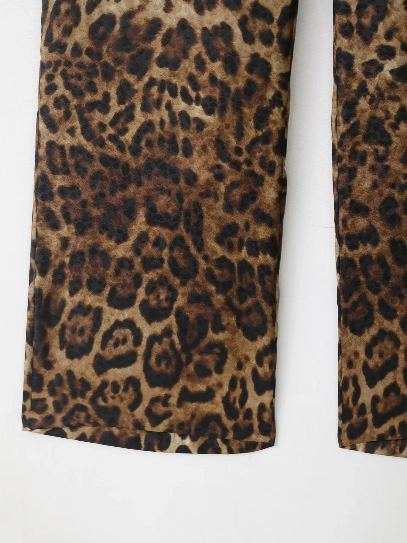Recensisci per primo “KONDALA Vintage Leopard Print Abiti da donna Scollo a V Telai Manica lunga Giacca oversize + Pantaloni a gamba larga Moda 2025 Abiti autunnali”
