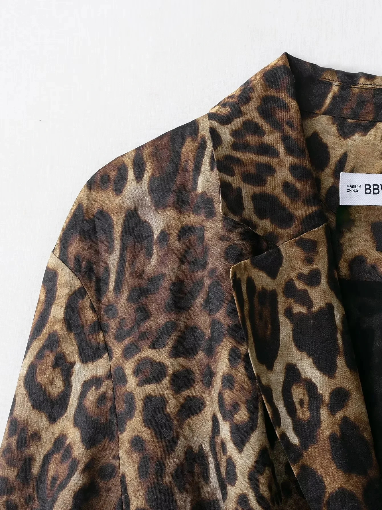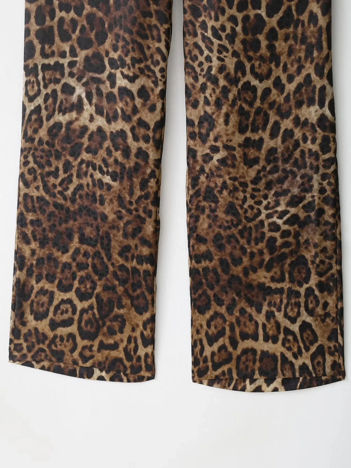 KONDALA Vintage Leopard Print Abiti da donna Scollo a V Telai Manica lunga Giacca oversize + Pantaloni a gamba larga Moda 2025 Abiti autunnali