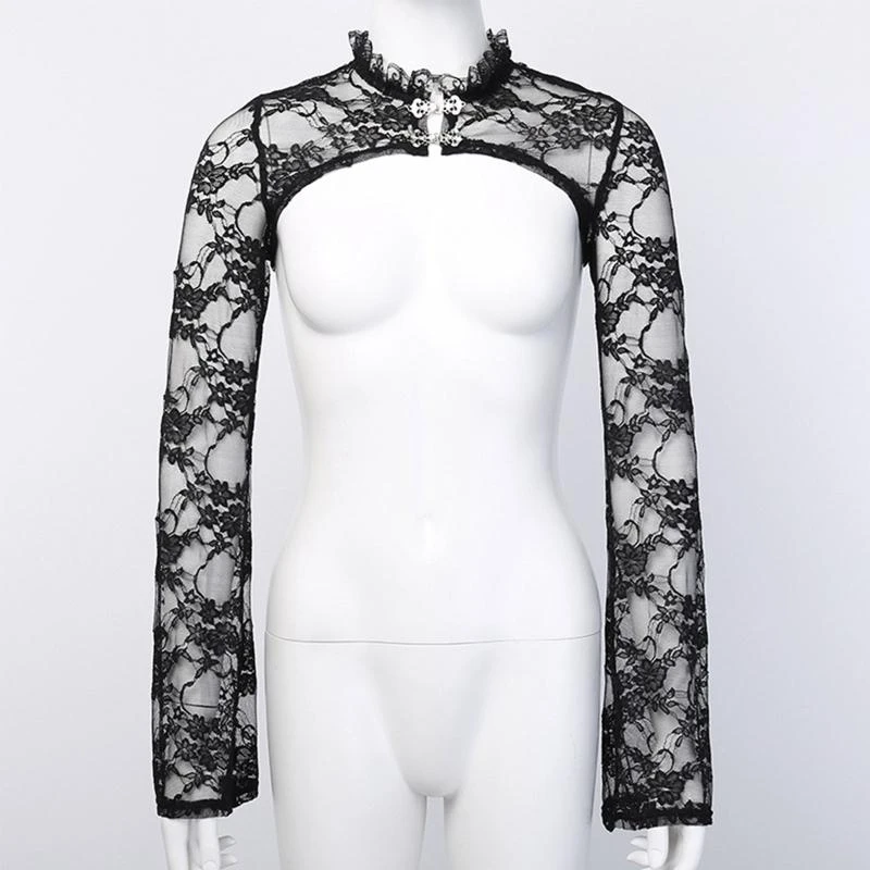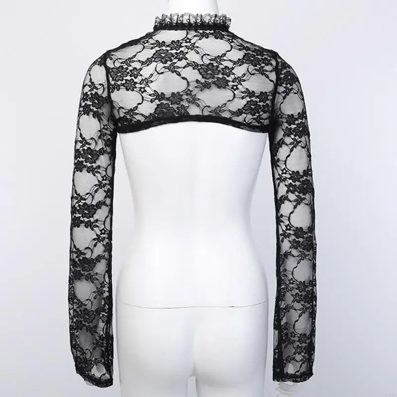 L93f Women Women Fleeve Vintage Long Slee Bolero Stand Collar Floral Lace Grolla