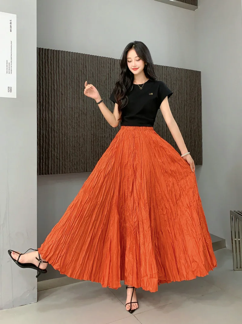 1 recensione per LANMREM Grandi Gonne Altalena Per Le Donne A Vita Alta di Colore Solido Orlo Irregolare di Lusso Vestiti Del Partito 2025 Estate Autunno Nuovo 2DA7085