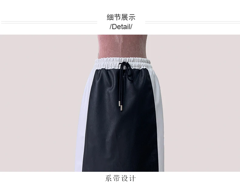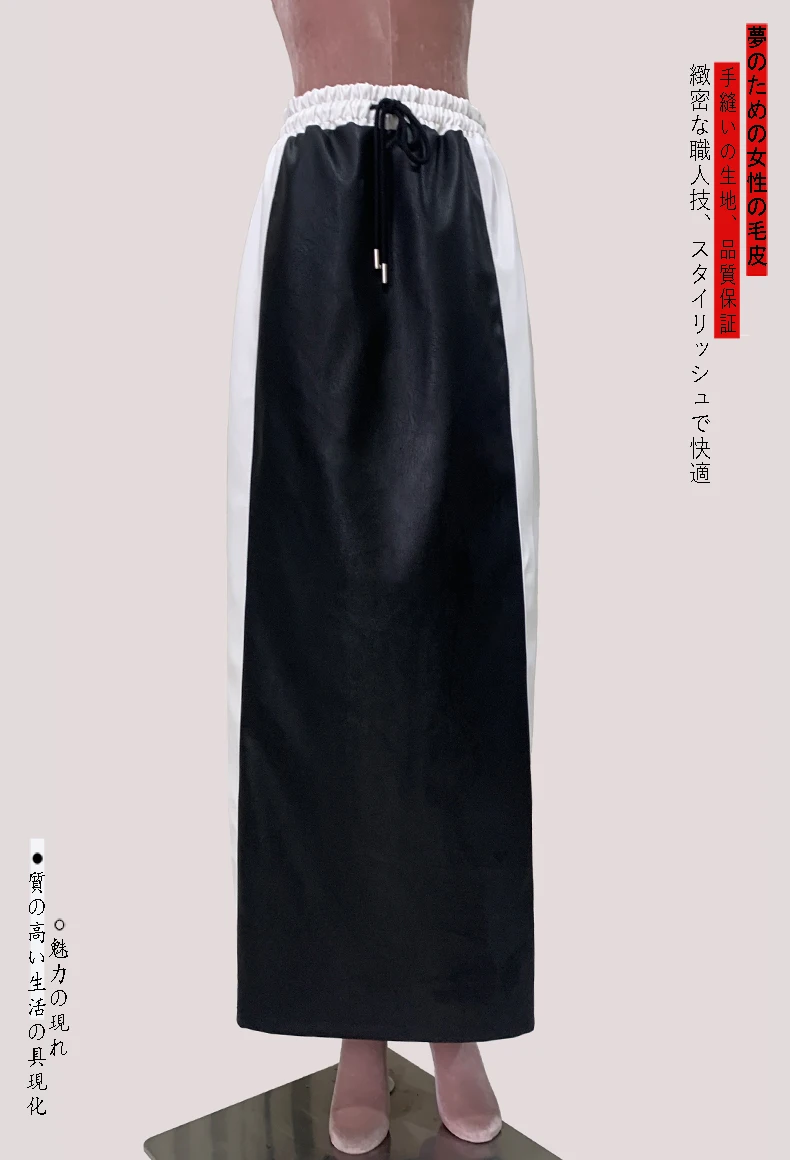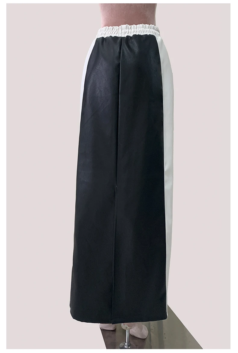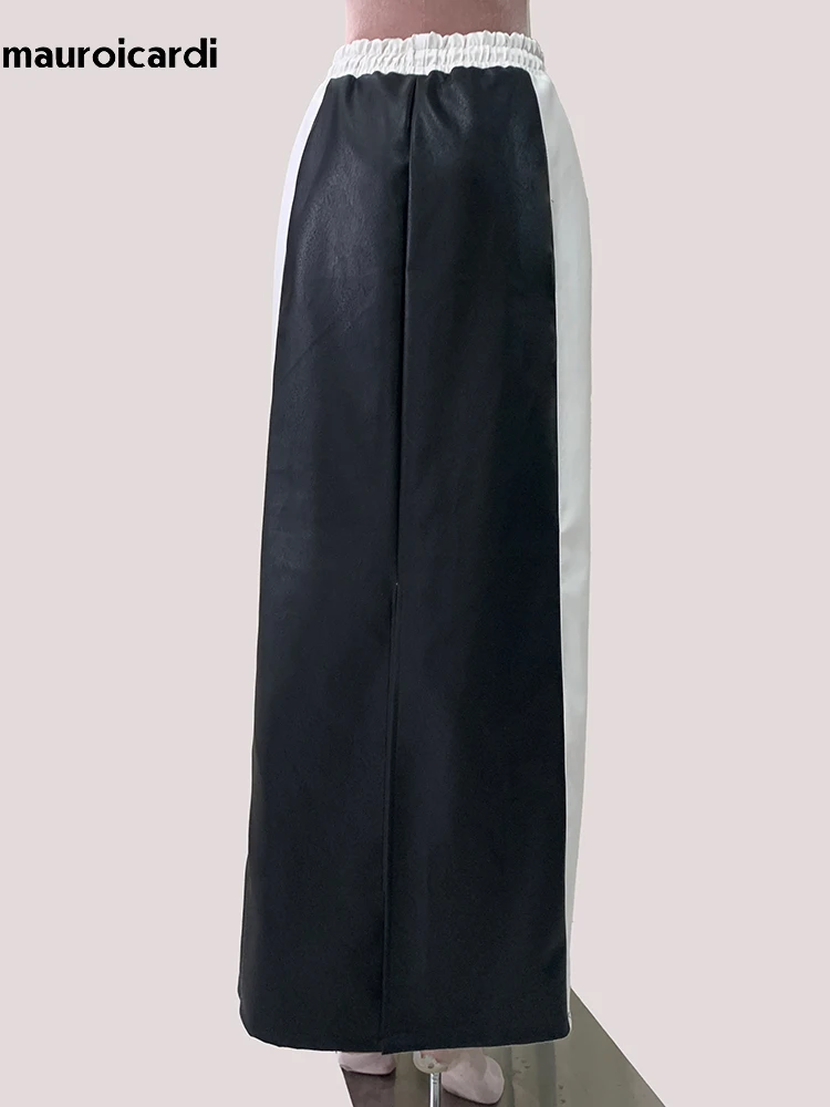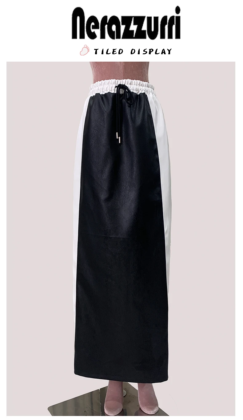 Recensisci per primo “Lautaro Autunno Inverno Bianco e nero Patchwork Pu Pelle Gonna lunga fino al pavimento Donna con coulisse Abiti in vita elastica 2025” Annulla risposta