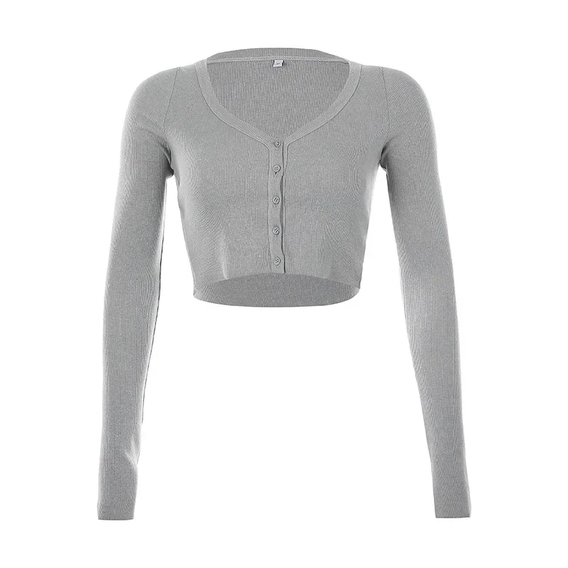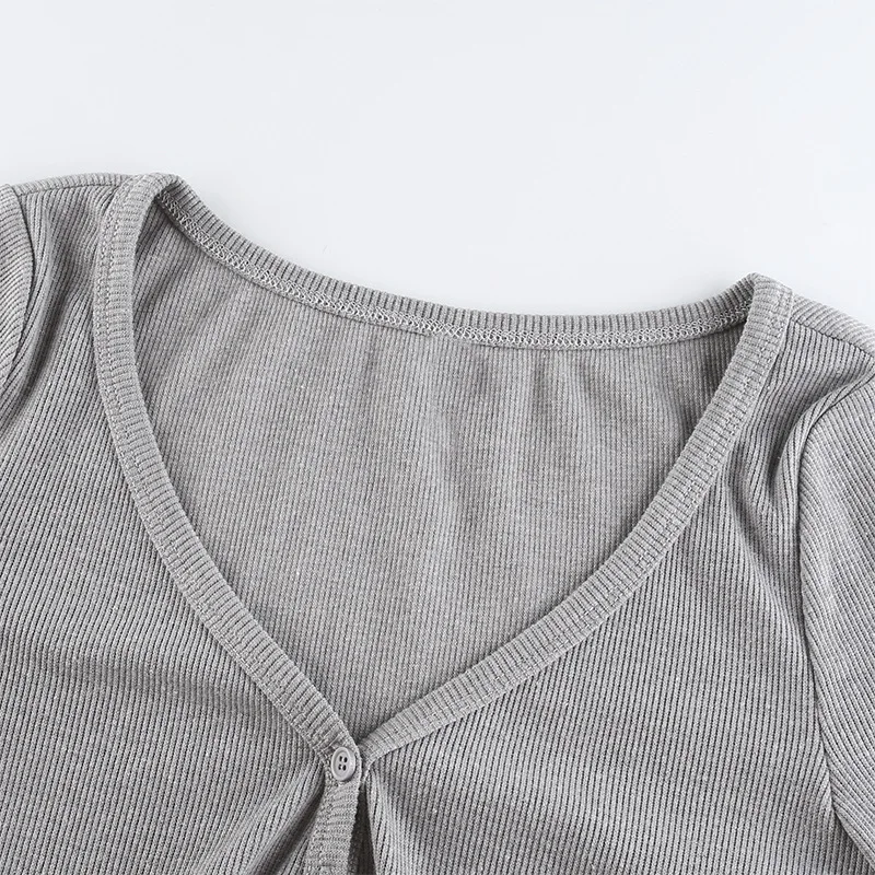 Recensisci per primo “Maglietta lavorata a maglia nera con scollo a v manica lunga Crop Top donna Y2k vestiti primavera autunno Streetwear bottone Sexy maglietta corta donna 2024” Annulla risposta