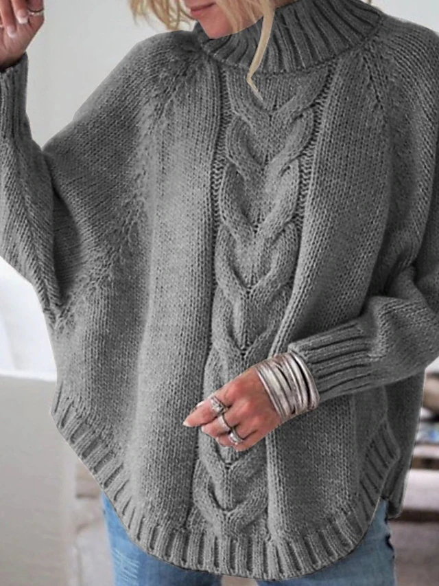 Maglione cavo di ispirazione vintage da donna, vestibilità ampia, collo alto, pullover autunno inverno, stile casual, per tutti i giorni, autunno inverno