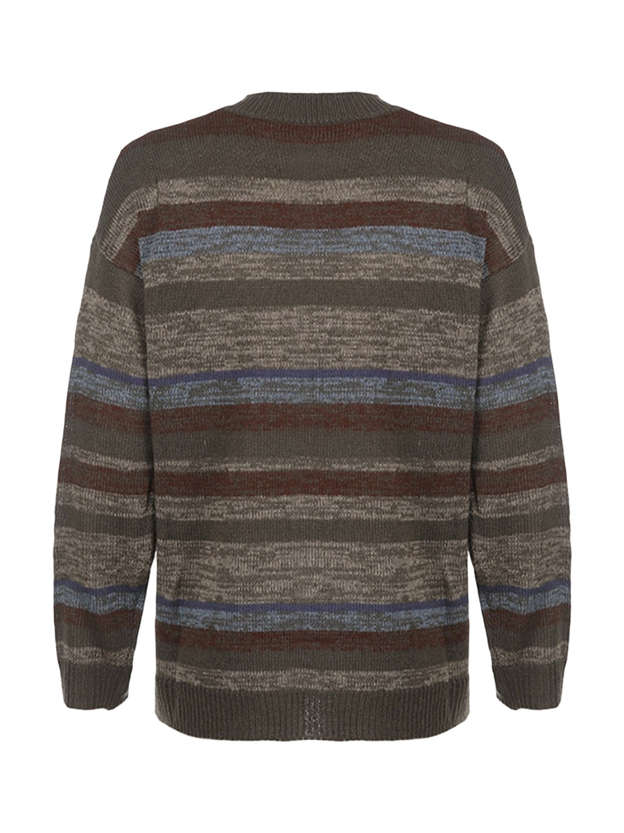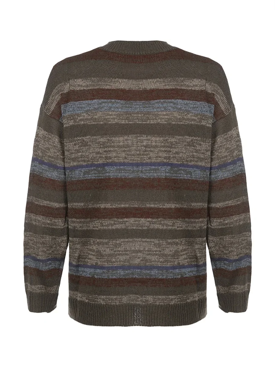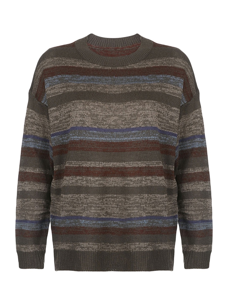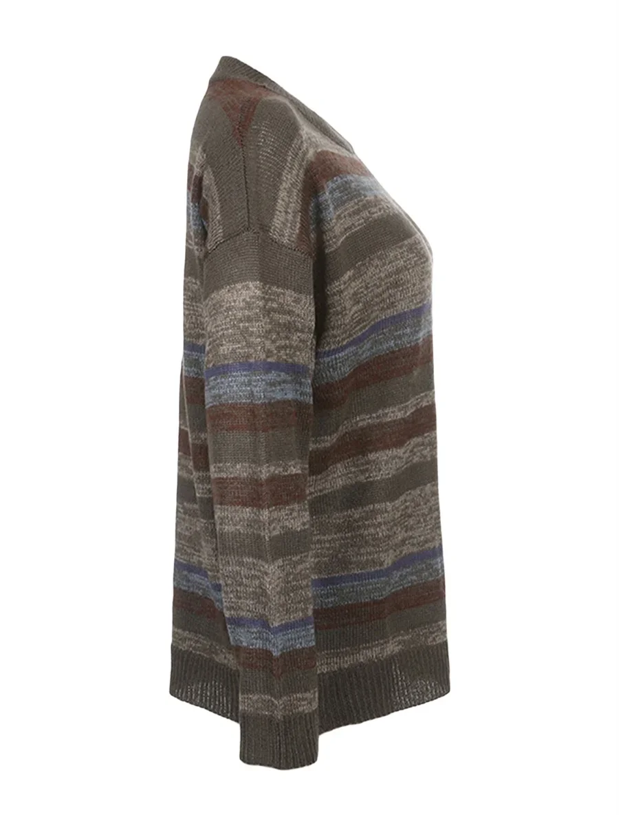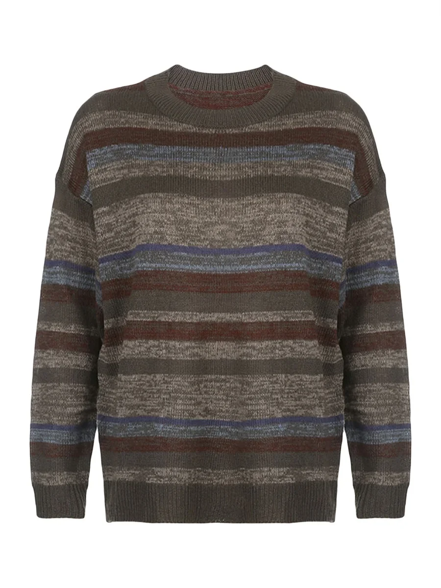 Maglione da donna, Pullover lavorato a maglia a righe girocollo Vintage a maniche lunghe per Casual quotidiano