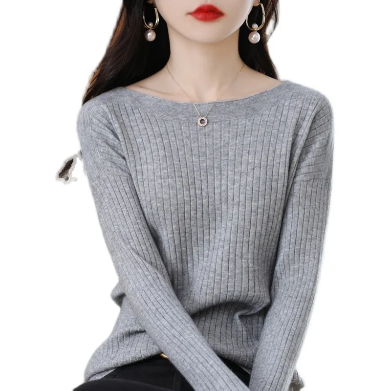 Maglione da donna Autunno Inverno Camicie Bottiming calde Moda coreana Slash Neck Pullover a maniche lunghe Slim Fit Maglieria calda casual