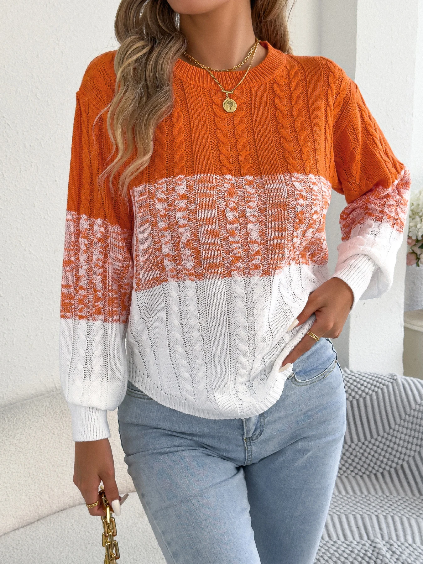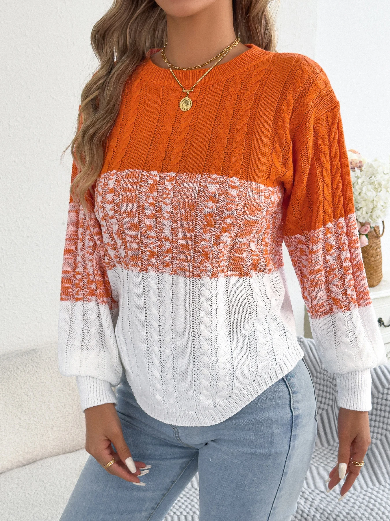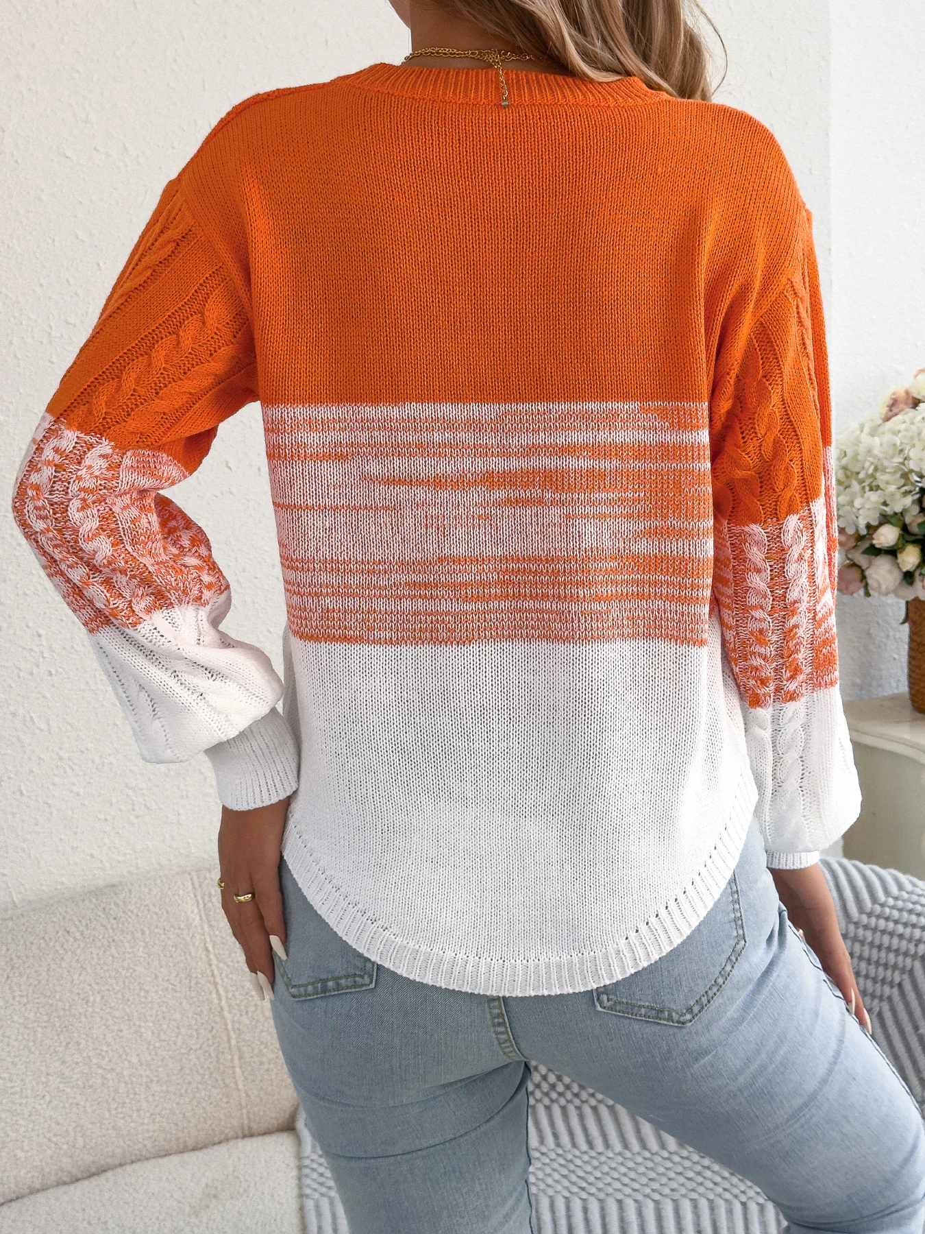 Maglione da donna casual a righe a blocchi di colore girocollo lanterna manica lunga twist top in maglia per abiti da donna autunno inverno 2025