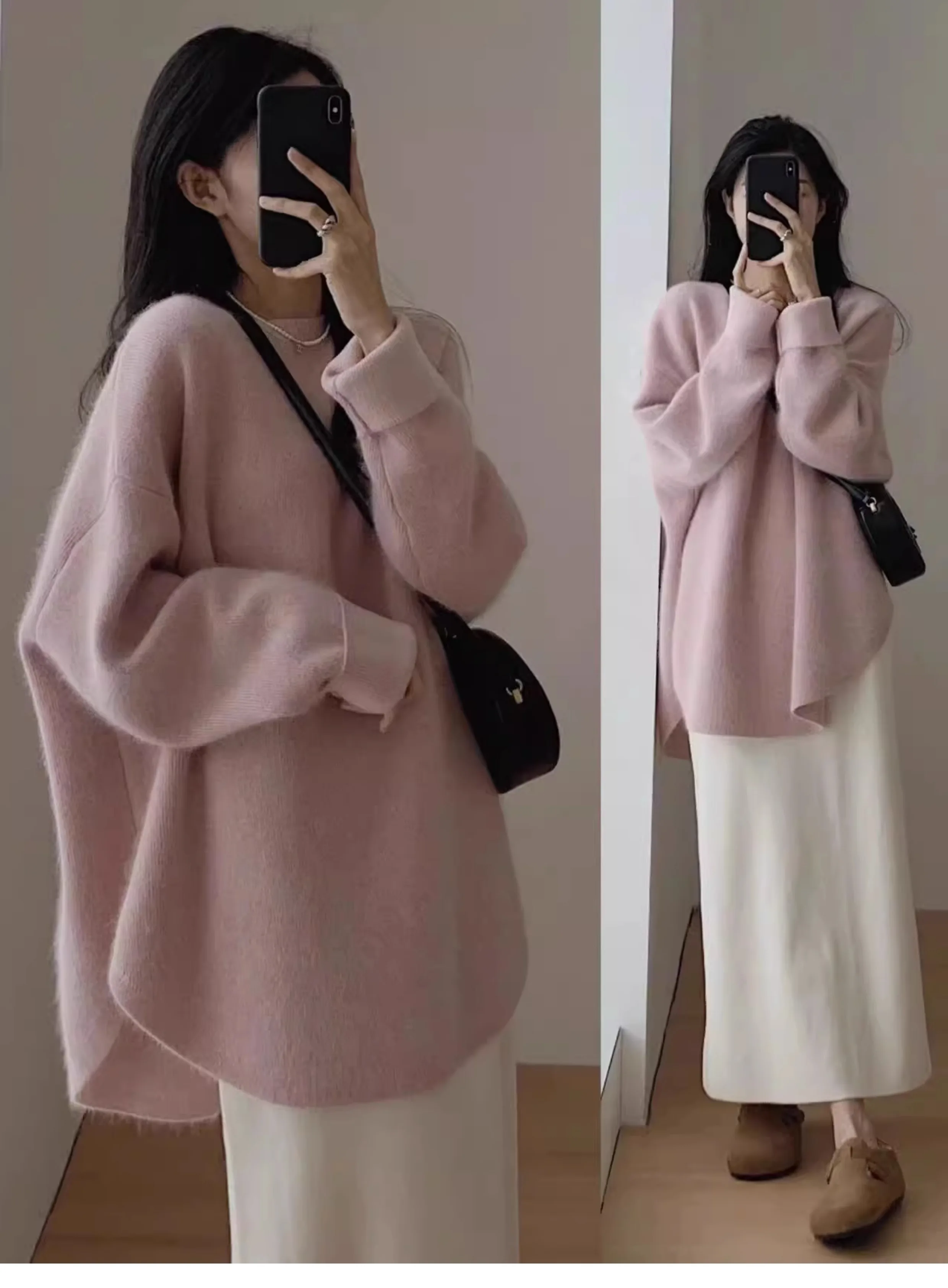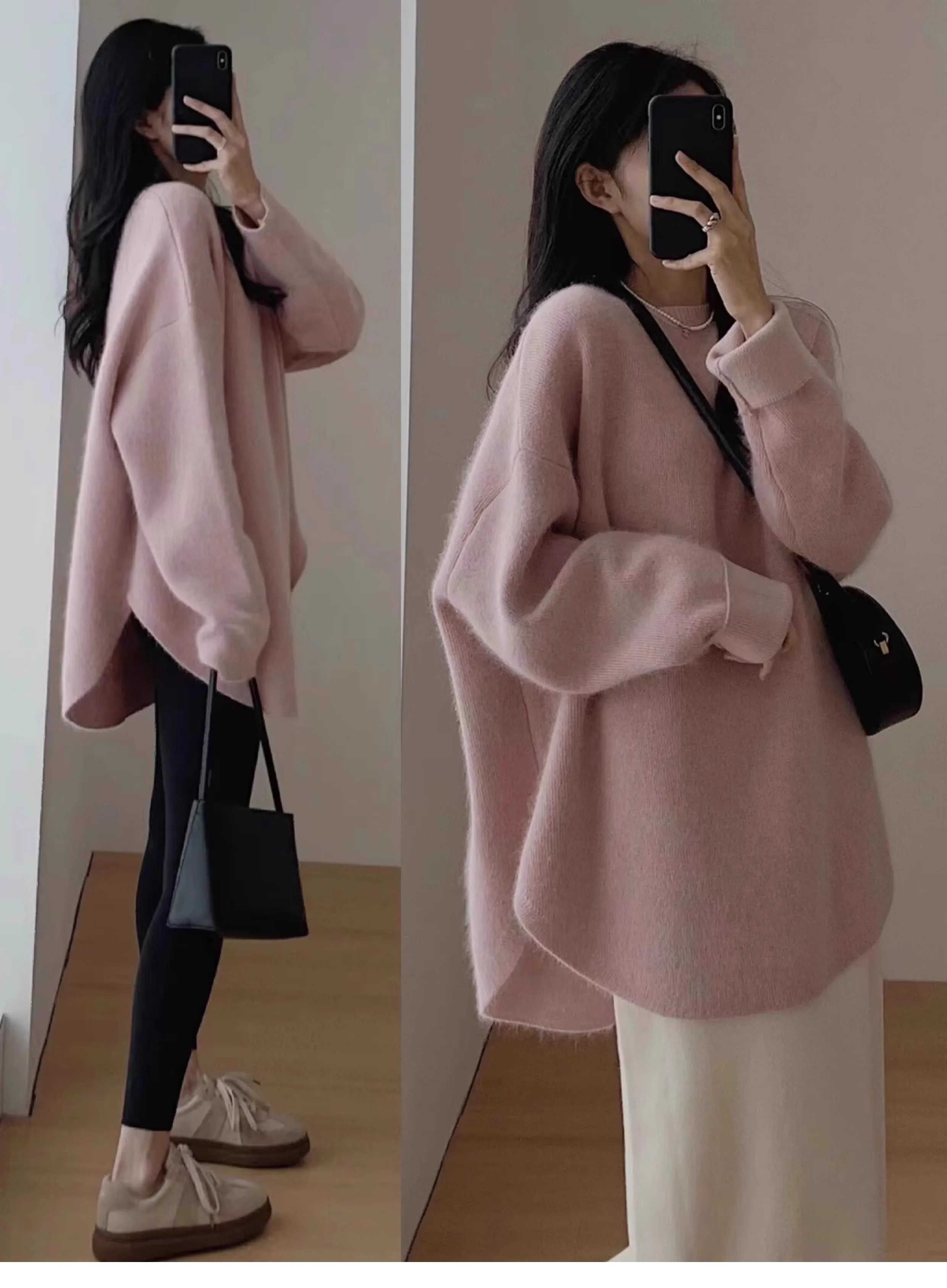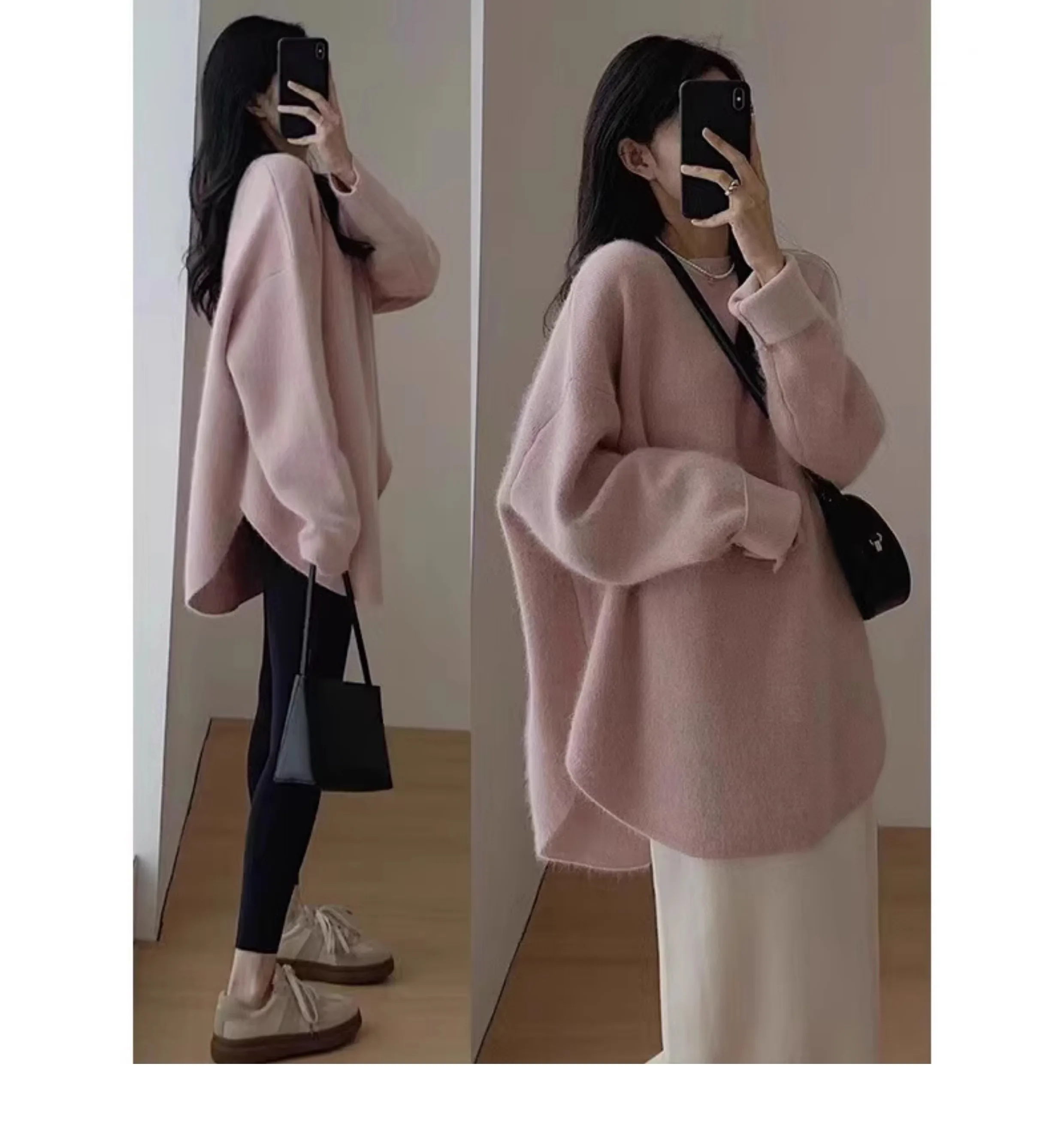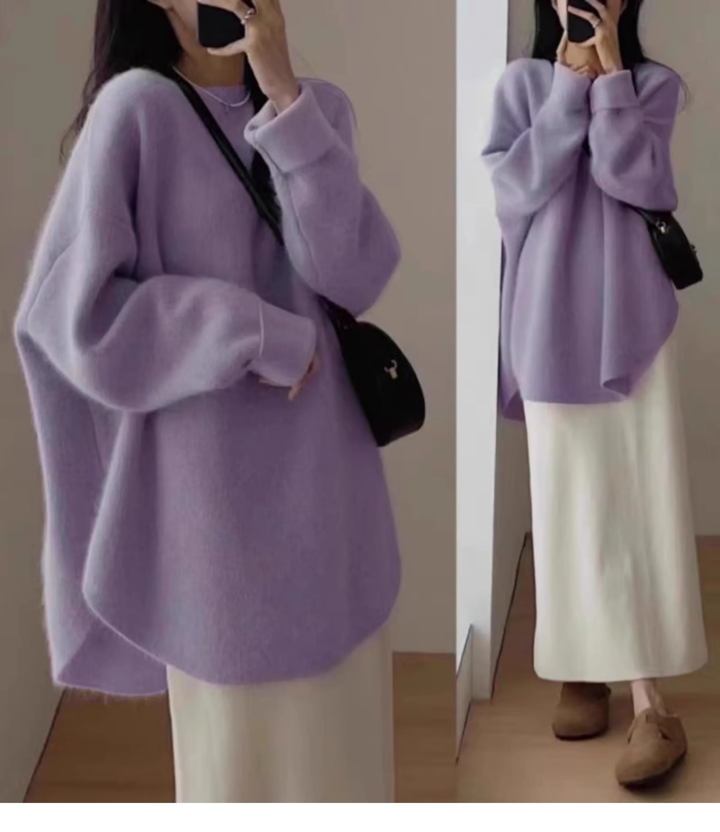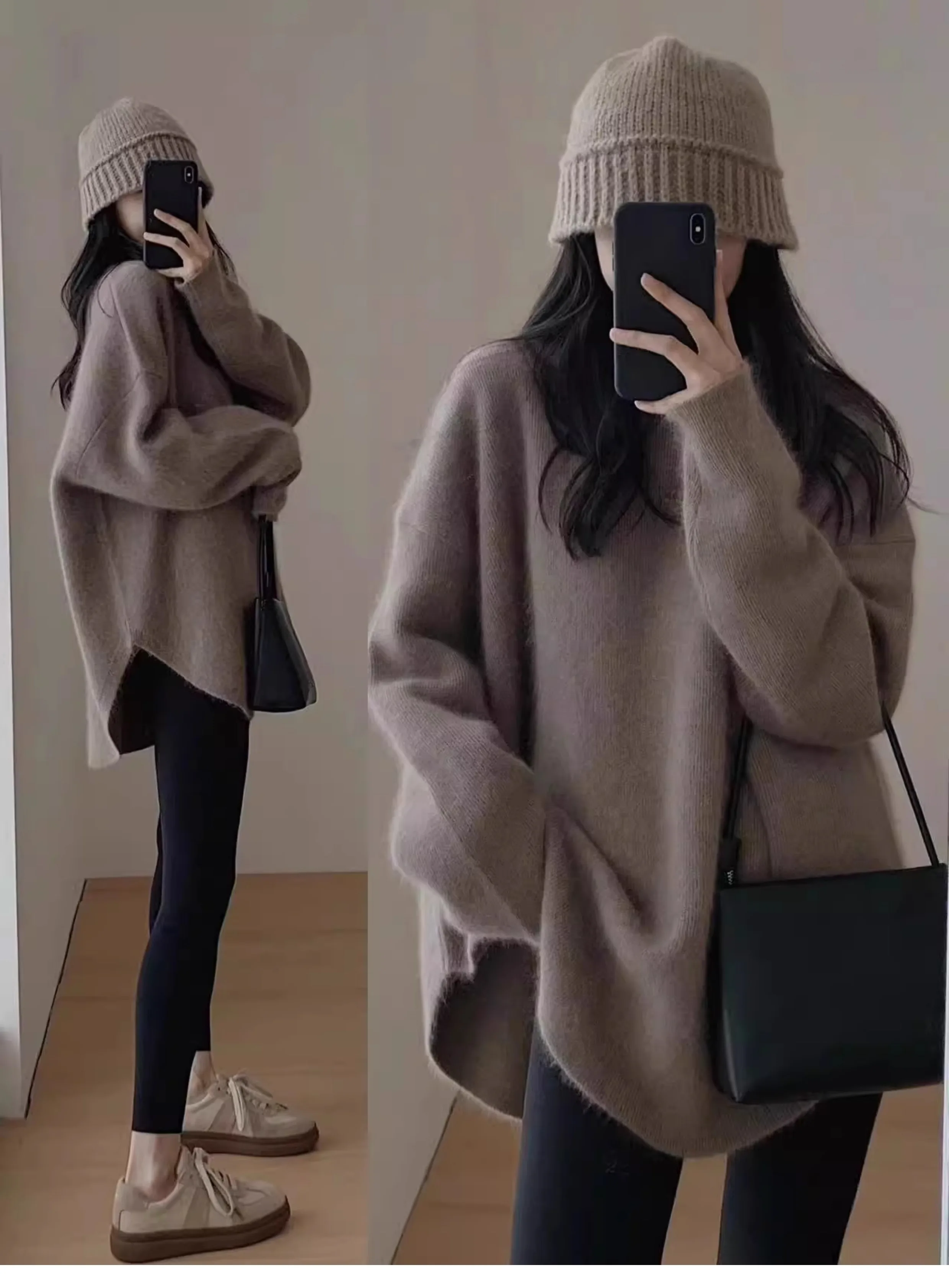 3 recensioni per Maglione da donna in puro cashmere 100% girocollo di fascia alta autunno e inverno maglione a vento pigro spesso sciolto taglie forti