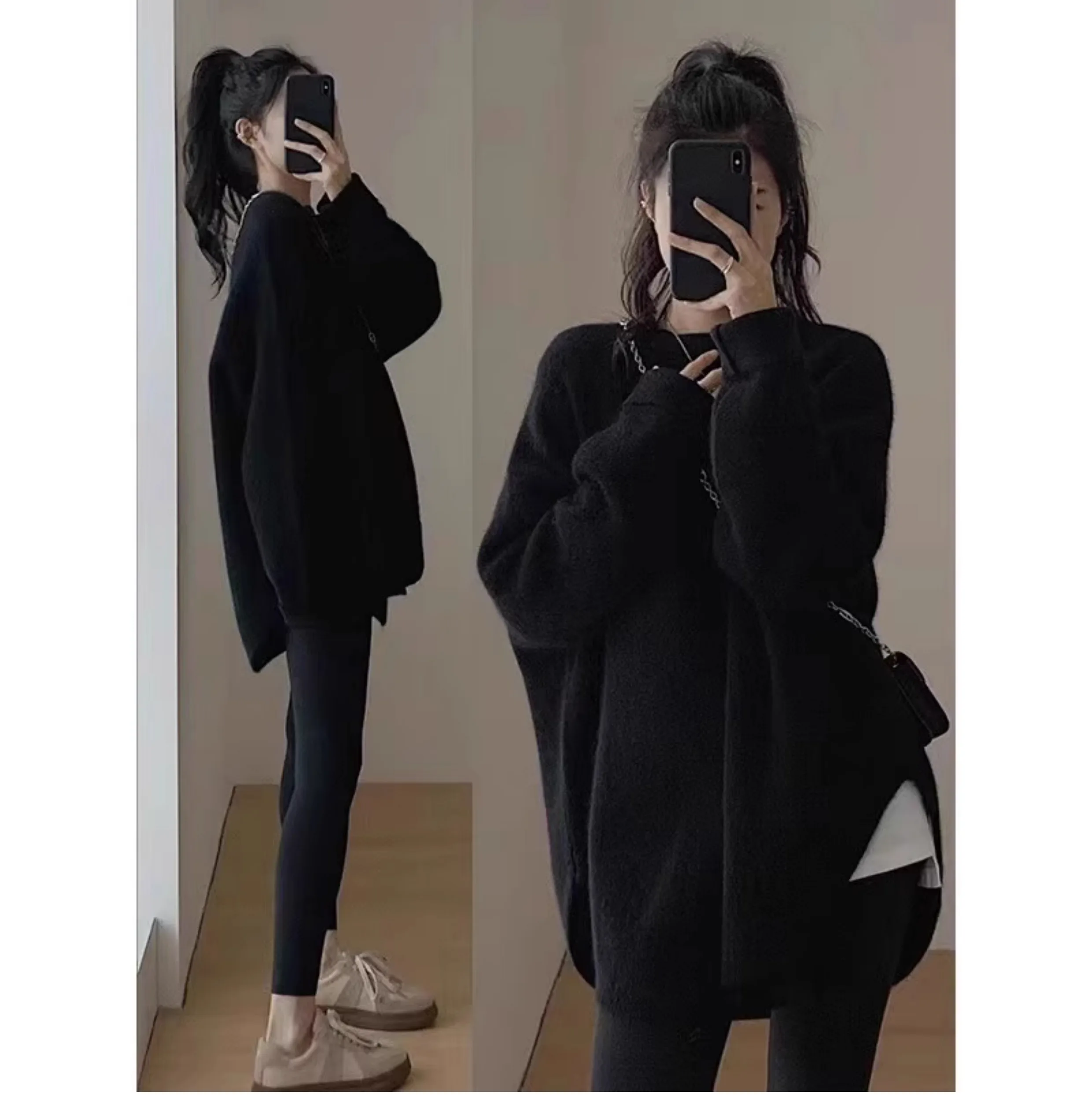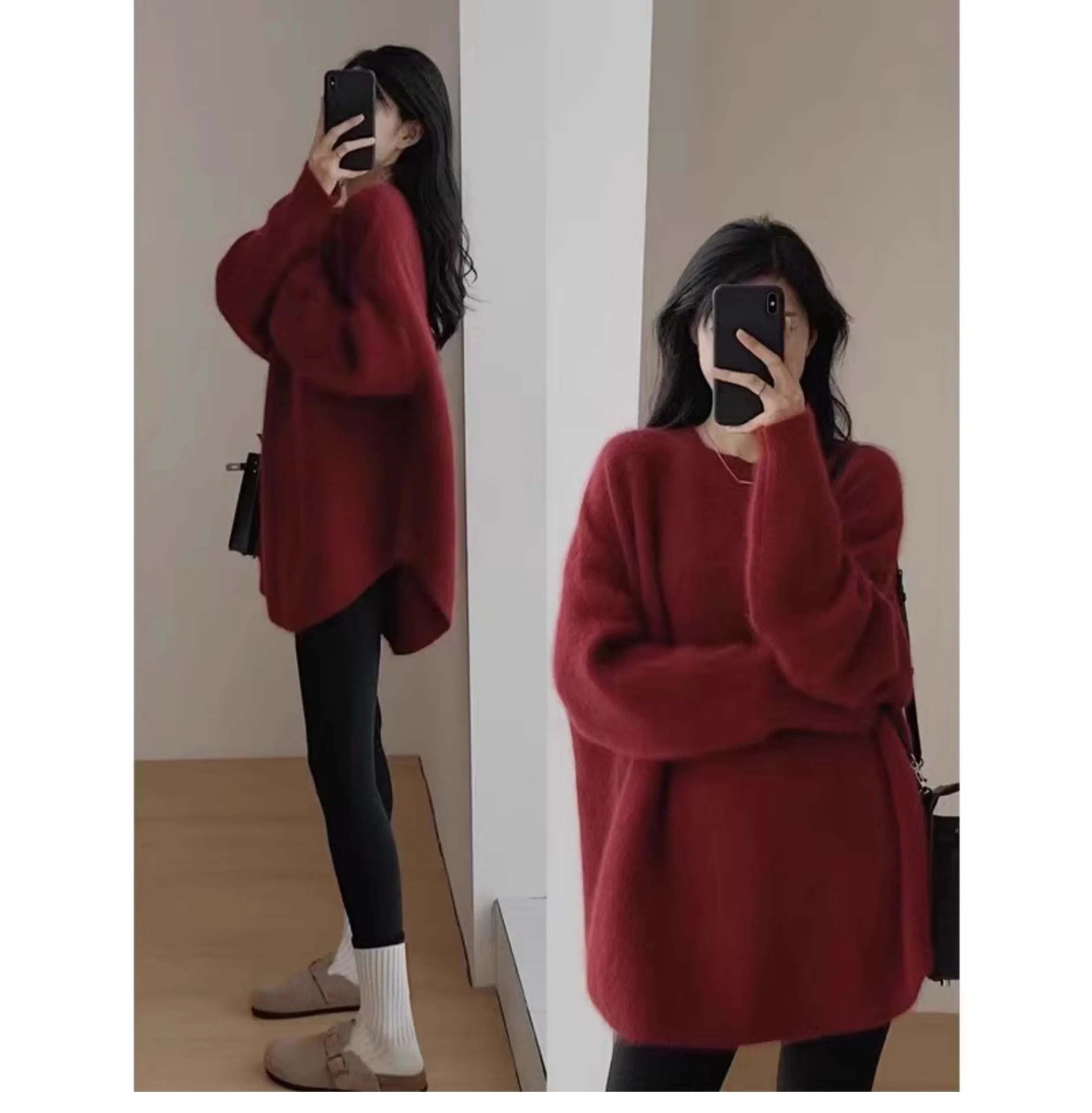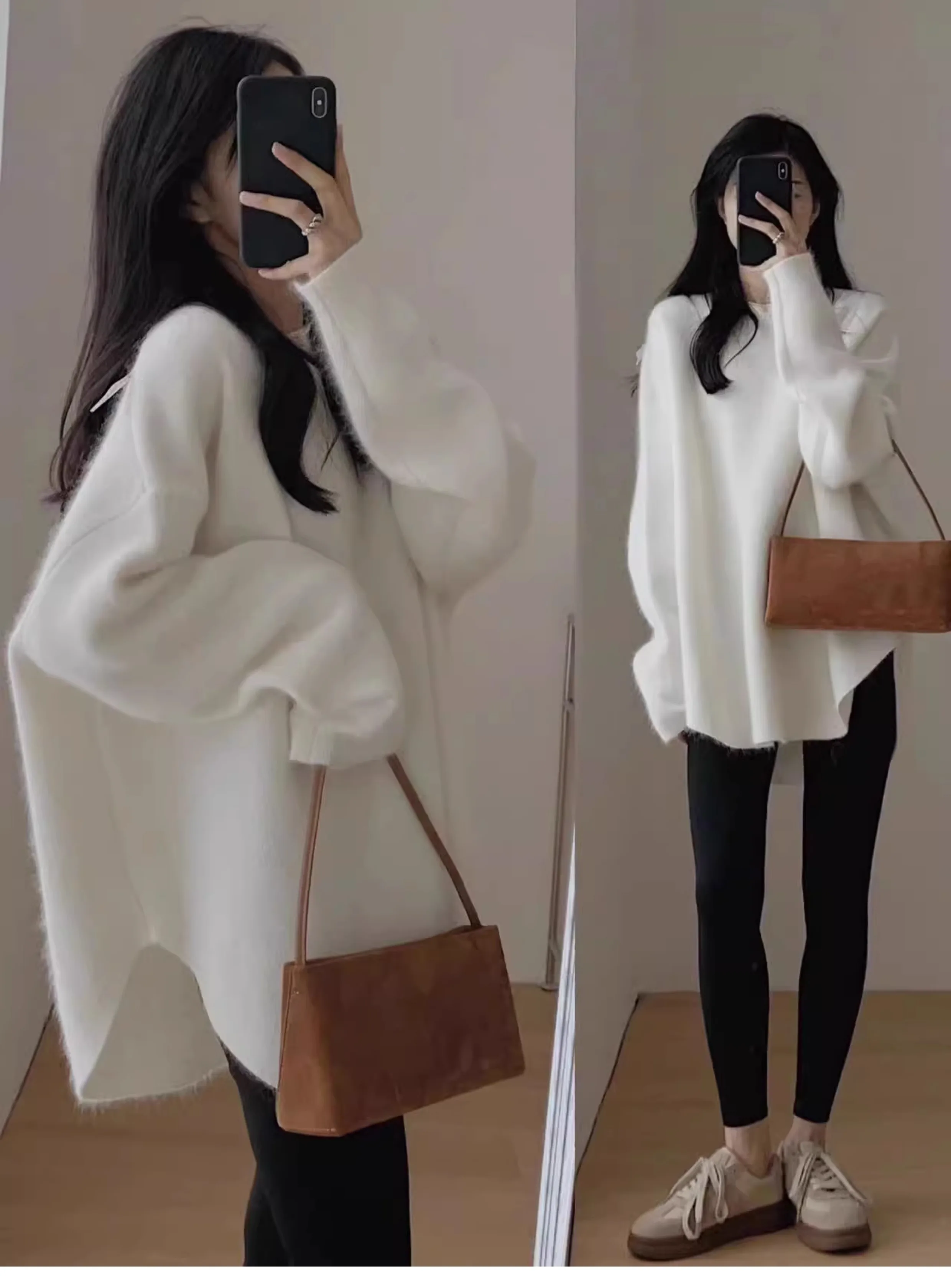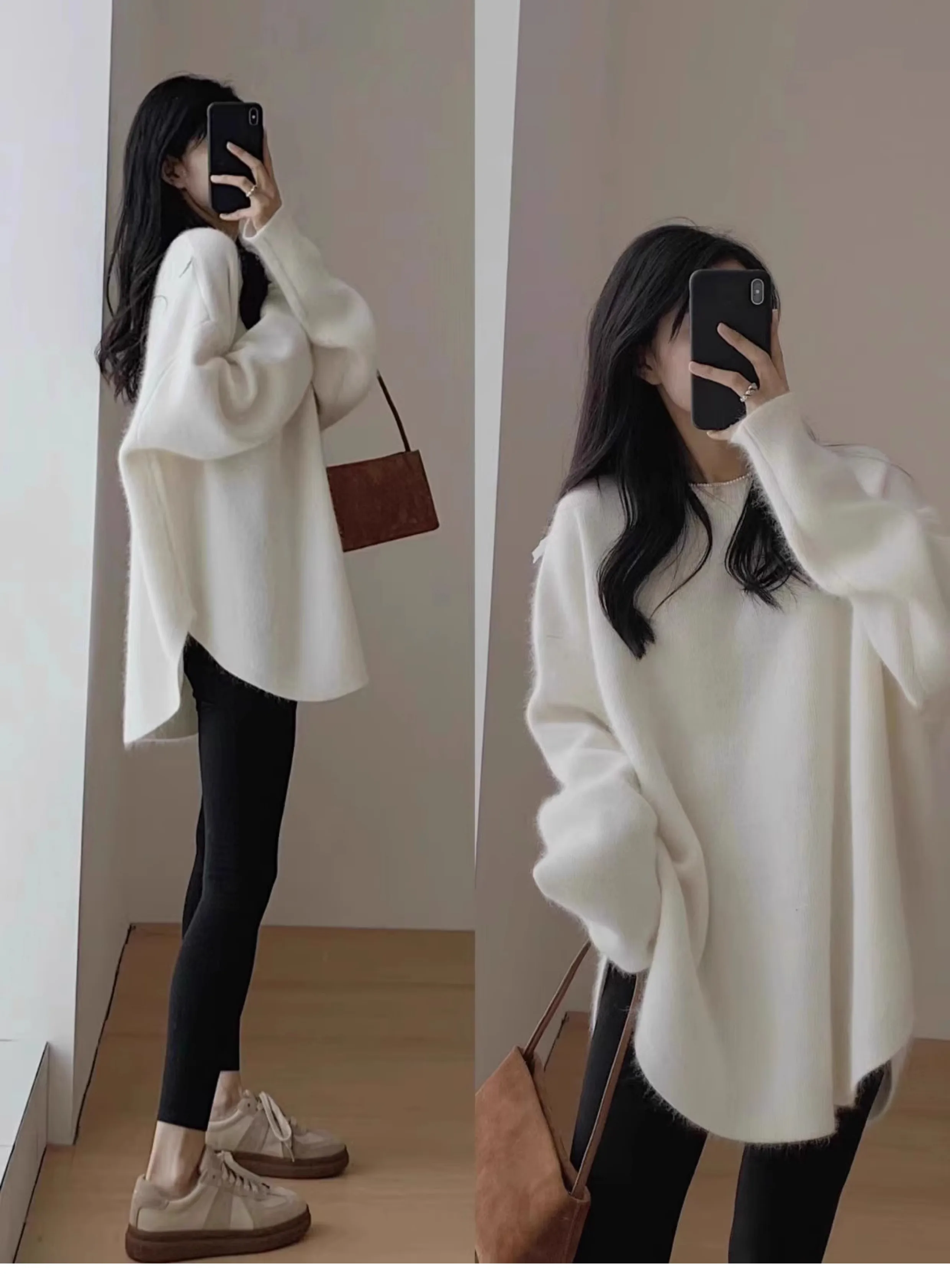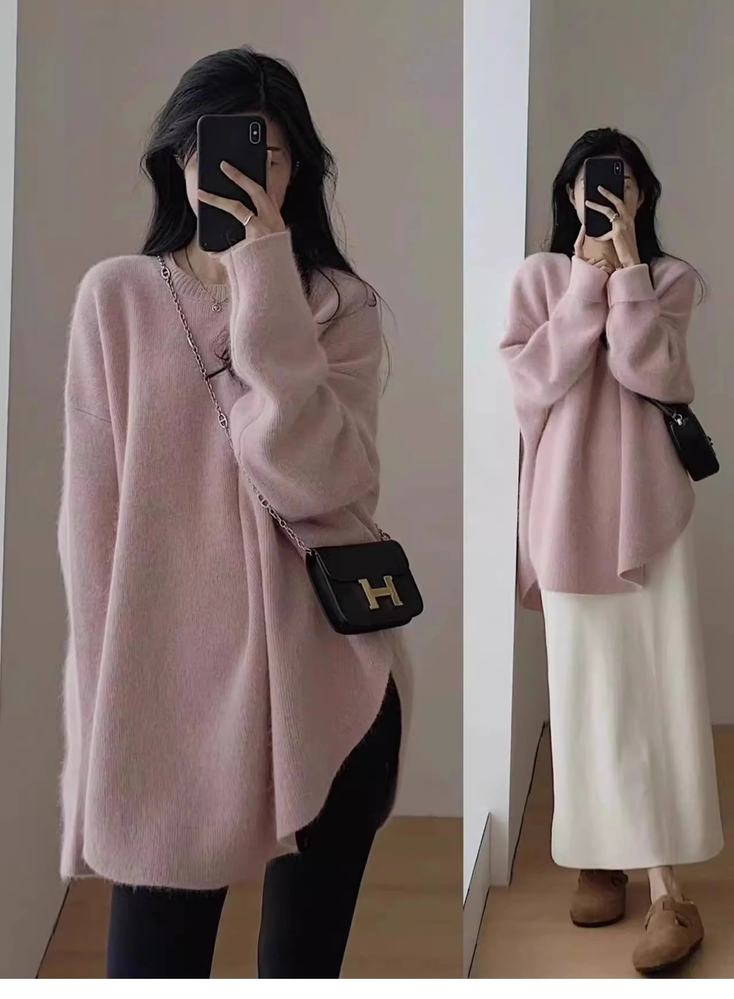 3 recensioni per Maglione da donna in puro cashmere 100% girocollo di fascia alta autunno e inverno maglione a vento pigro spesso sciolto taglie forti
