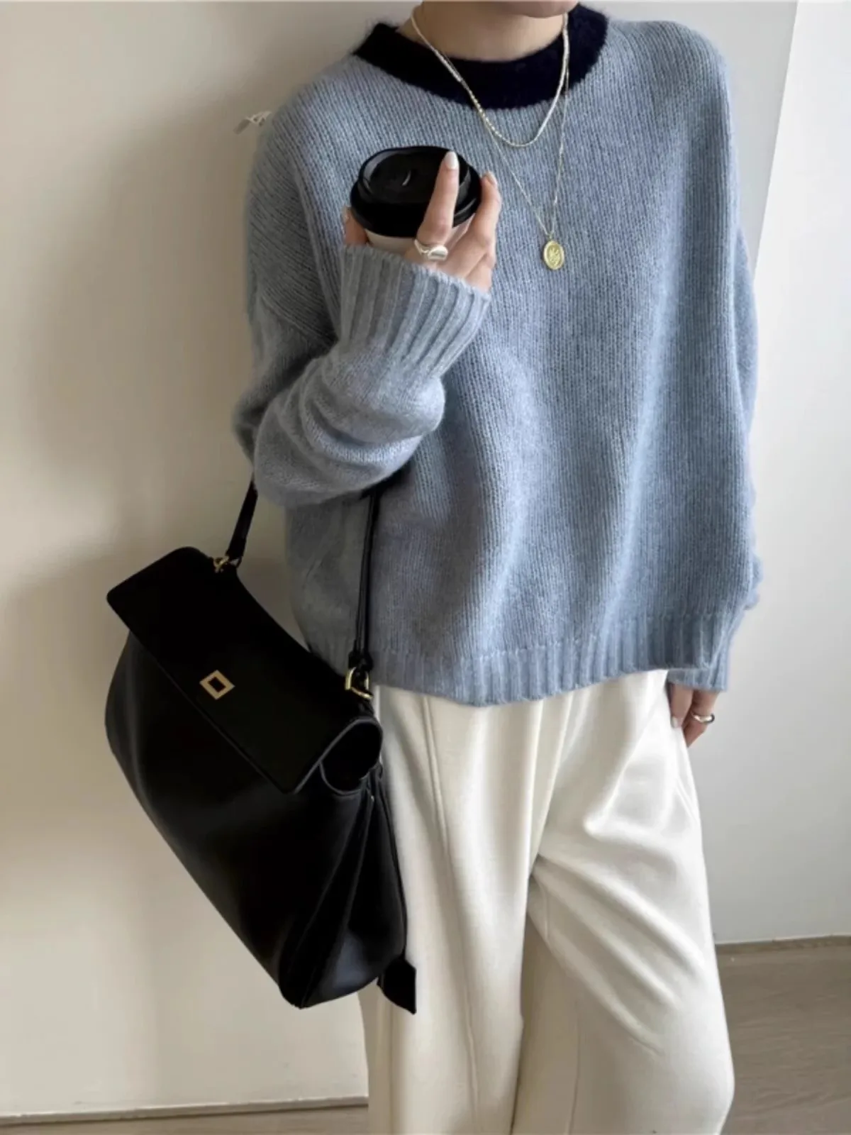 Recensisci per primo “Maglione da donna in puro cashmere con collo rotondo in colore abbinato, maglione corto con base in lana lavorata a maglia ispessita e ampia autunno e inverno” Annulla risposta