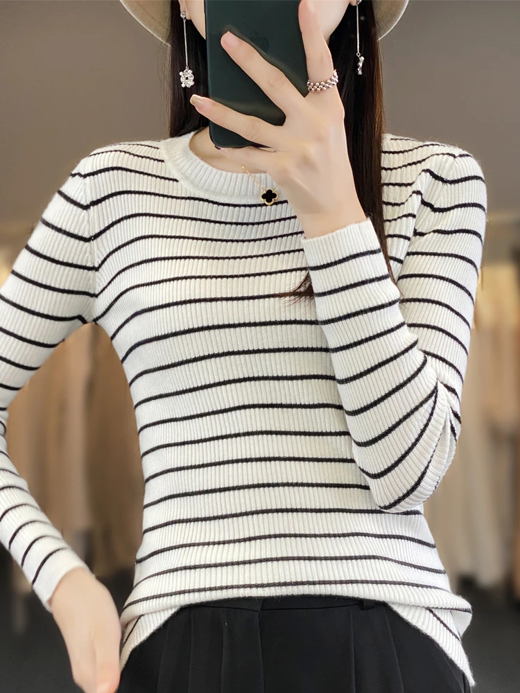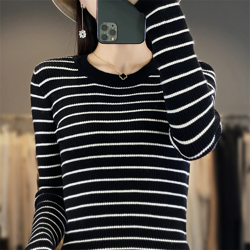 Recensisci per primo “Maglione da donna O-Collo a maniche lunghe a righe Pullover caldi Autunno Inverno Maglione lavorato a maglia Camicie coreane alla moda primaverile” Annulla risposta