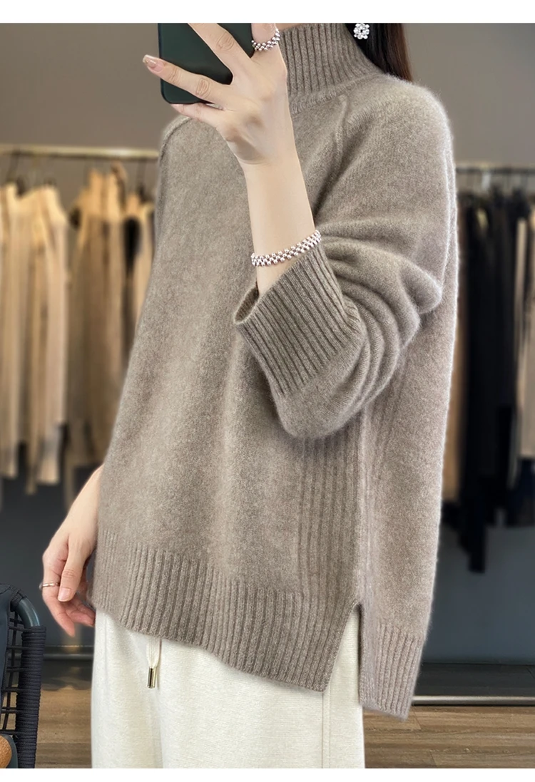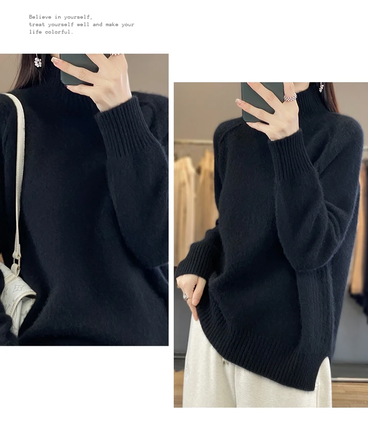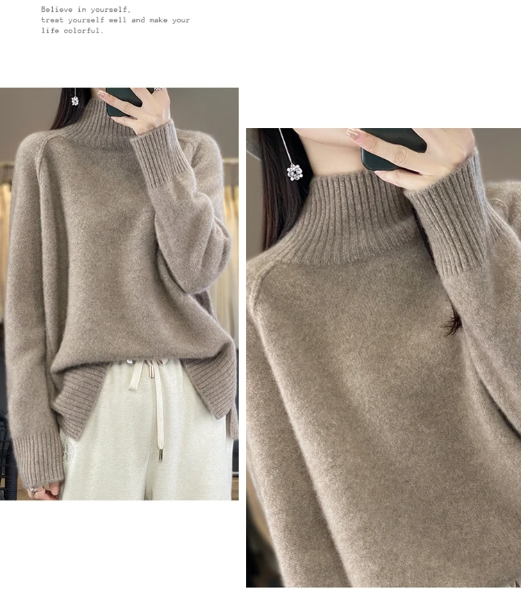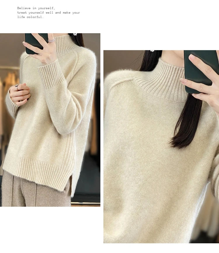 7 recensioni per Maglione di cashmere a collo alto da donna Maglione raglan pigro ispessito in morbida lana al 100% con spacco per l’autunno inverno Comodo ceroso W
