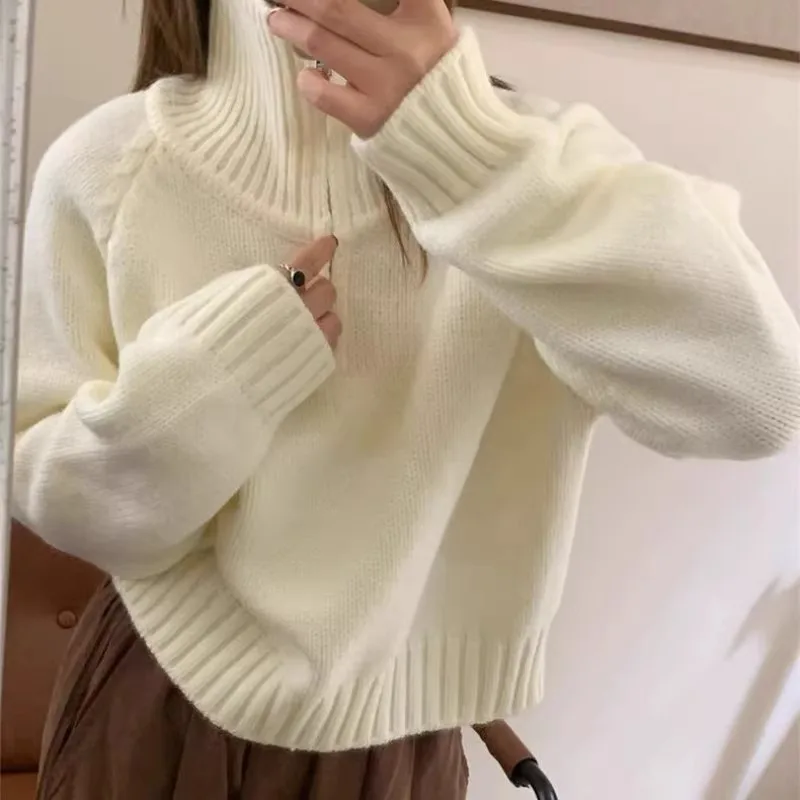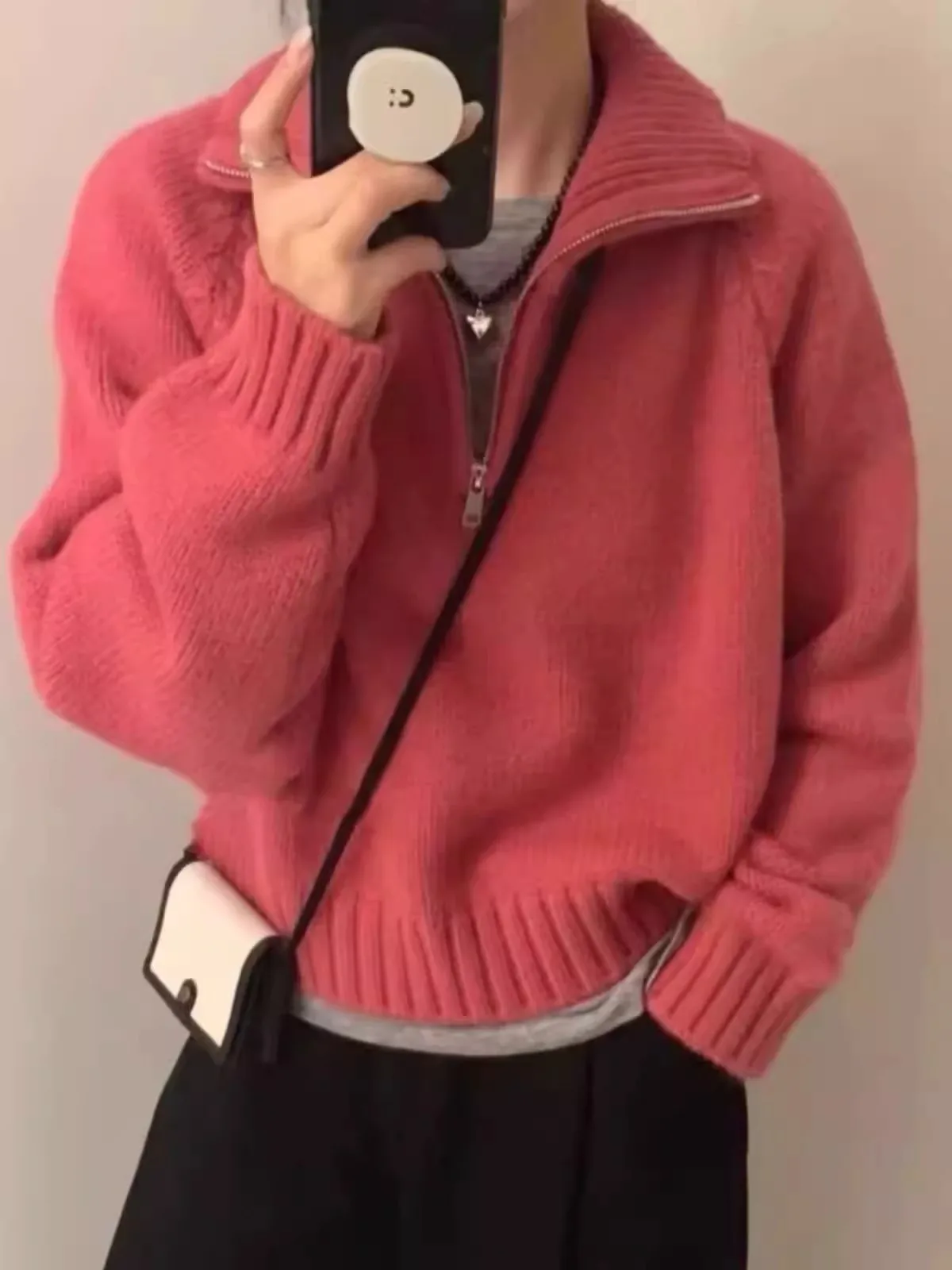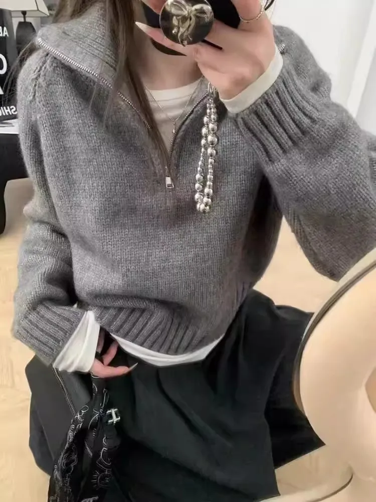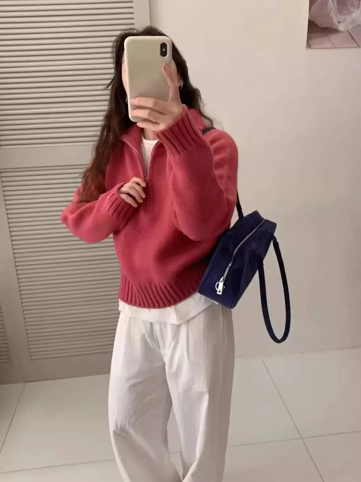 Maglione di fascia alta con mezza cerniera e collo alto in cashmere 100% per maglione lavorato a maglia autunnale e invernale