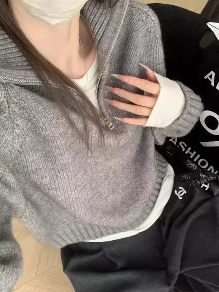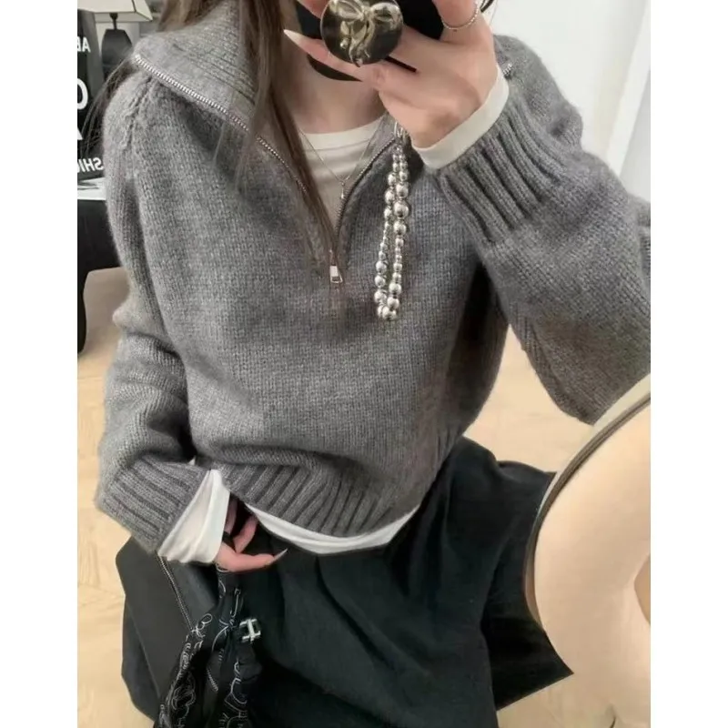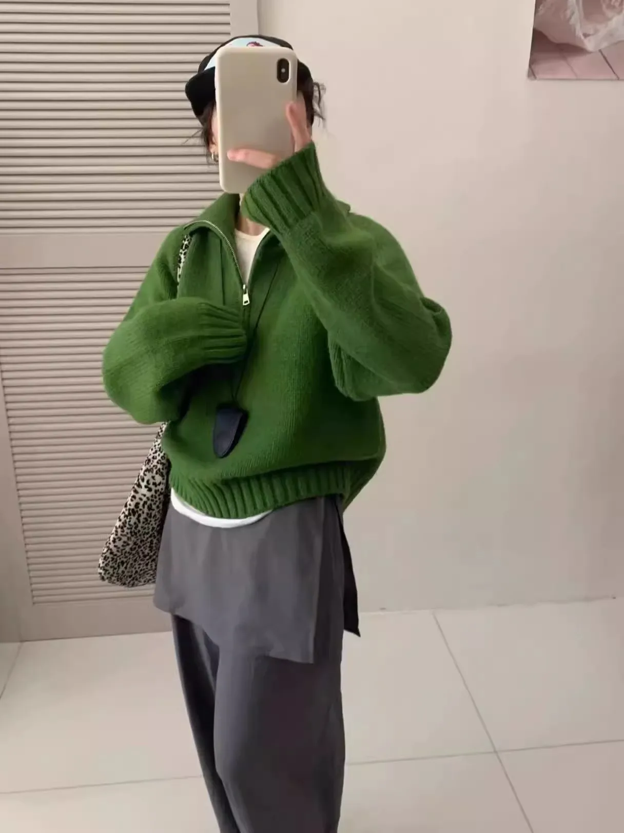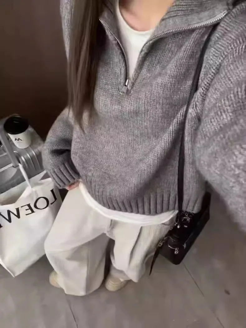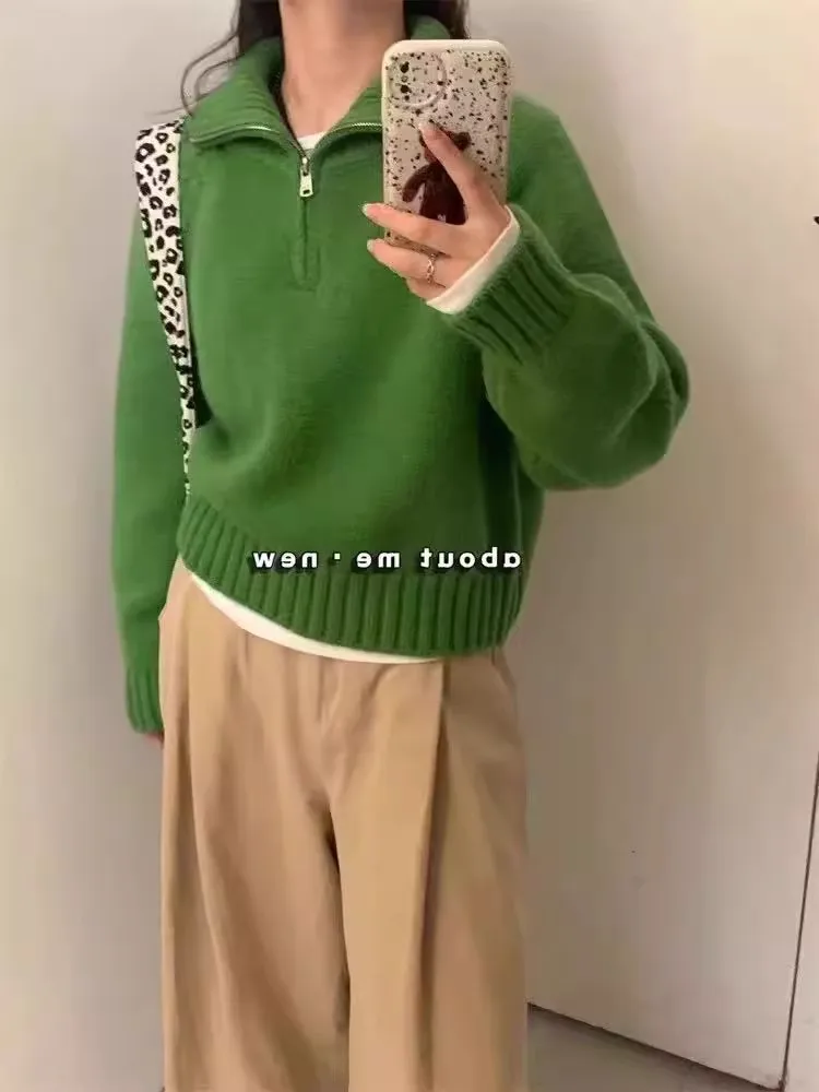 Maglione di fascia alta con mezza cerniera e collo alto in cashmere 100% per maglione lavorato a maglia autunnale e invernale