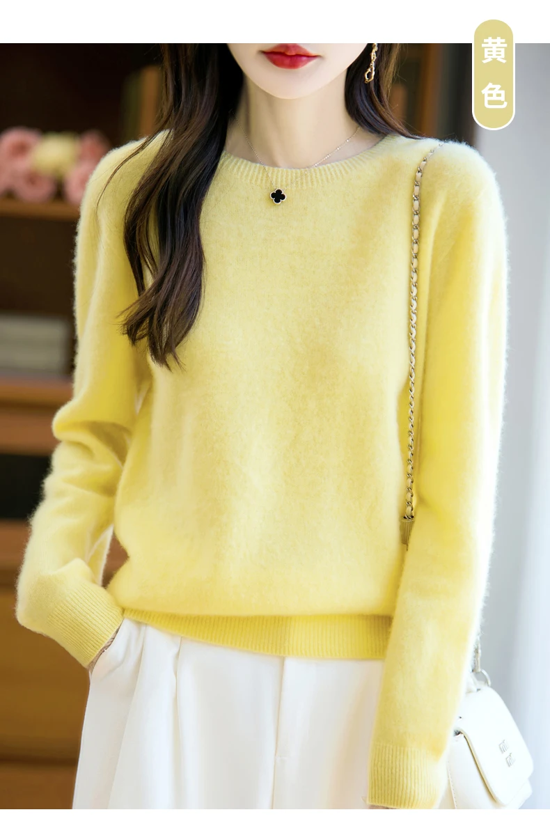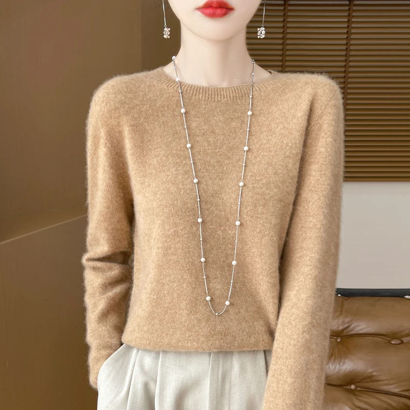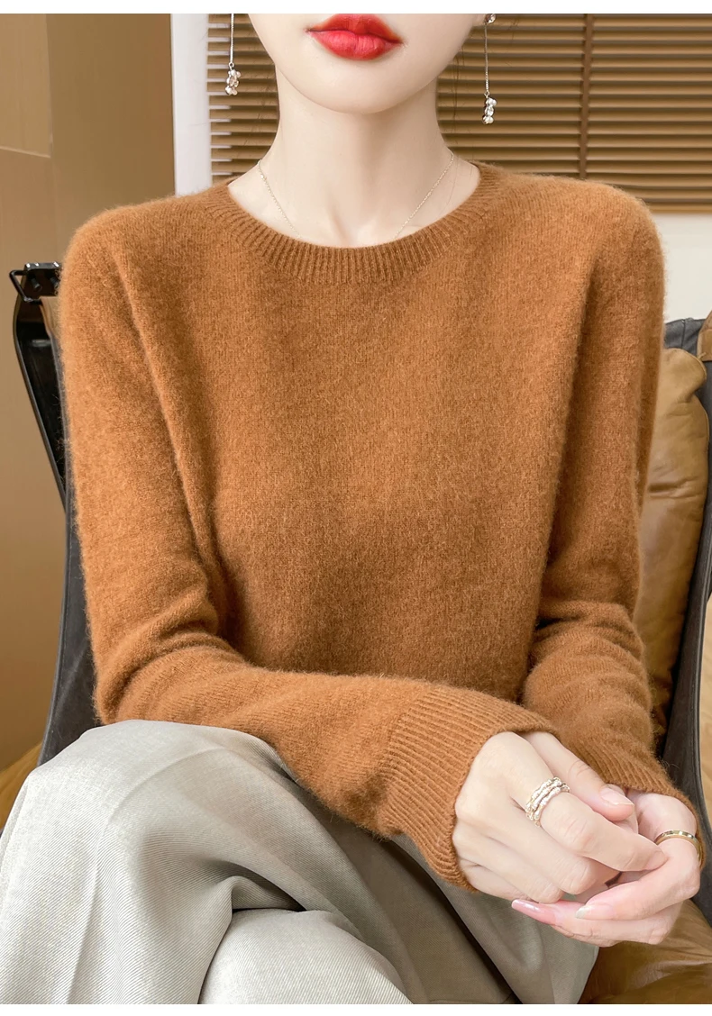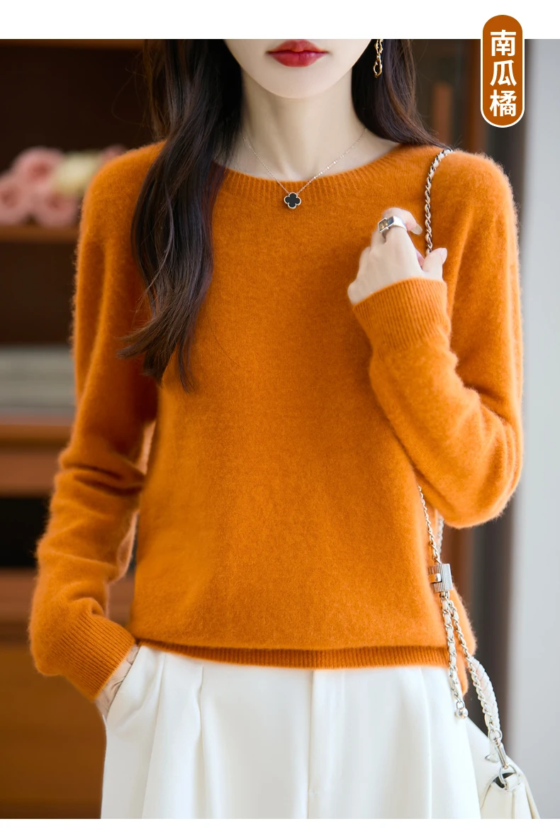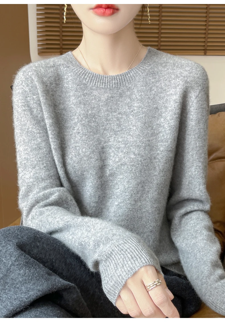 Maglione di lana merino 100% nuovo autunno inverno abbigliamento donna pullover con o-collo moda top in cashmere che tocca maglieria a maniche lunghe