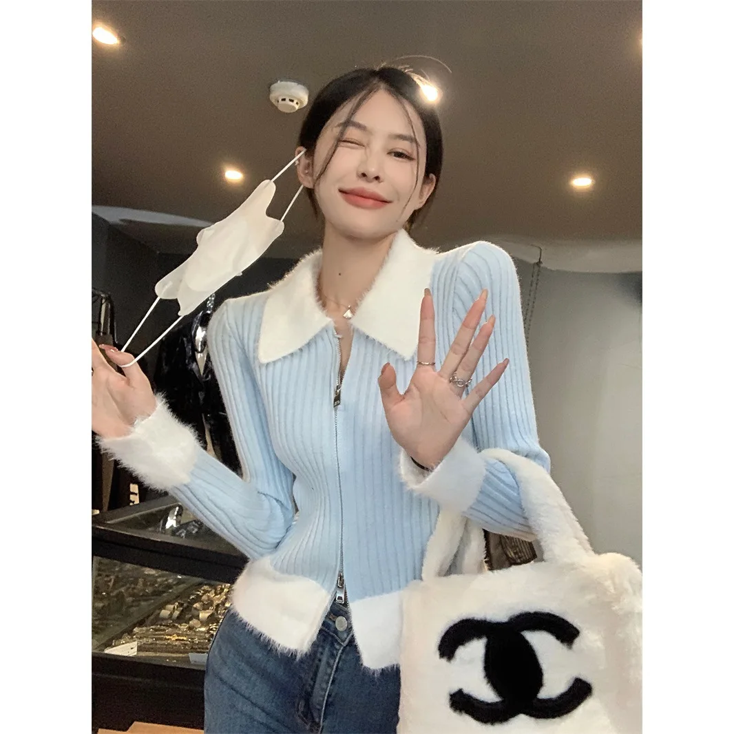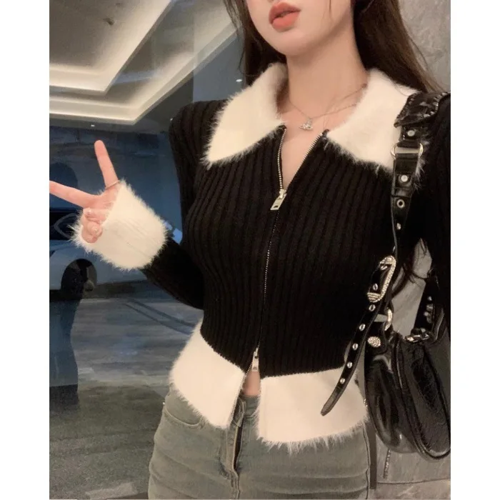 Recensisci per primo “Maglione lavorato a maglia con cerniera corta rosa Camicia base per abbigliamento interno da donna Top invernale lavorato a maglia delicato Slim Fit Manica lunga Casual Elegante”