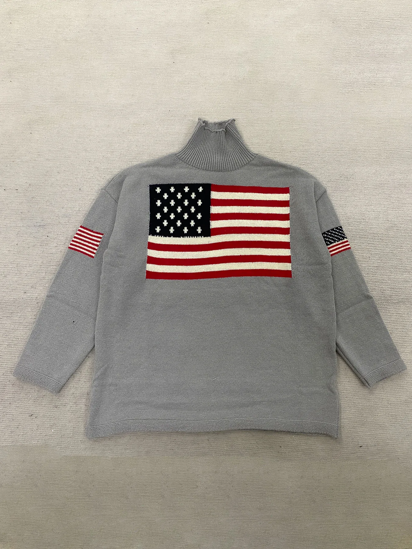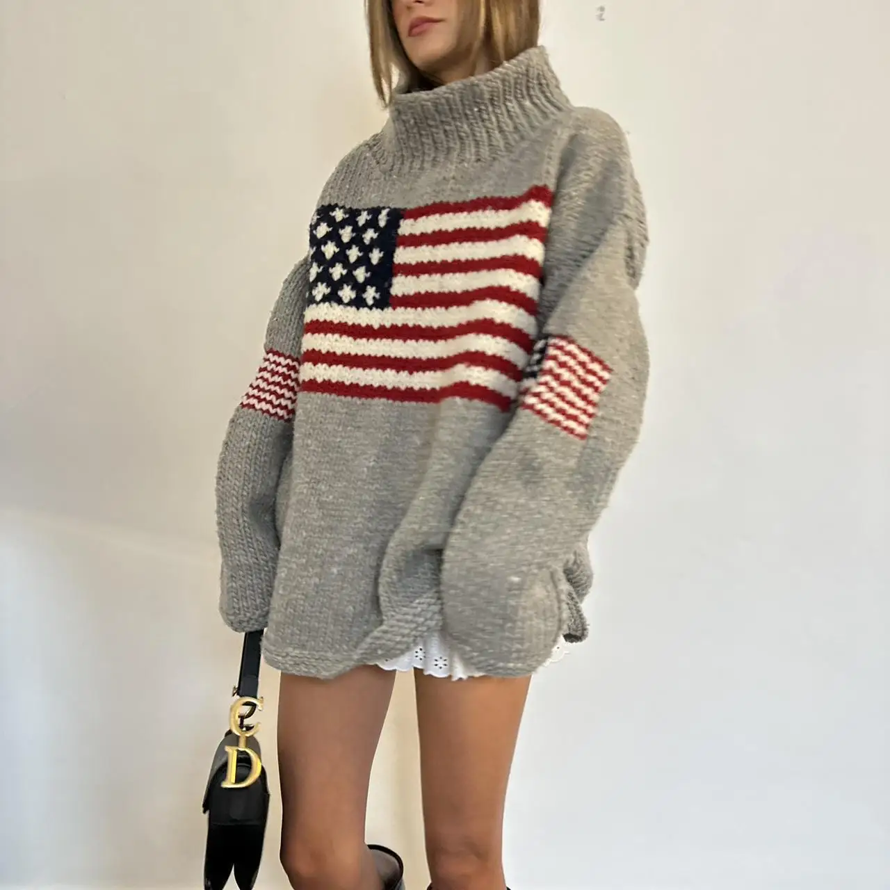 Maglione lavorato a maglia con stampa bandiera senso design europeo e americano autunno e inverno maglione pullover girocollo allentato casual