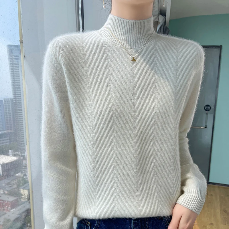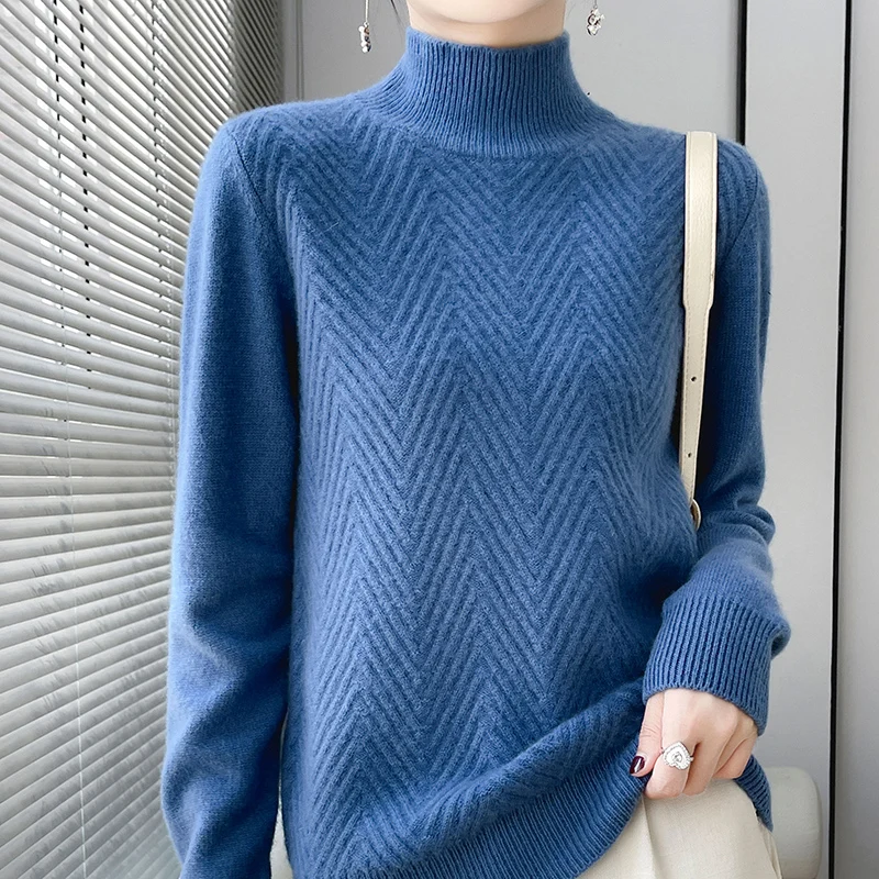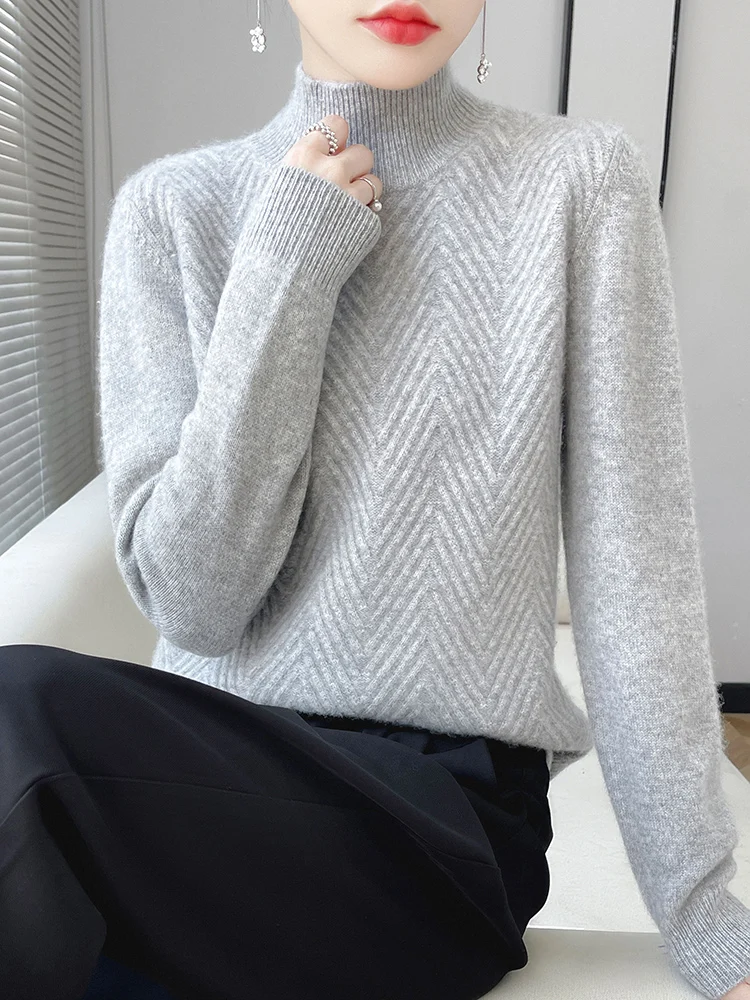 Maglione lavorato a maglia da donna 100% lana merino Maglieria Collo a lupetto Manica lunga Pullover basic Autunno Inverno Maglione di cashmere Top