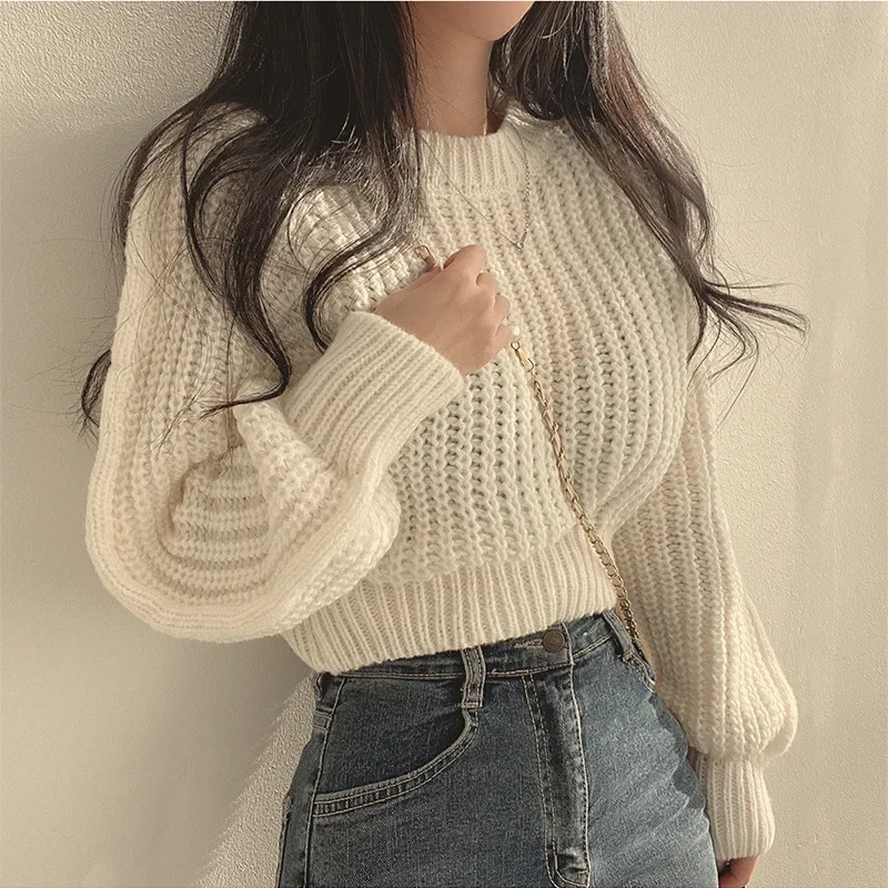 Maglione lavorato a maglia girocollo autunno inverno donna sciolto vita pigra cinched stile corto trendy materiale di alta qualità vestibilità comoda